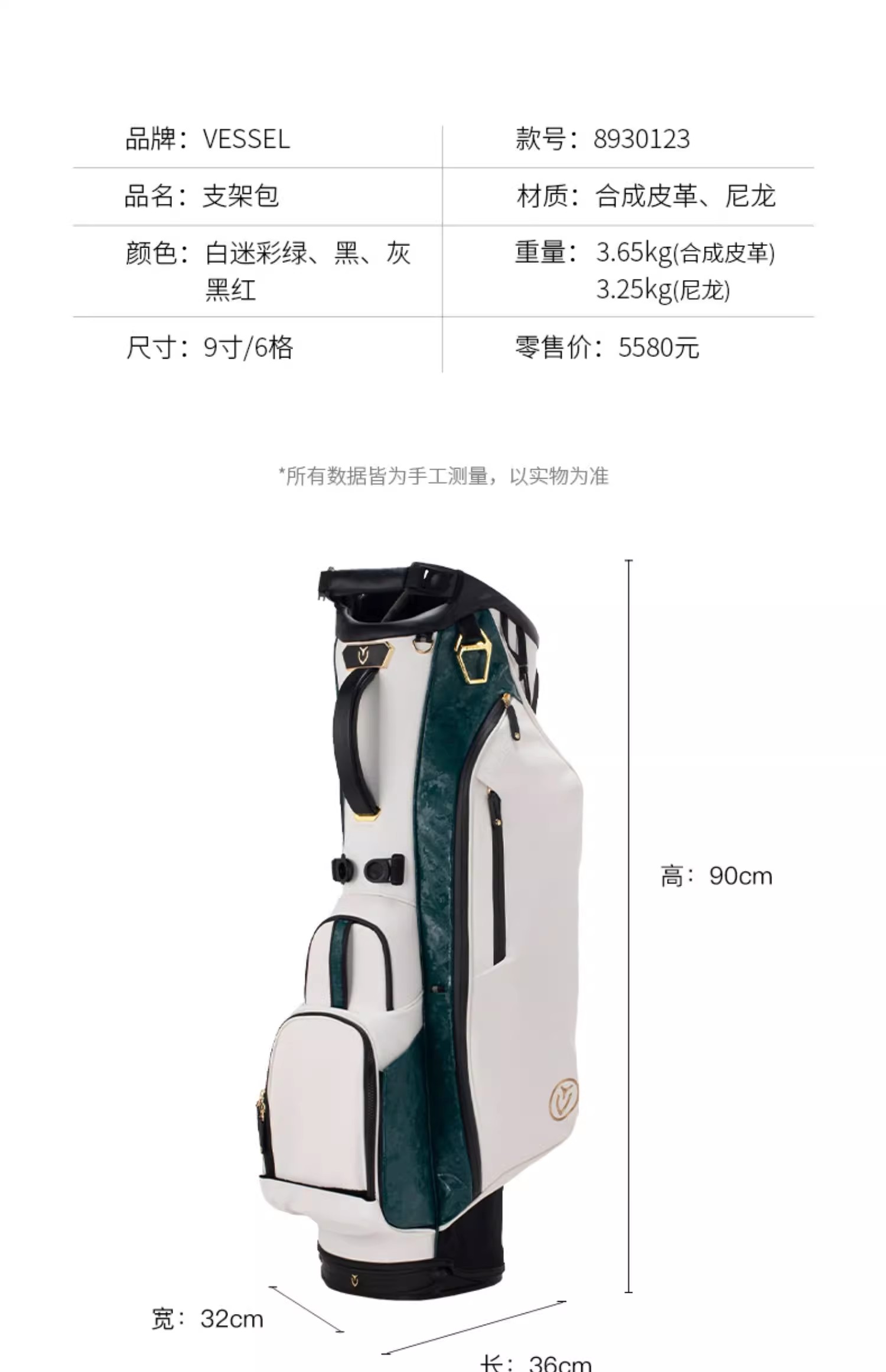 VESSEL 2023新款高尔夫球包 golfbag 轻便 Player IV Pro支架包袋6格9寸