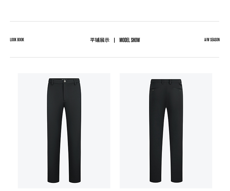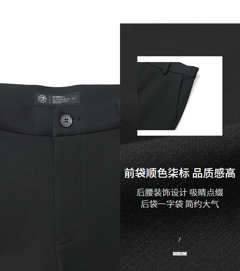 柒牌直筒休闲裤男2024秋冬厚款商务通勤黑色百搭中腰弹力男士长裤 127H70240