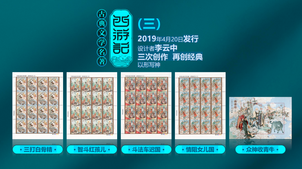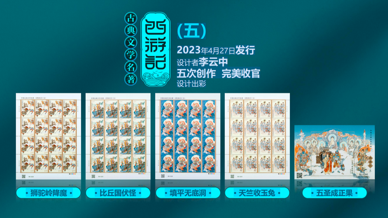 如今,这部脍炙人口的神话巨著,历时八年、五组发行、全部由“当代绘画西游第一人”李云中亲笔设计,终于以邮票的形式完美收官!