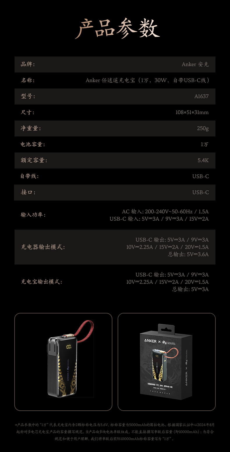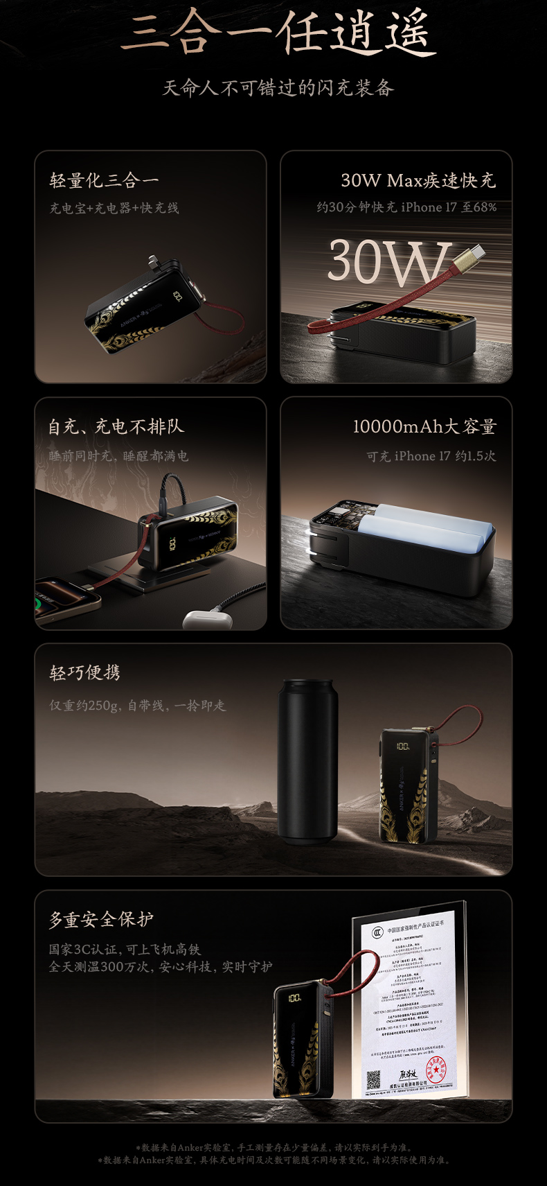 【新品】Anker安克 黑神话悟空联名系列 任逍遥三合一充电宝 A1637