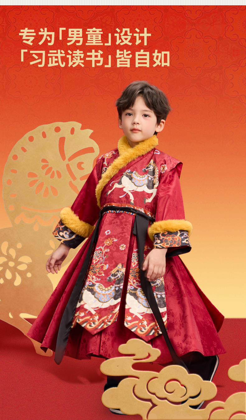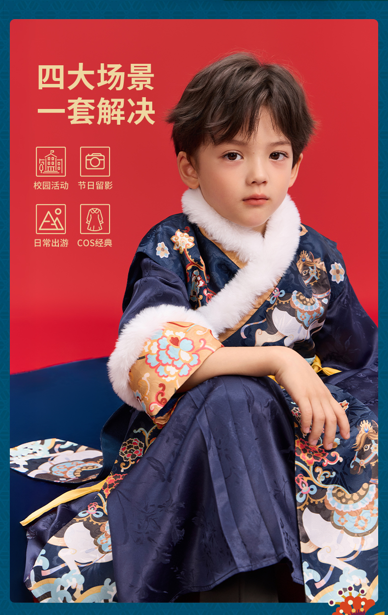 年衣童装男童汉服冬季新款儿童中式古风改良汉服锦绣前程男童汉服