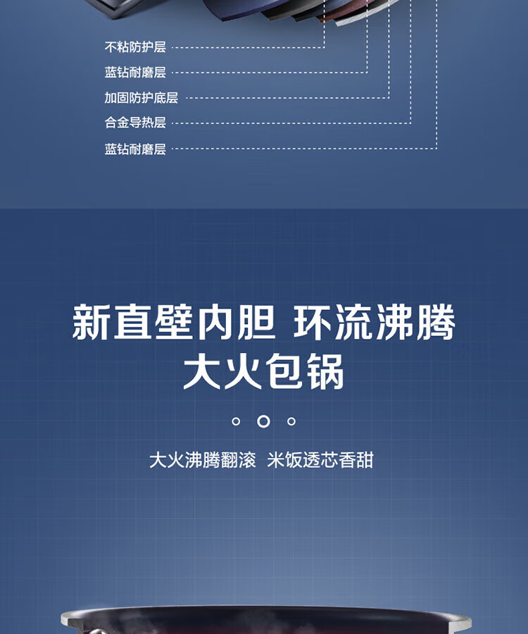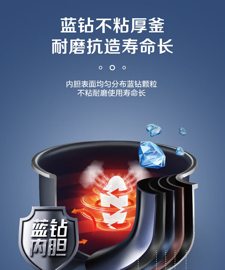 苏泊尔(SUPOR)电饭煲家用智能蓝钻不粘多功能智能预约煮粥煮饭蛋糕煲仔饭 4L蓝色2-7人SF40FC71