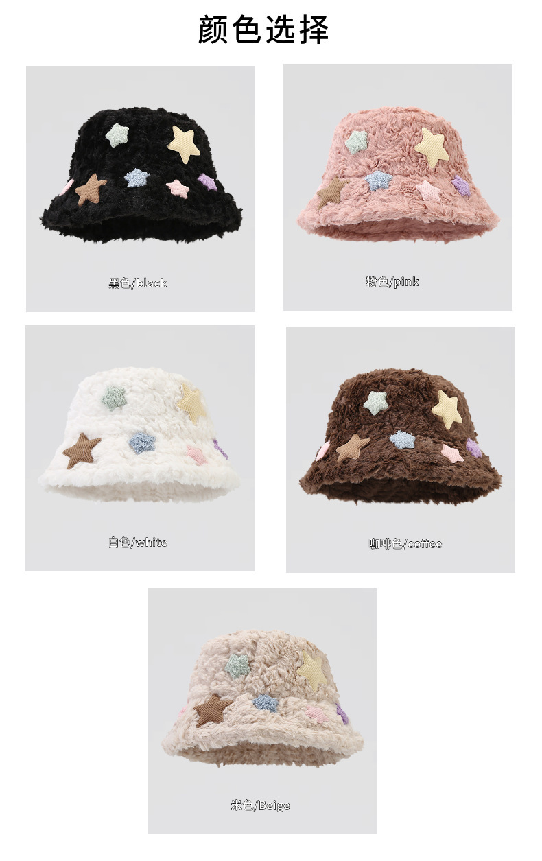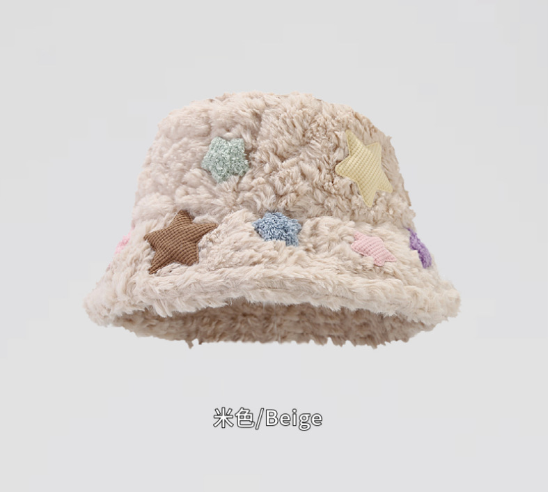 【内置调节绳!可调节帽围大小】毛绒绒,糯叽叽,冬季新款渔夫帽子女时尚韩版仿兔毛星星显脸小软糯加厚骑车保暖帽。rb