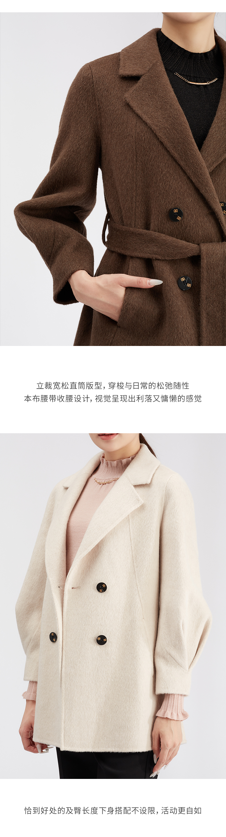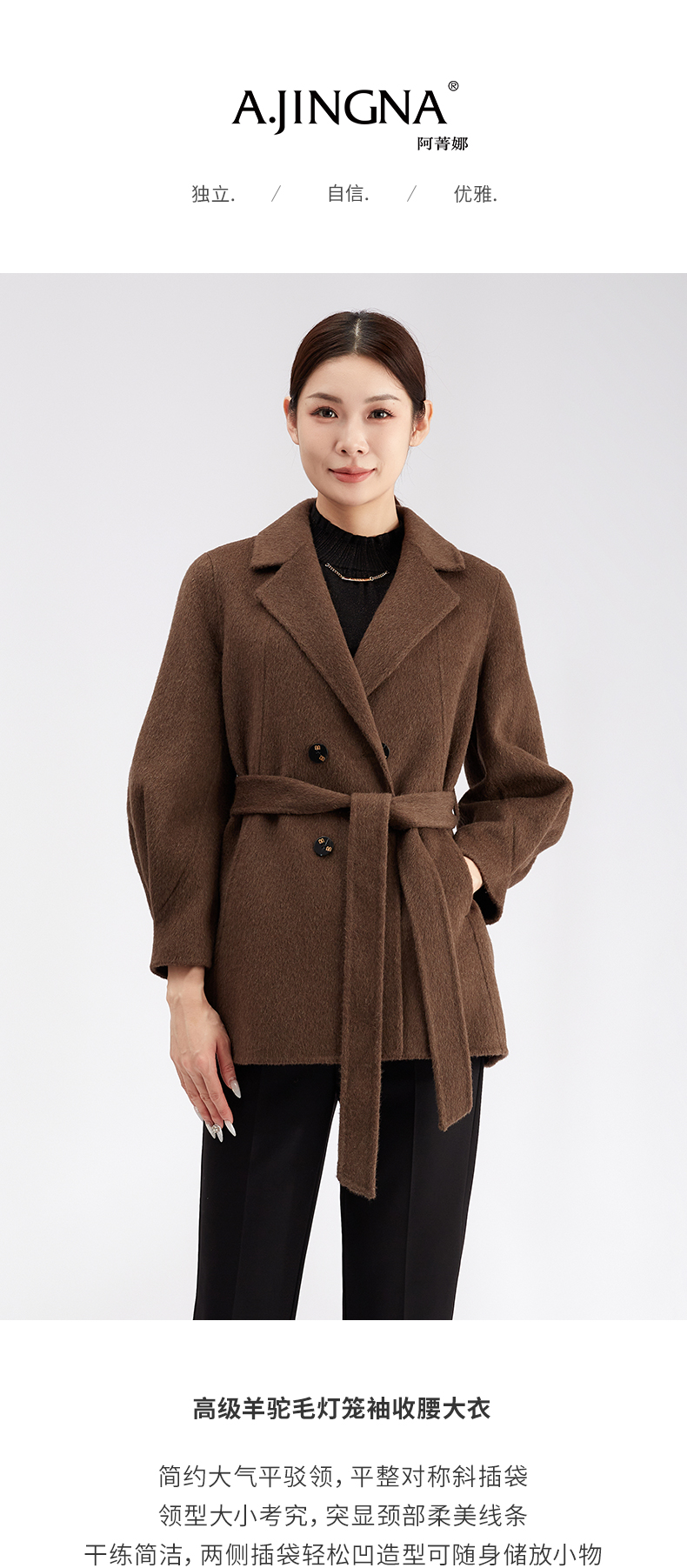 【商城同款】阿菁娜高级羊驼毛灯笼袖收腰大衣F30D211077