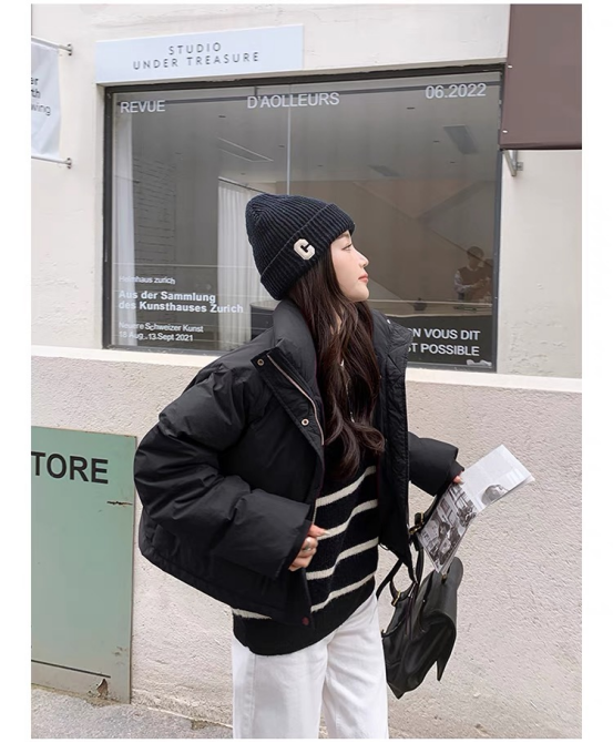 上身真的太有韩国小姐姐的穿搭范了 内里填充的是国标的90%白鸭绒 穿着更加保暖舒适 珩线装饰羽绒分布均匀既保暖又轻盈轻松撑起整个廓感自带筋骨感
