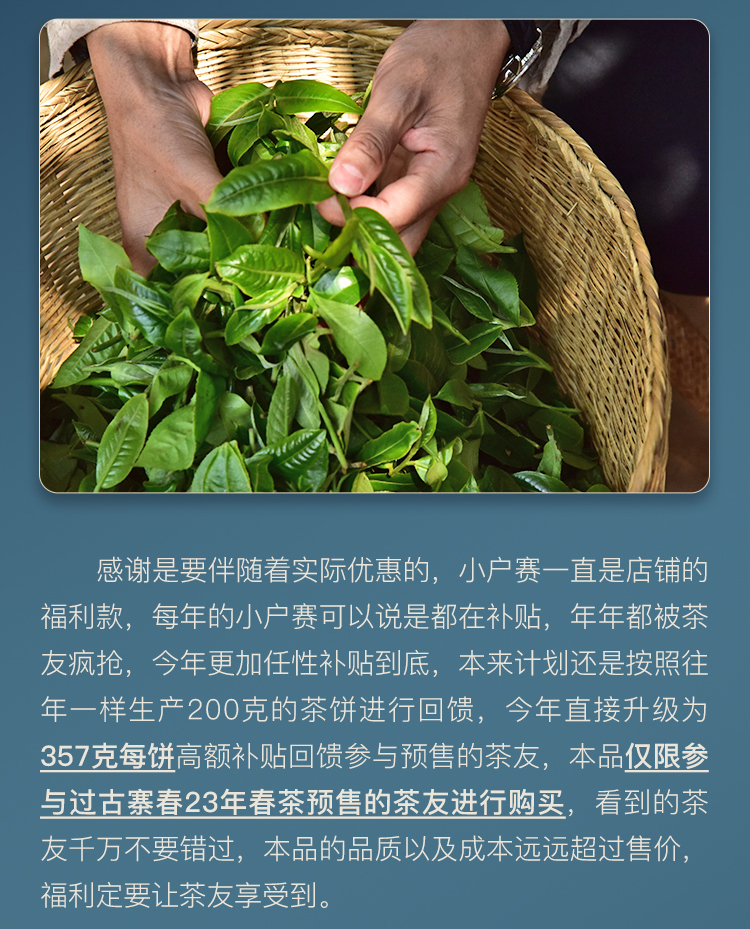 【春茶】【小户赛】2023年云南普洱茶生茶临沧茶区小户赛357克/饼