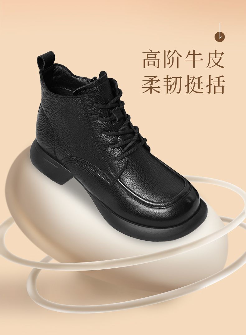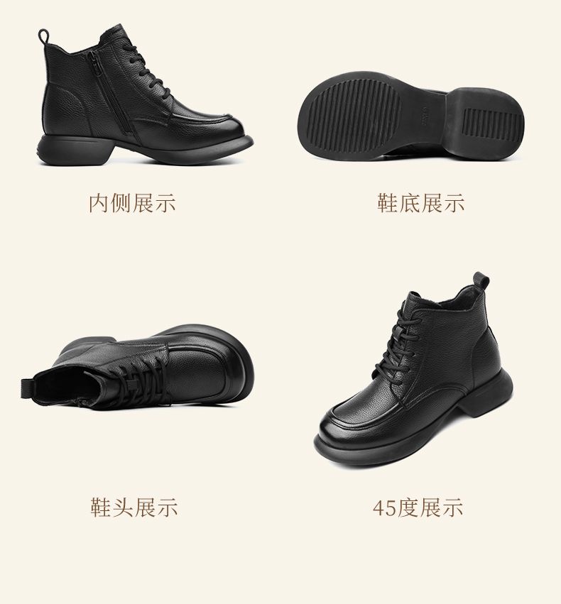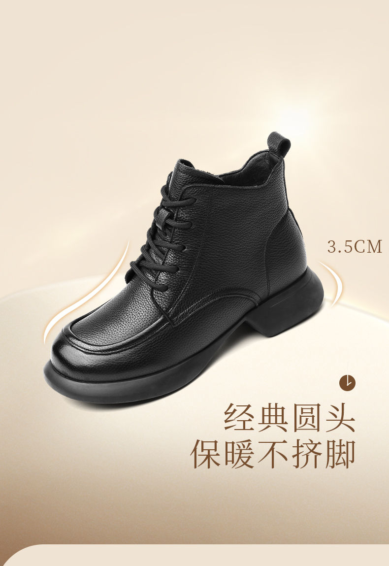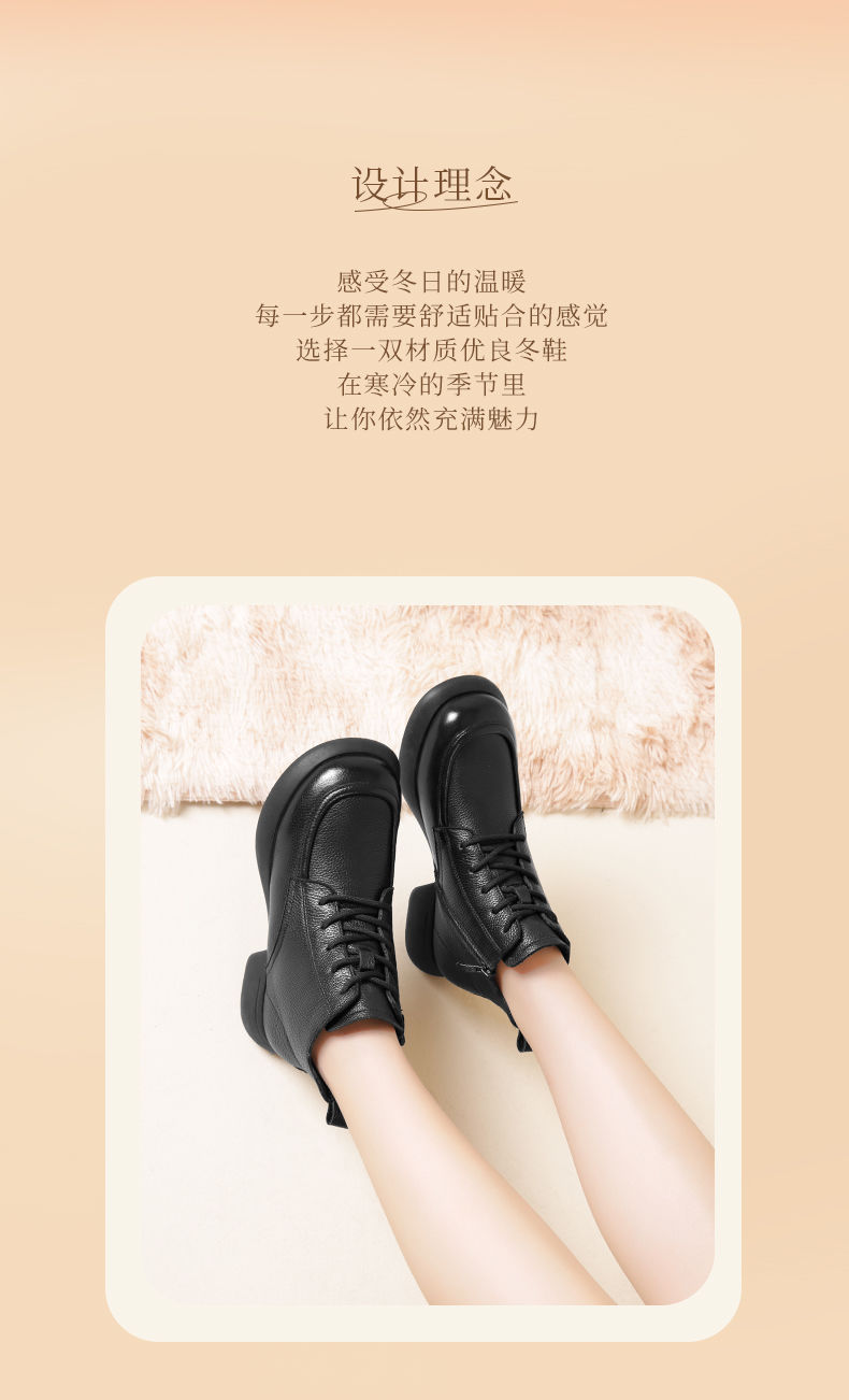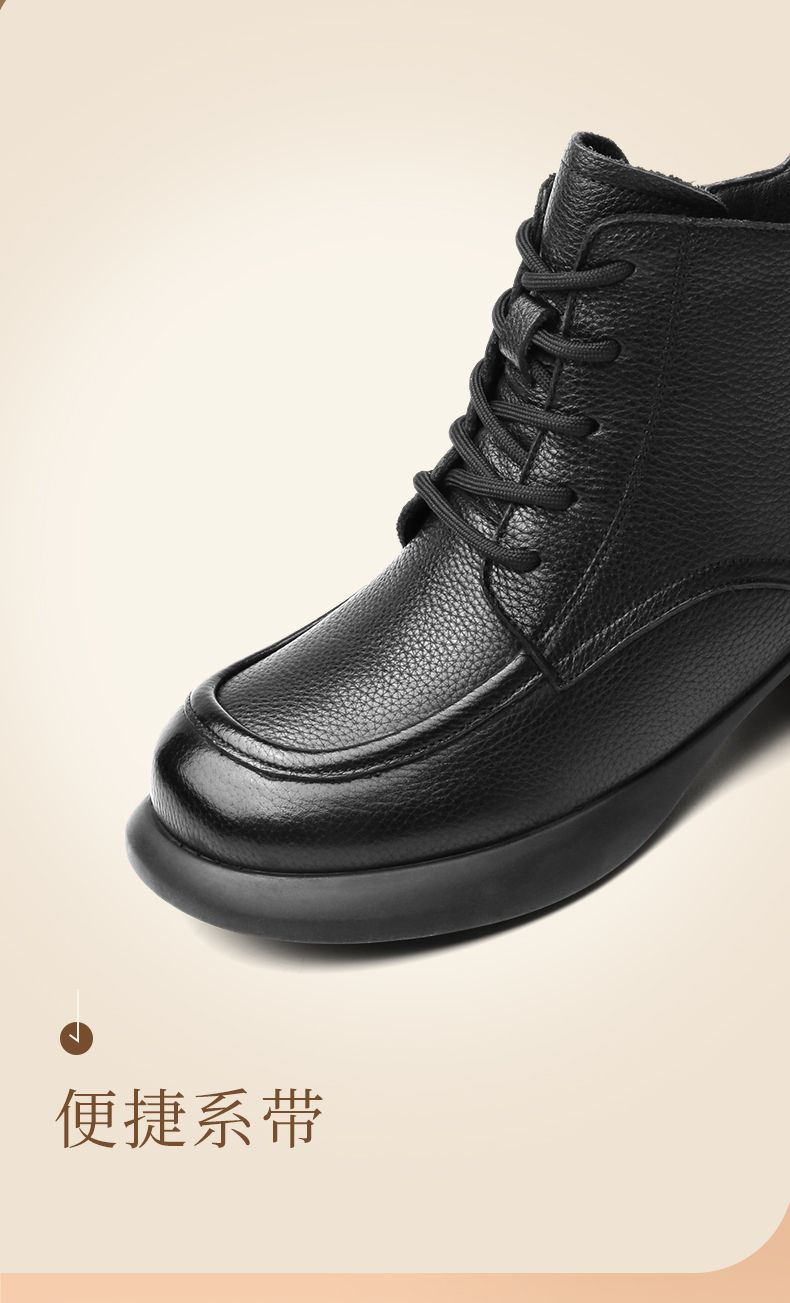 真皮加绒保暖妈妈短靴2023新款冬季马丁靴中年软底休闲防滑女棉鞋23M583-3H