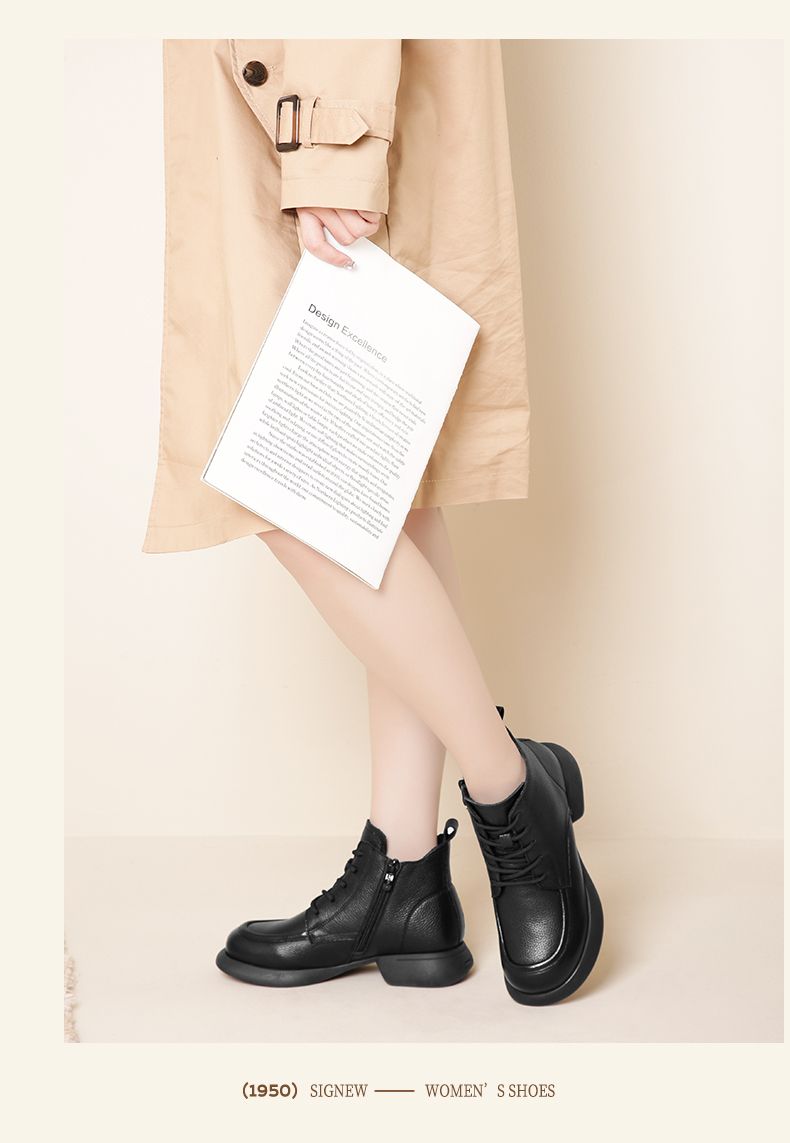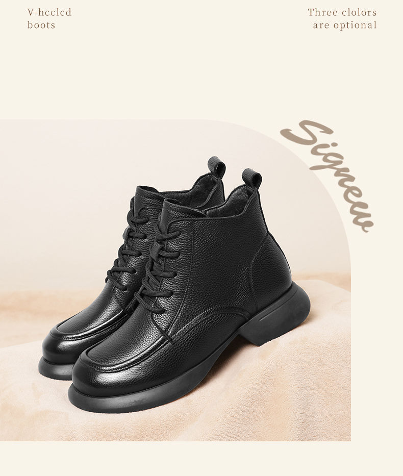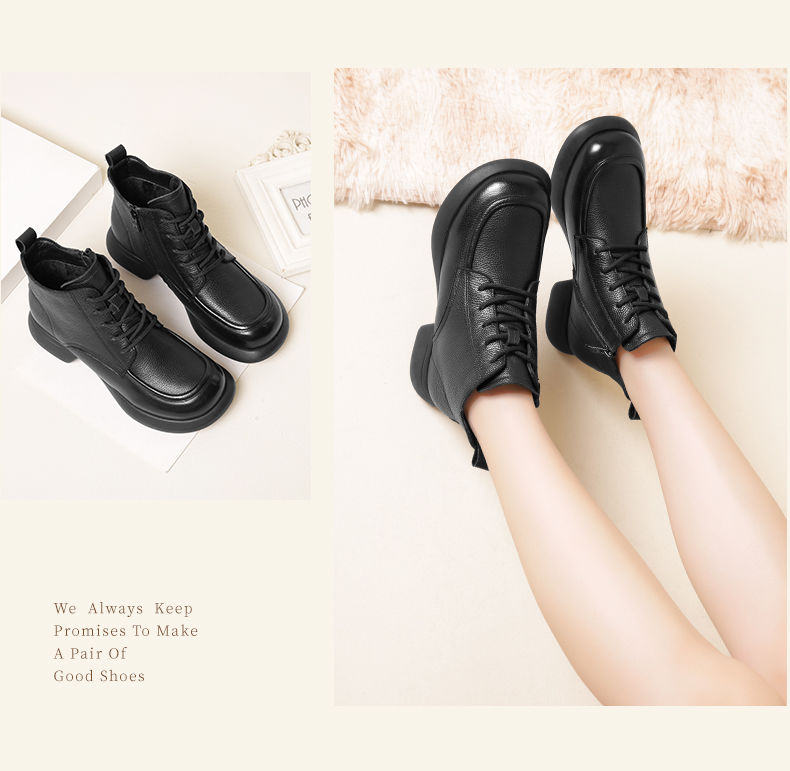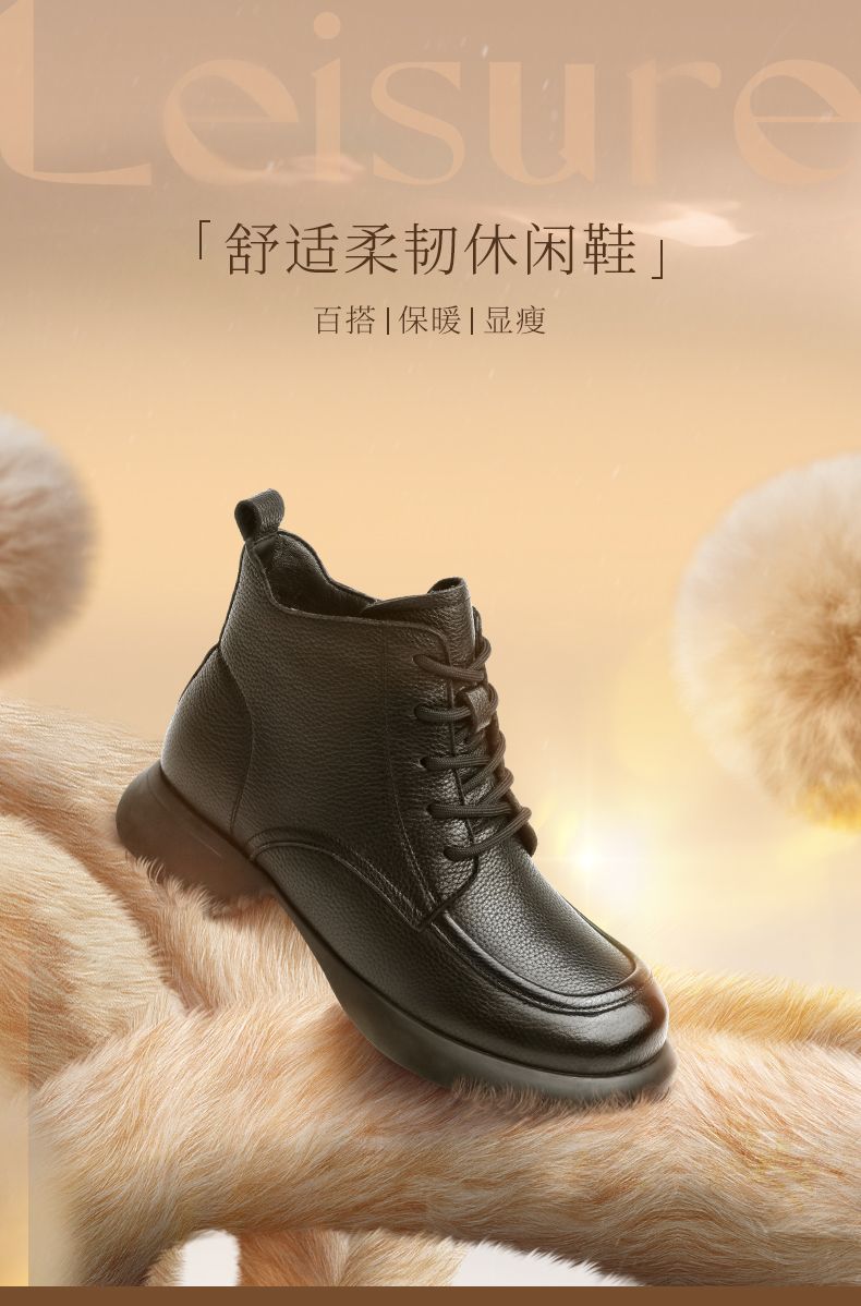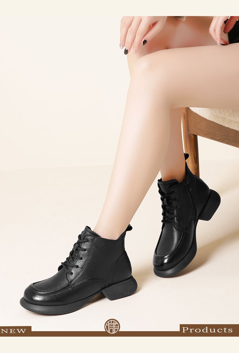 真皮加绒保暖妈妈短靴2023新款冬季马丁靴中年软底休闲防滑女棉鞋23M583-3H