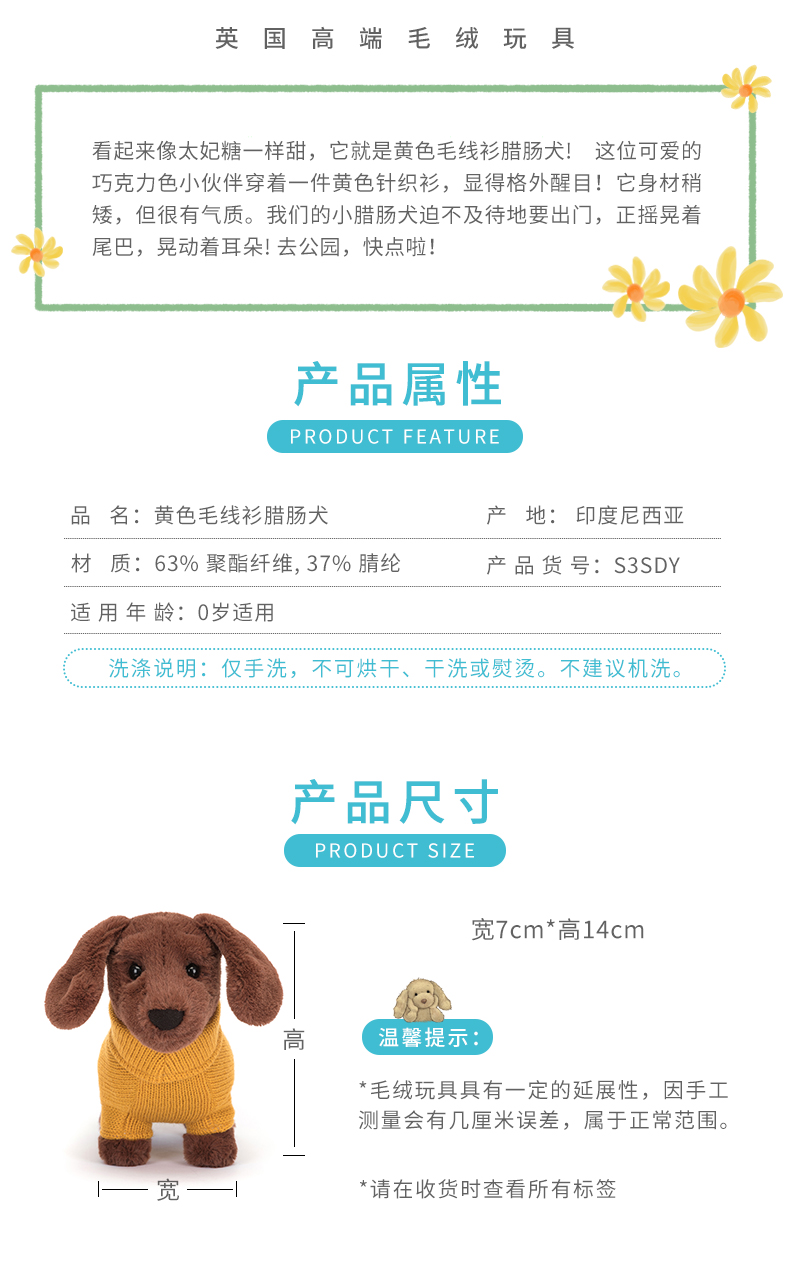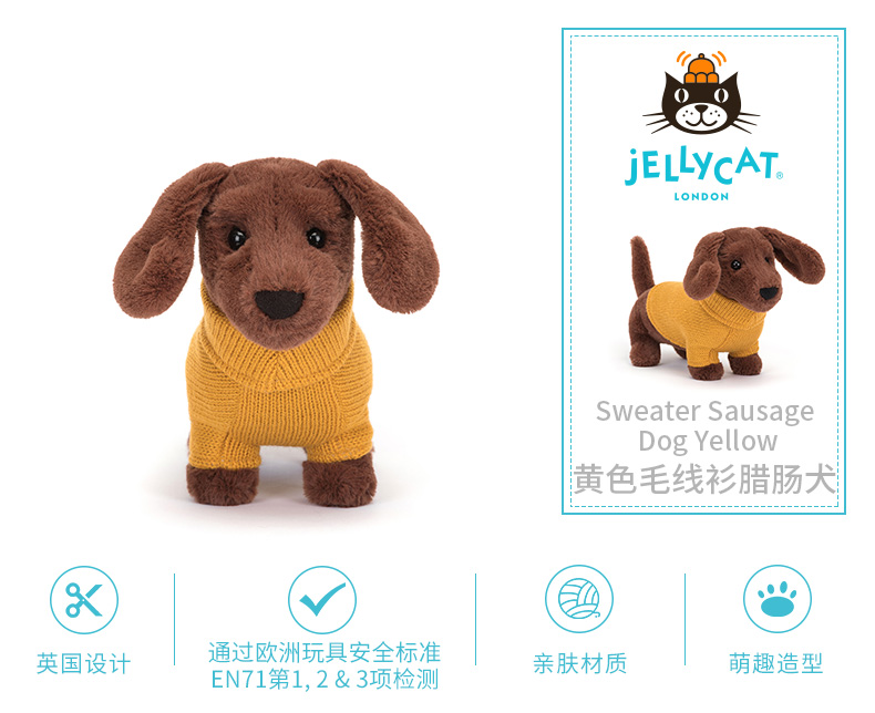 Jellycat 黄色毛线衫腊肠犬