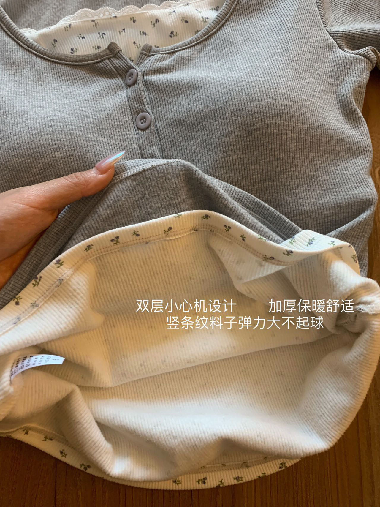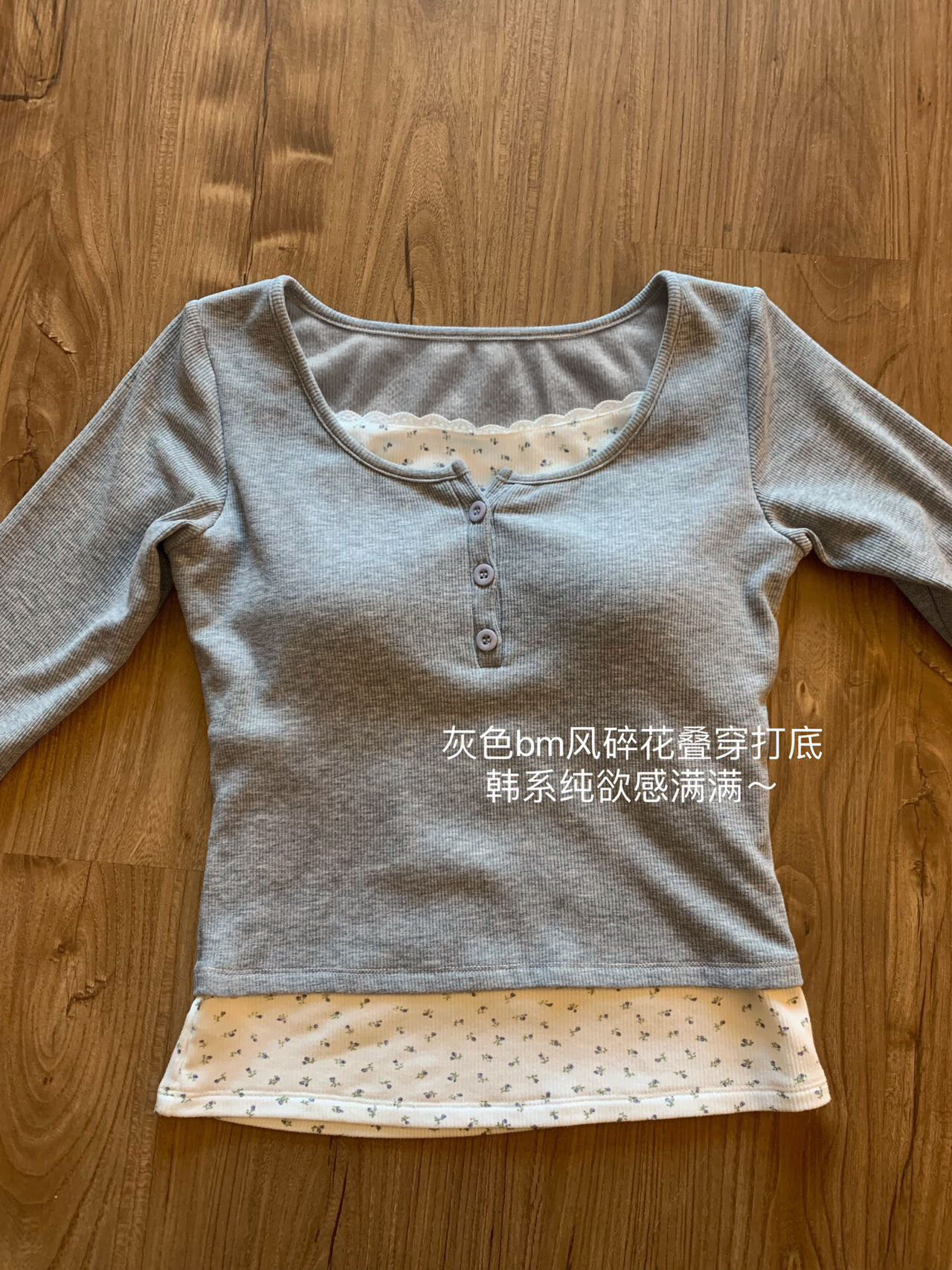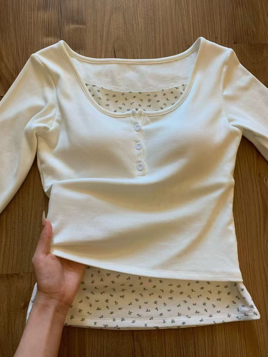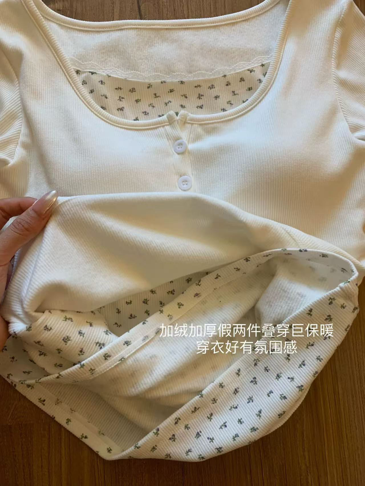 【YW】无忧购碎花假两件内搭加厚保暖正肩带胸垫短款打底衫上衣1203(截单后7天发货)