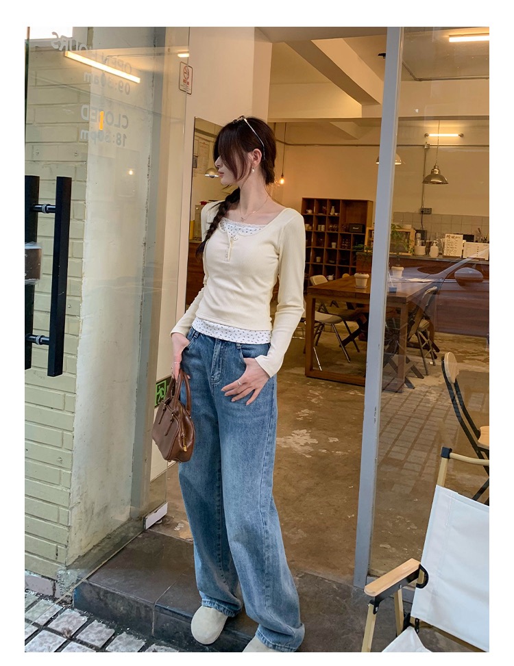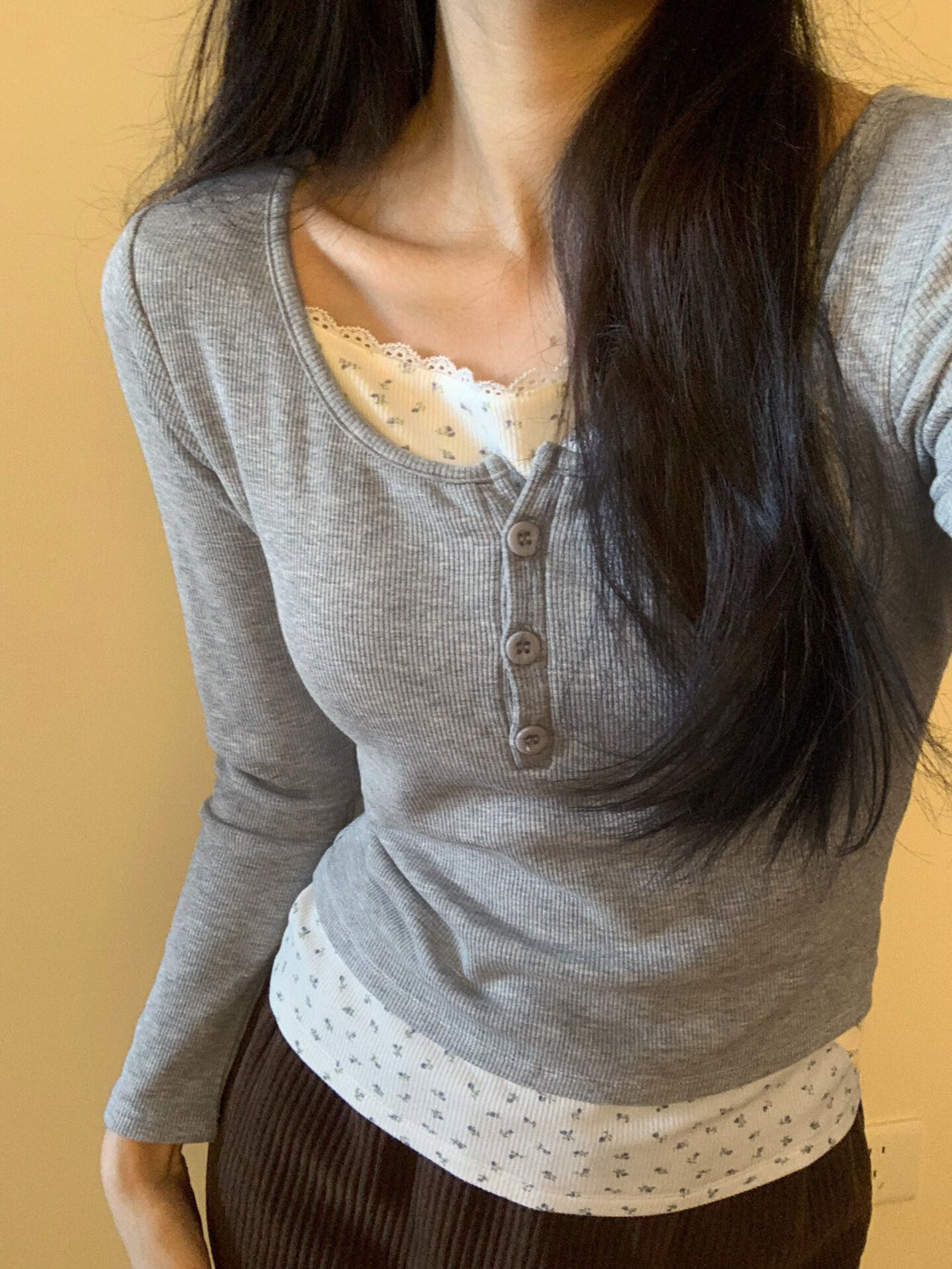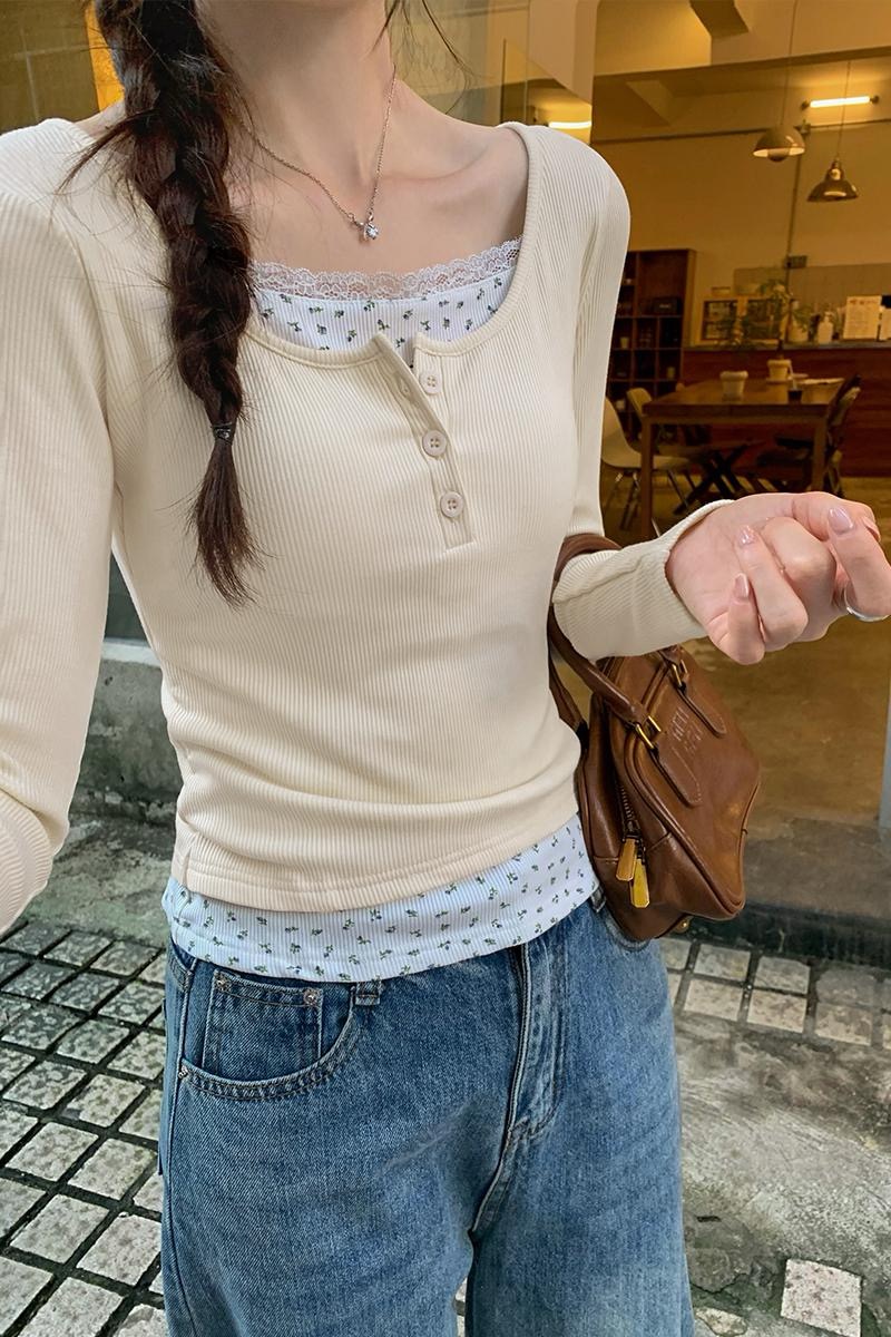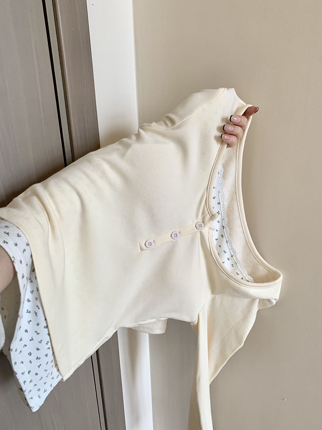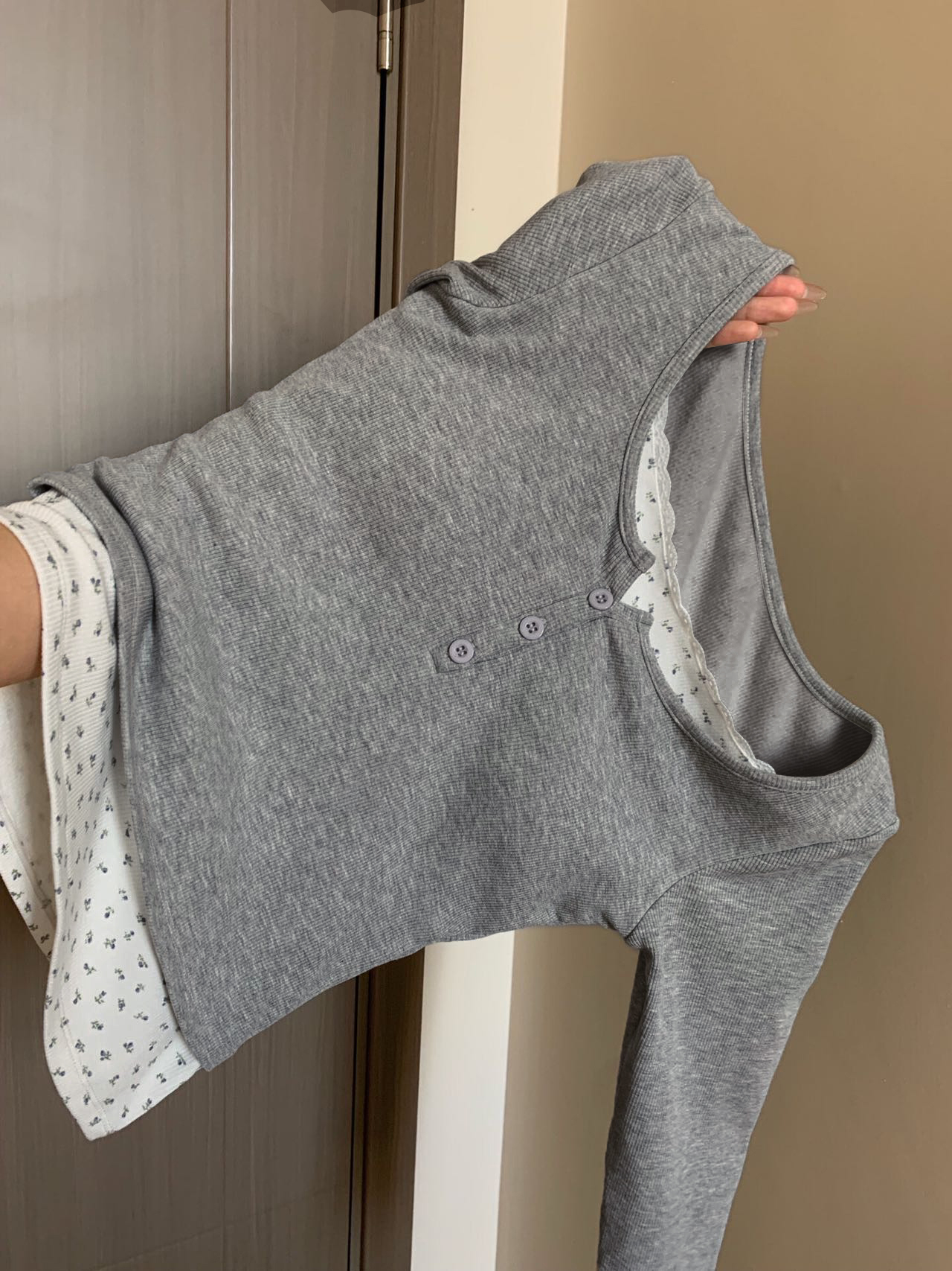 【YW】无忧购碎花假两件内搭加厚保暖正肩带胸垫短款打底衫上衣1203(截单后7天发货)