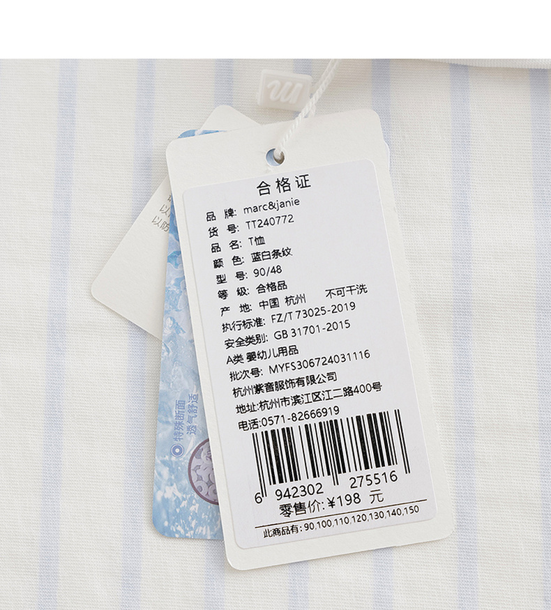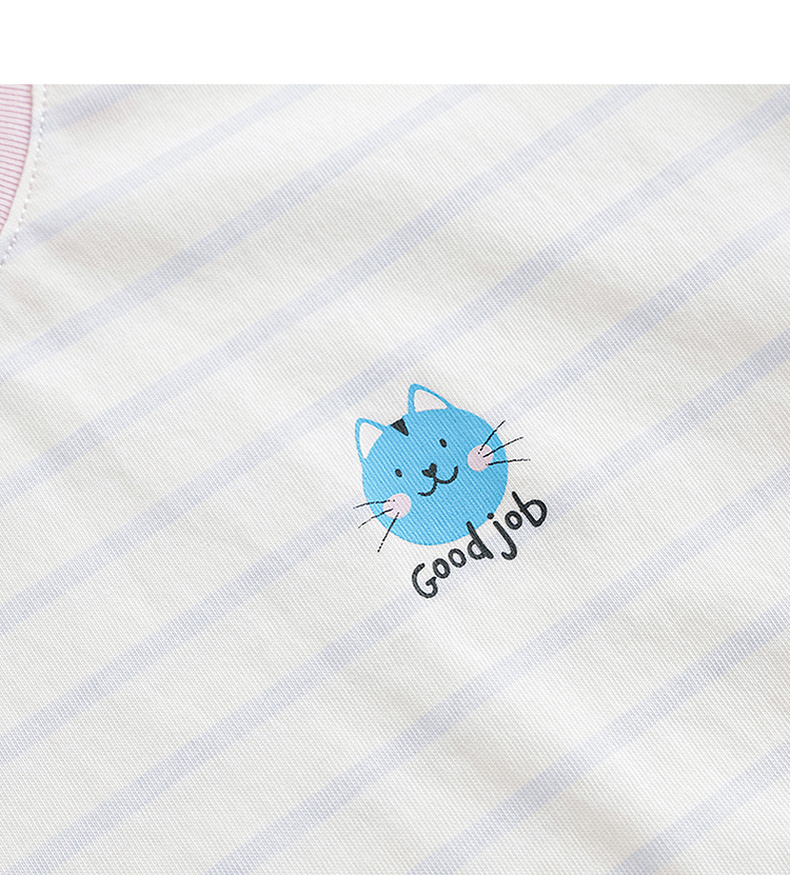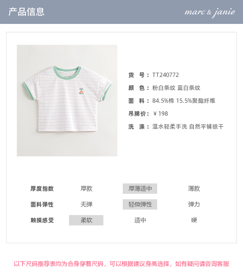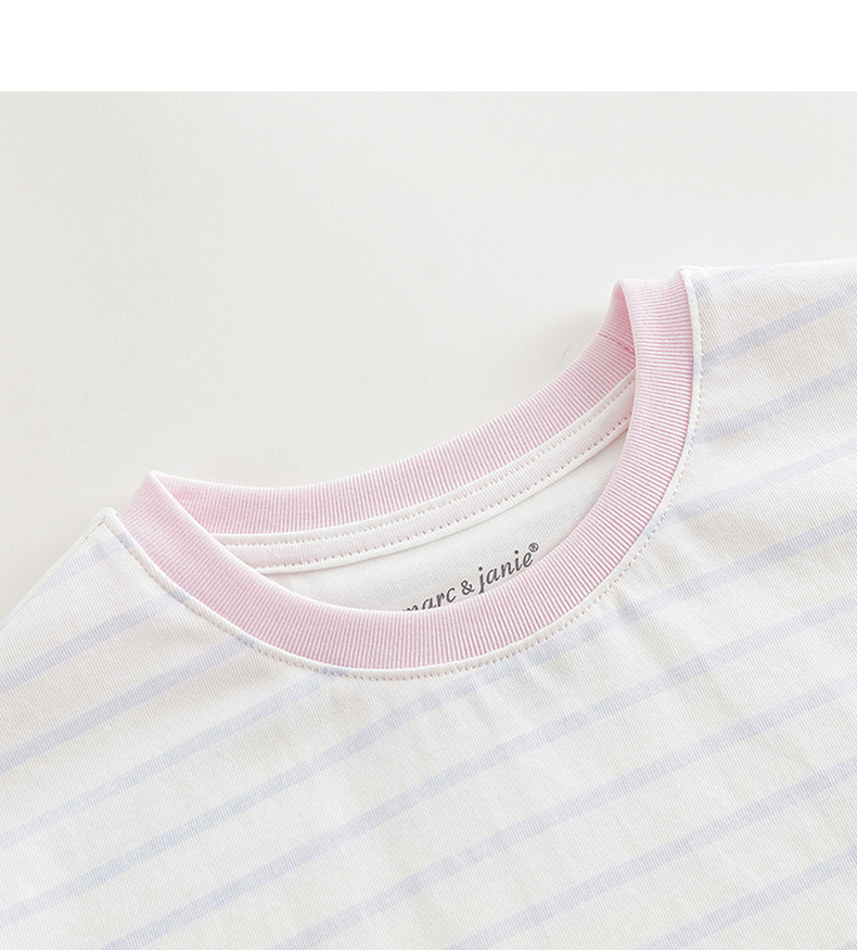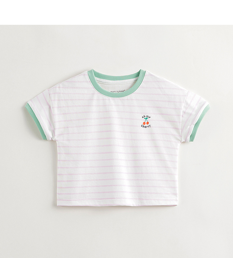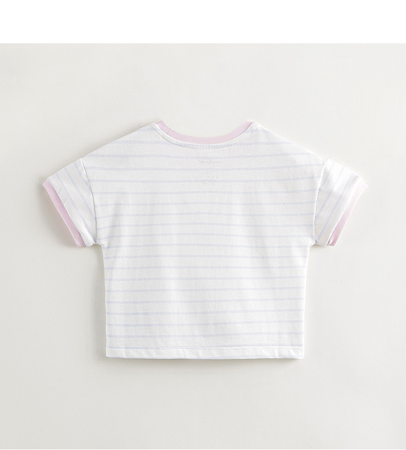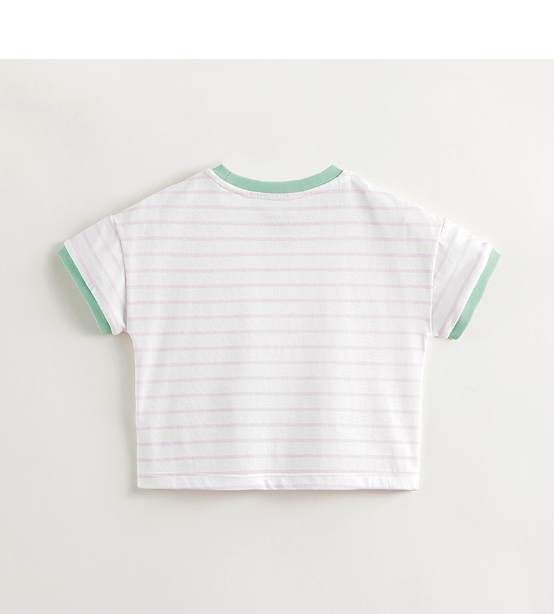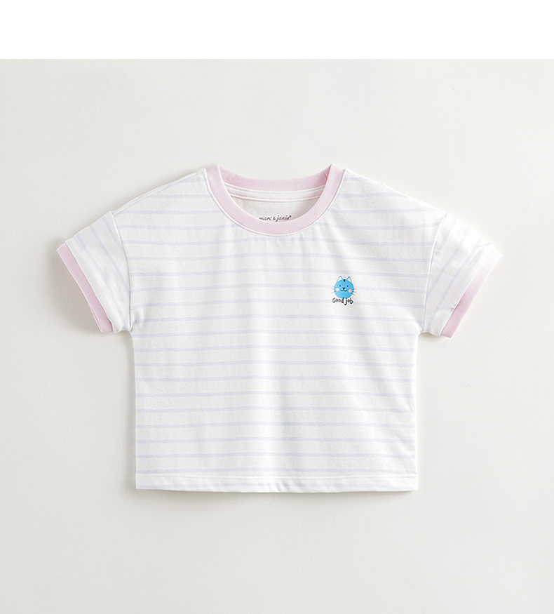 【凉感透气】马克珍妮女童撞色条纹卡通短袖T恤夏装新款240772