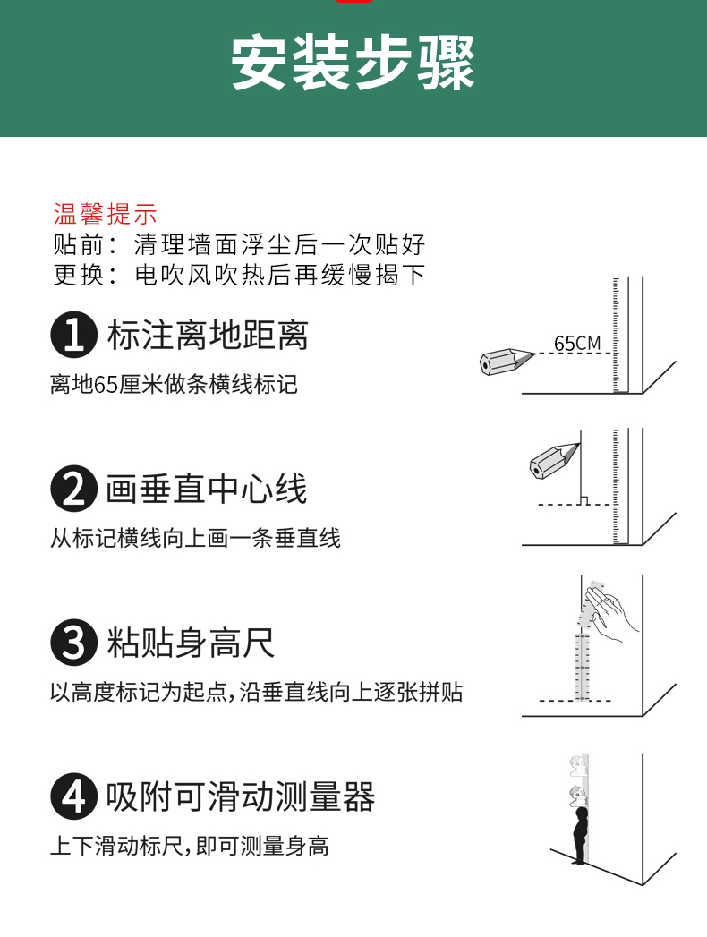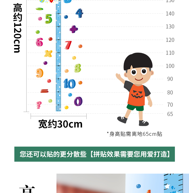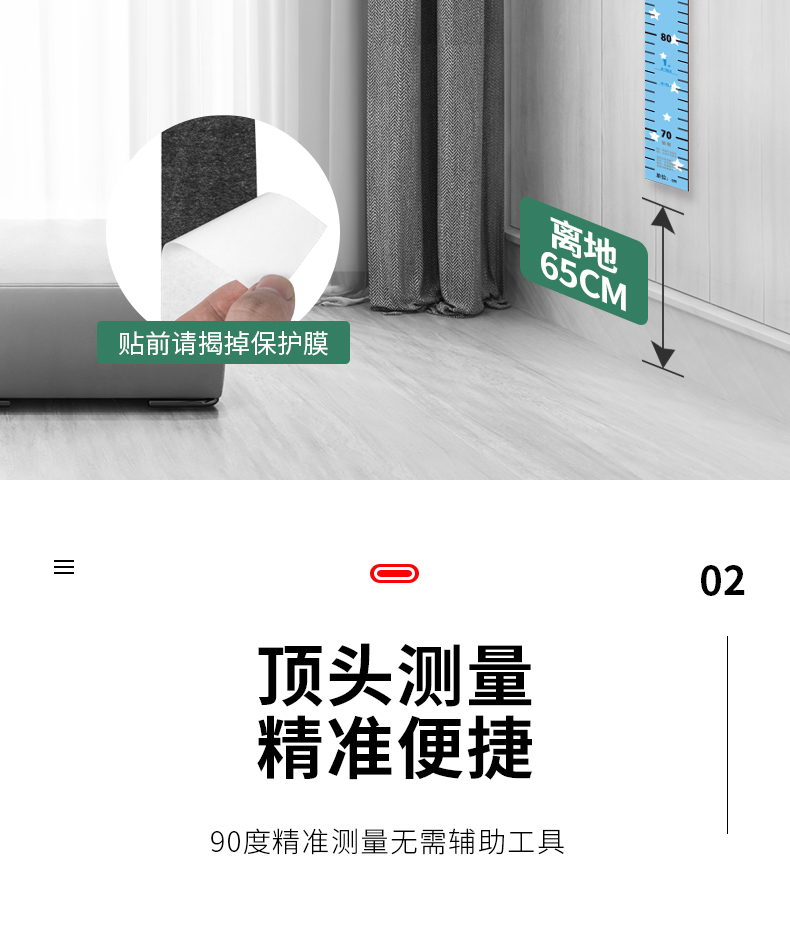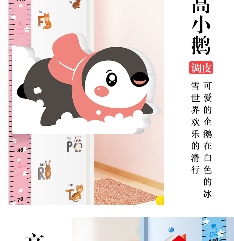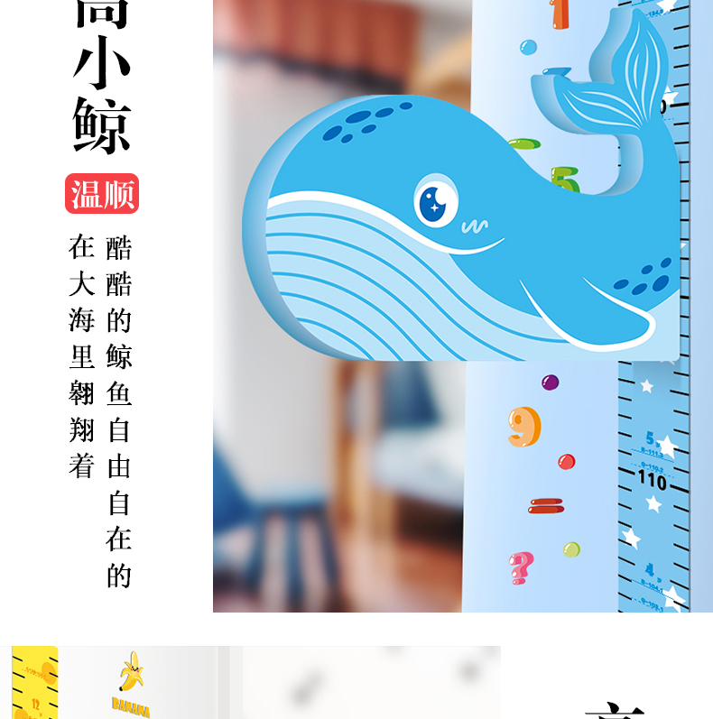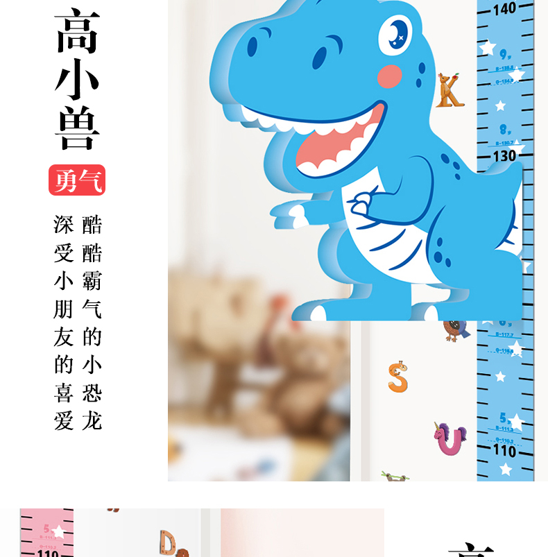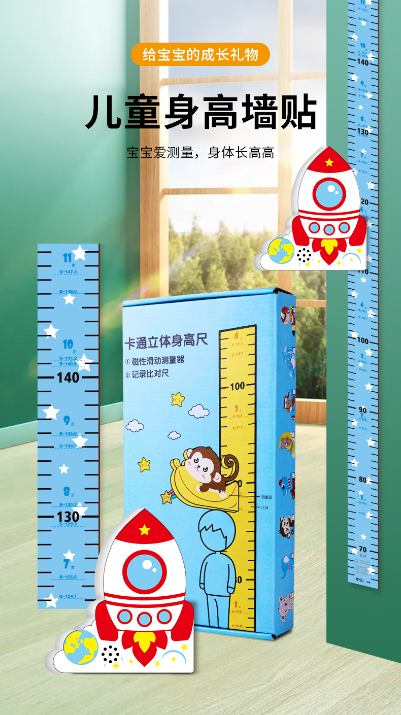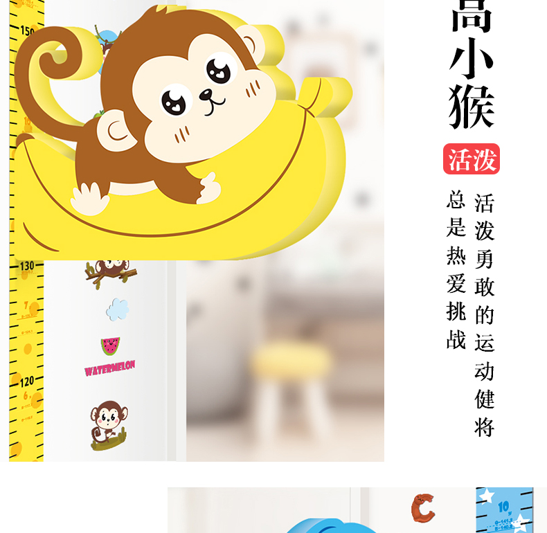 【3D立体儿童身高尺】宝宝身高墙贴3d立体家用儿童房量身高贴纸可移除卡通测量仪尺神器