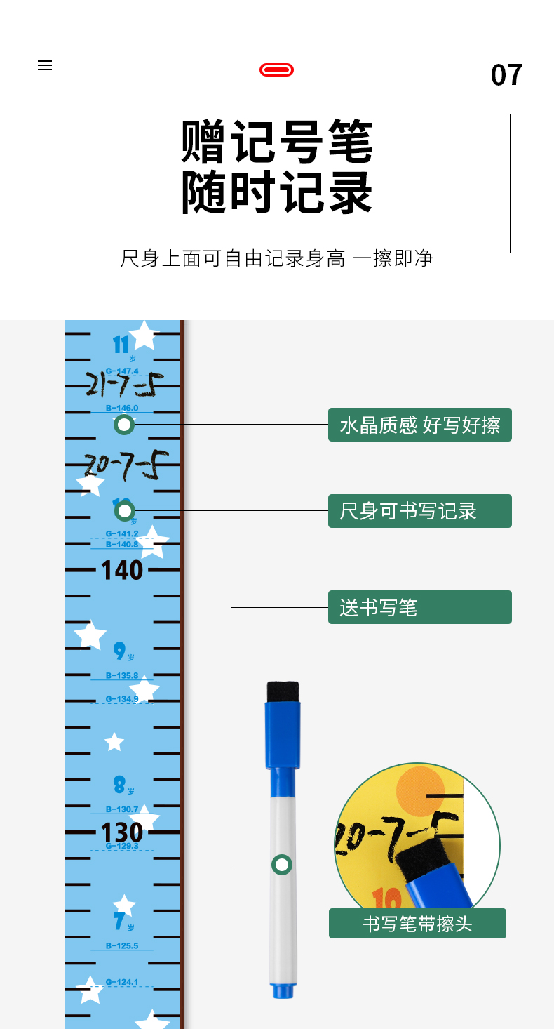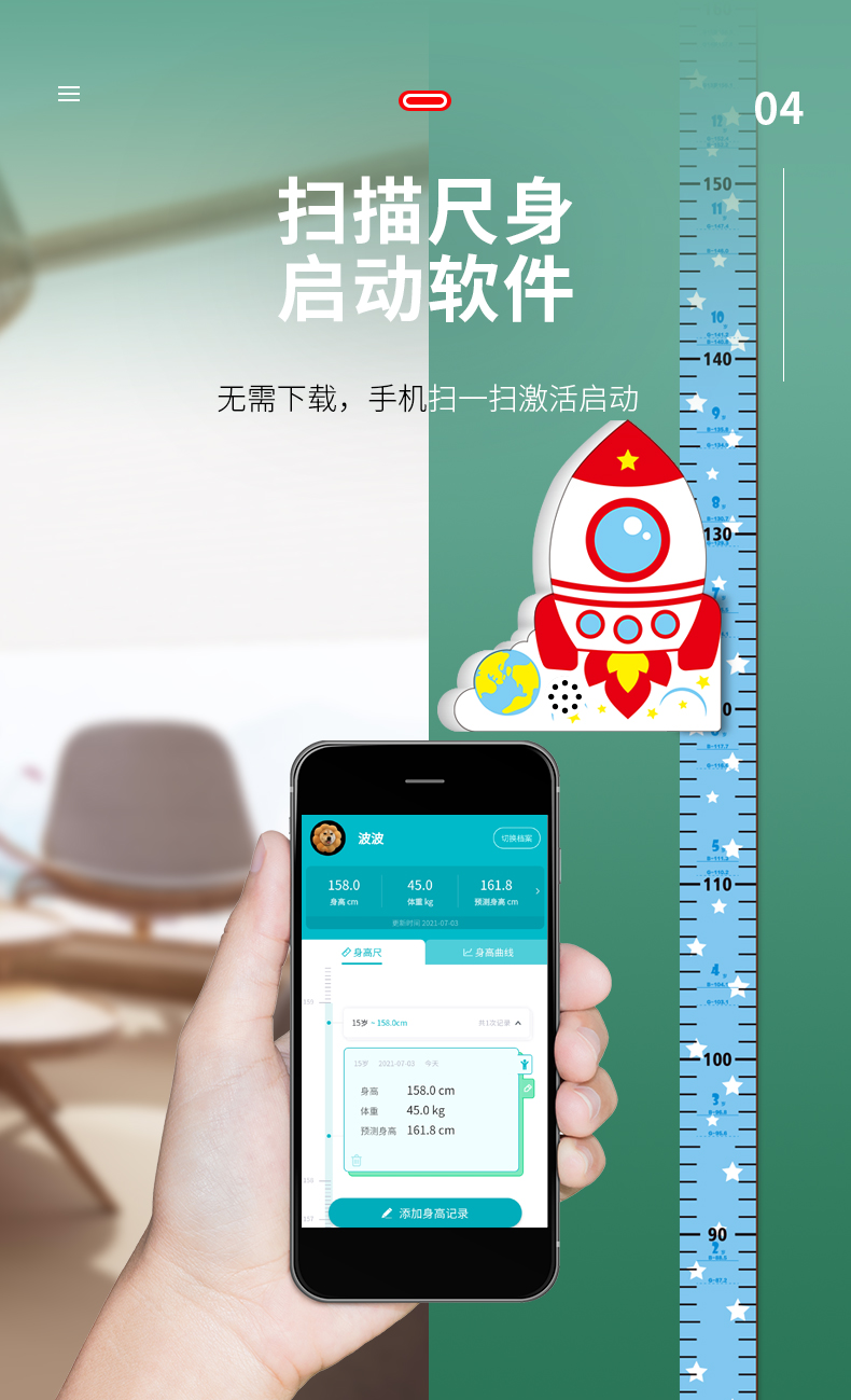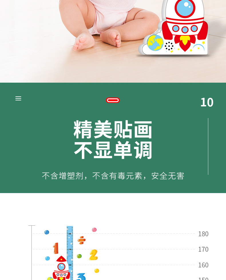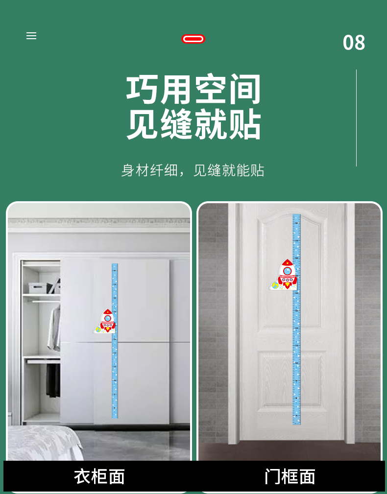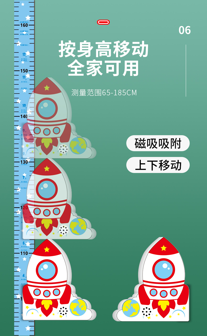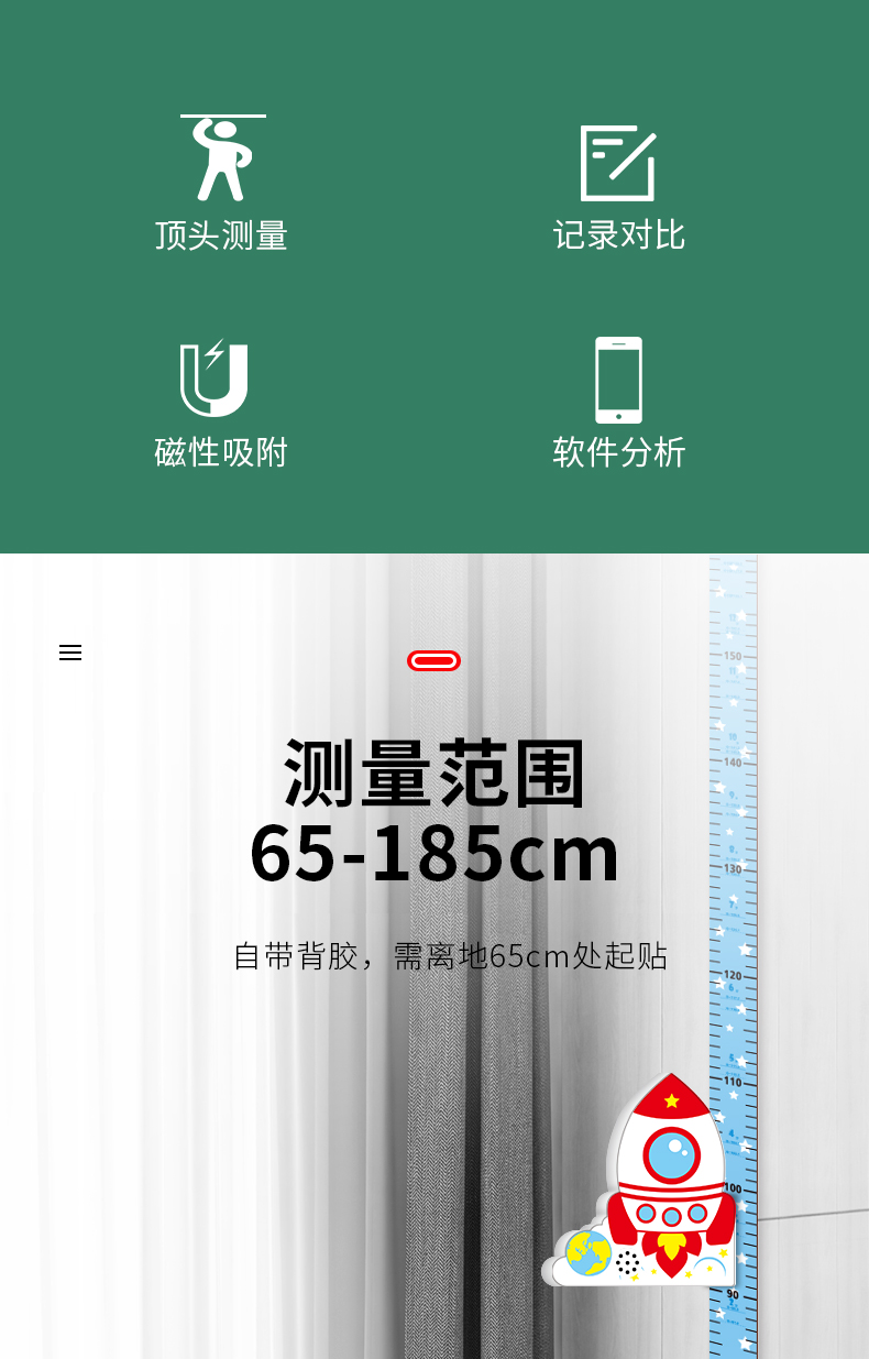 【3D立体儿童身高尺】宝宝身高墙贴3d立体家用儿童房量身高贴纸可移除卡通测量仪尺神器