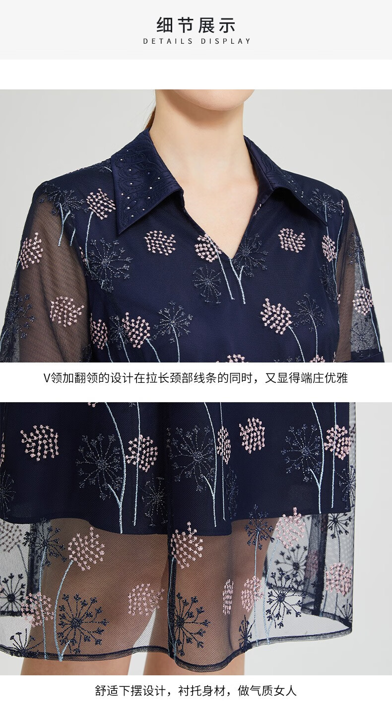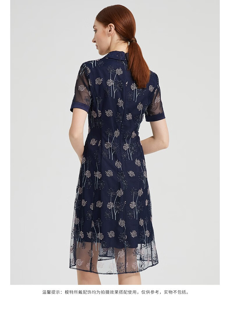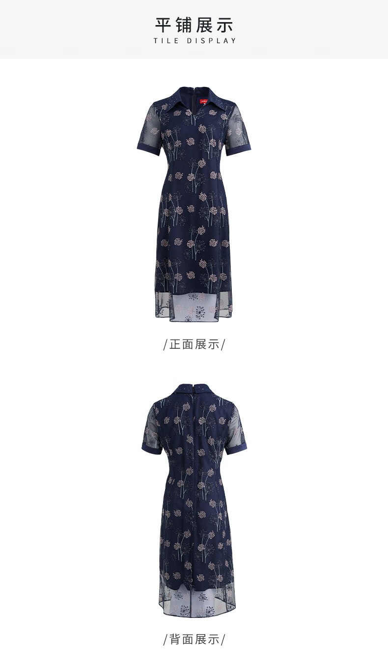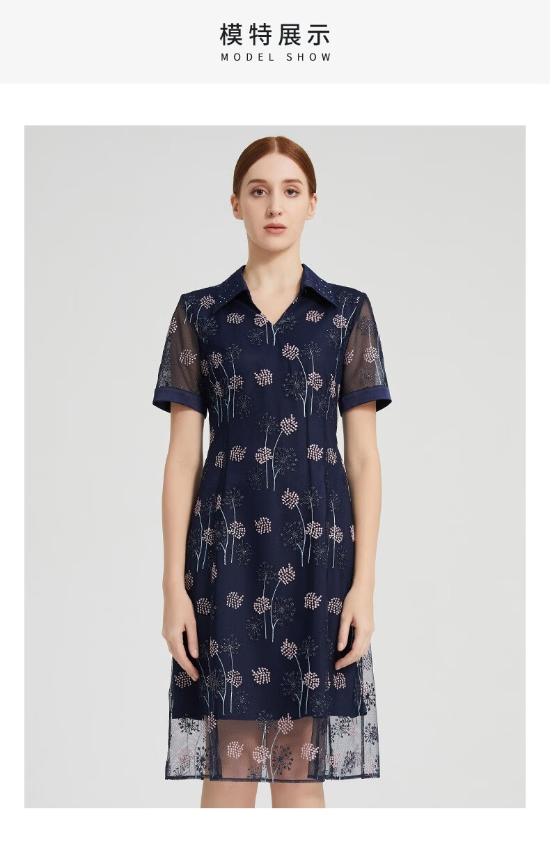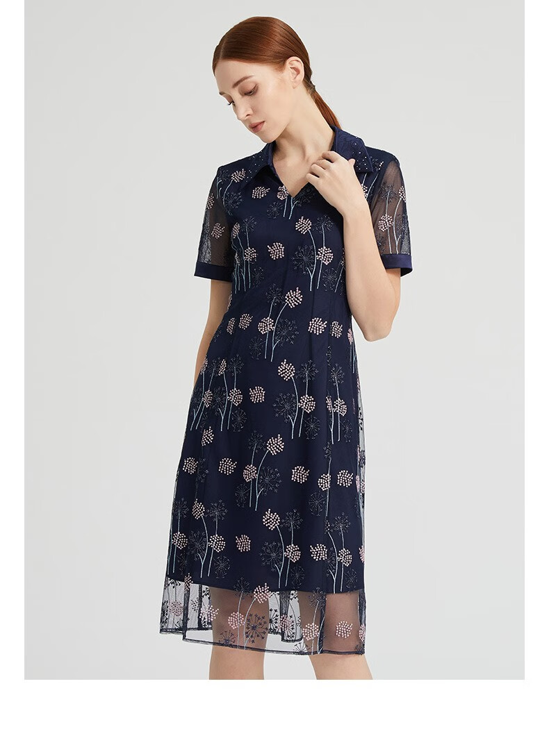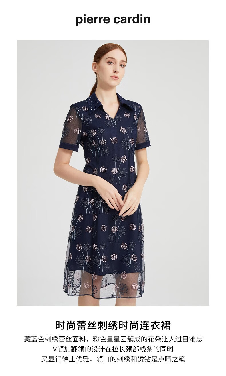 皮尔卡丹女装夏季新款简约通勤淑女刺绣连衣裙P2236D2143N3