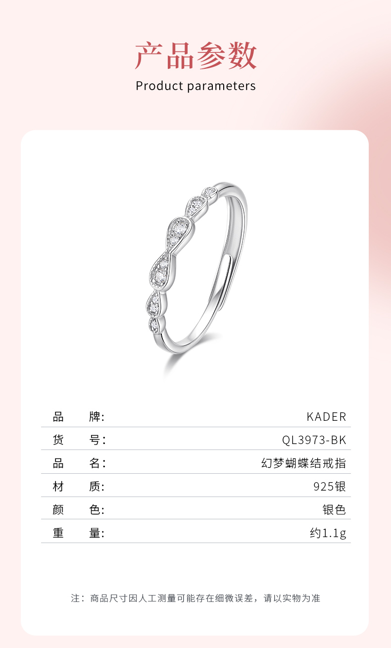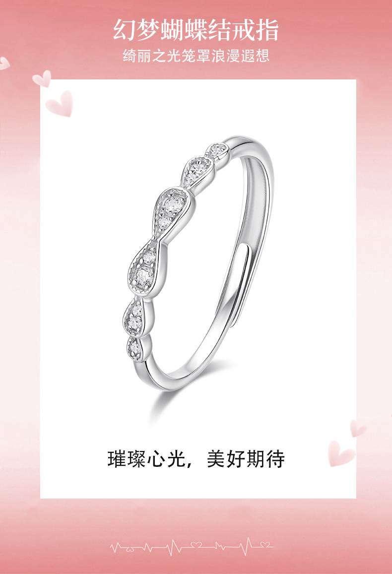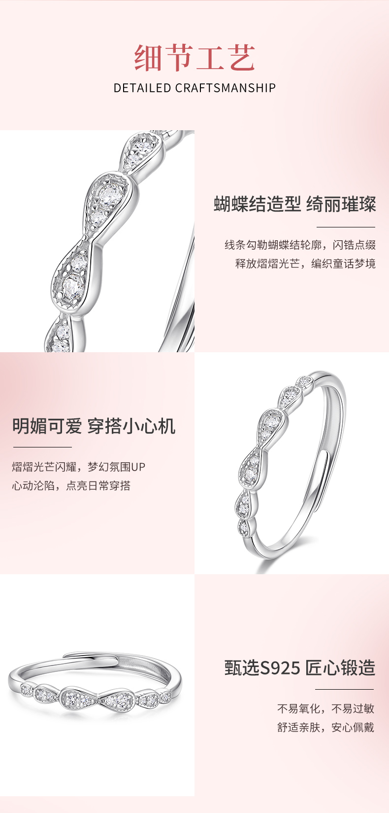 卡蒂罗KADER 甜美蝴蝶结女戒 满镶精致闪锆浪漫女友小众风格闪亮吸睛优雅甜美可爱可调节戒#好运