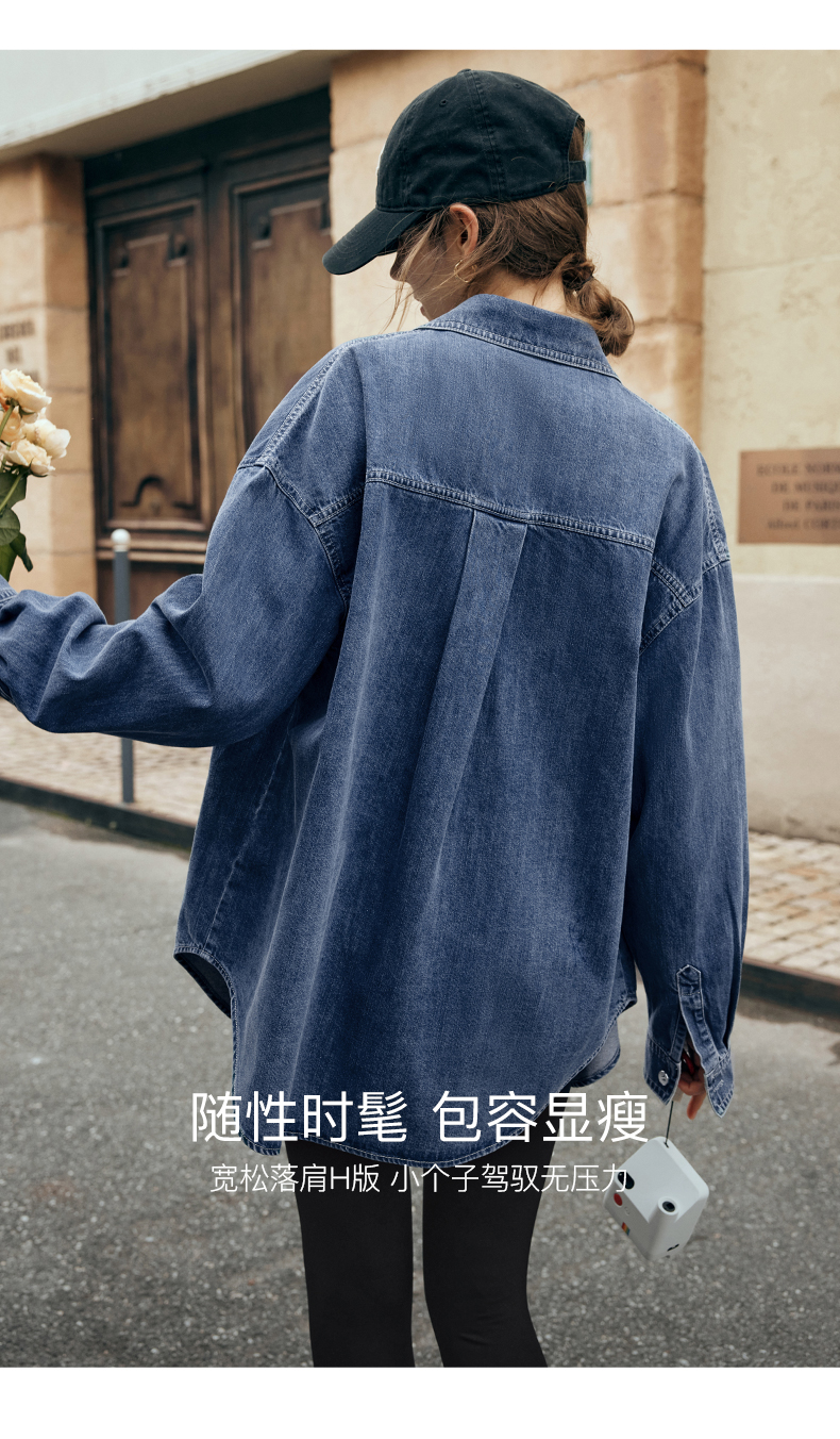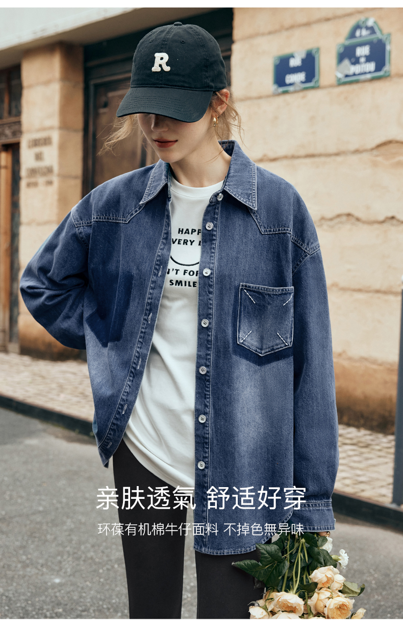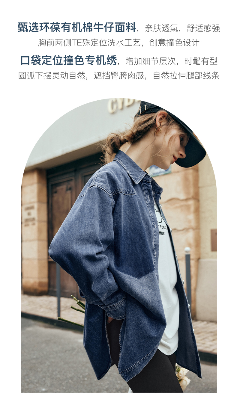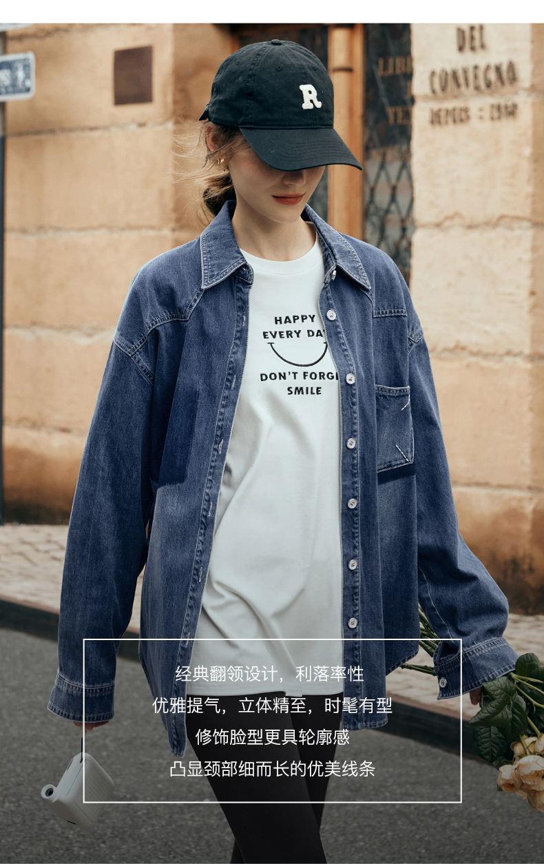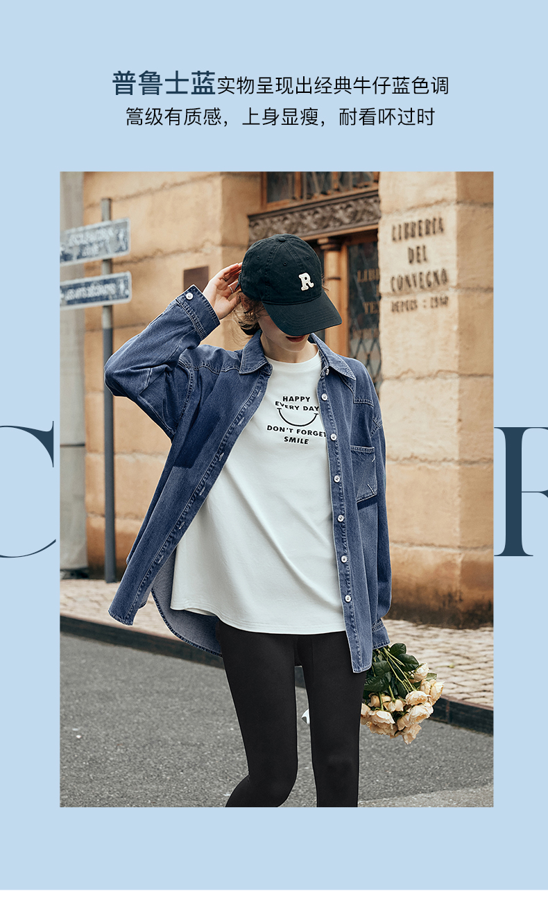 OLrain欧芮儿普鲁士蓝牛仔外套女夏季2023年新款宽松时尚休闲上衣