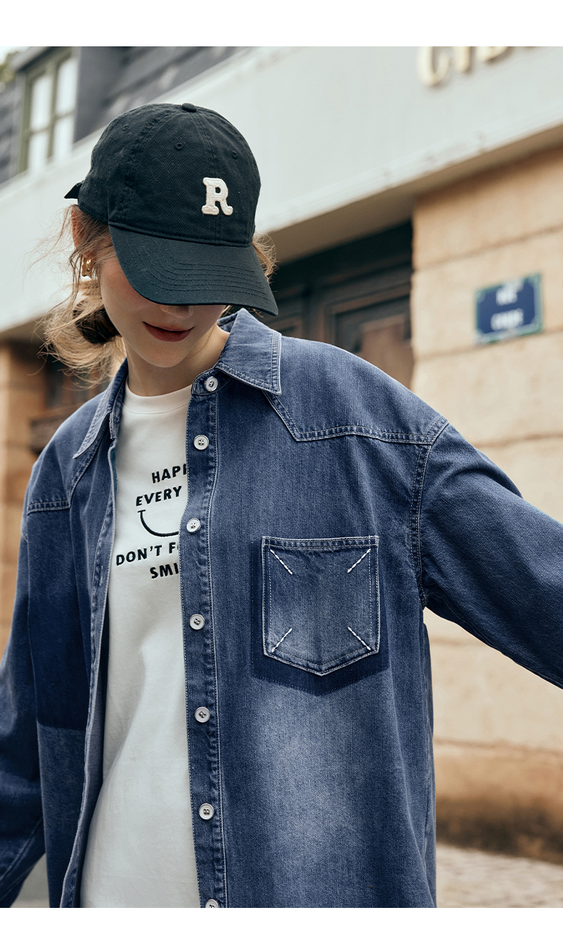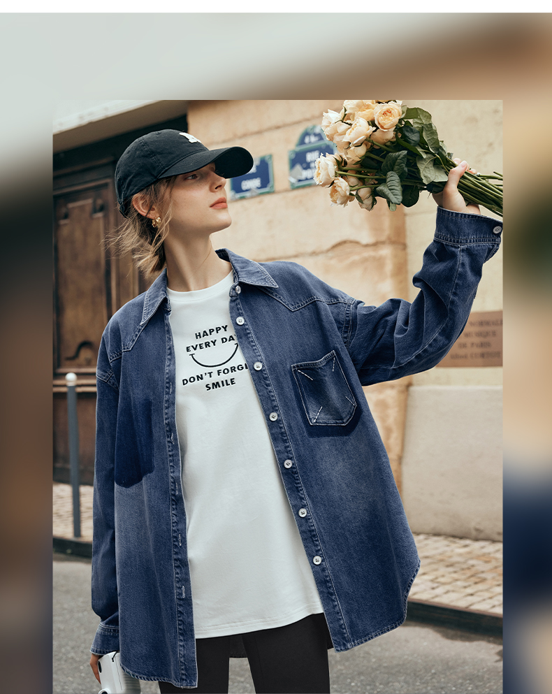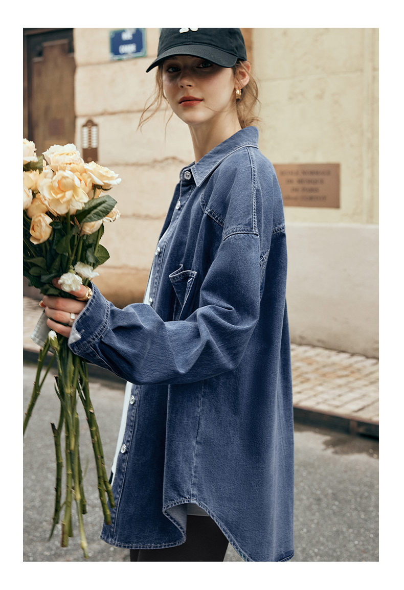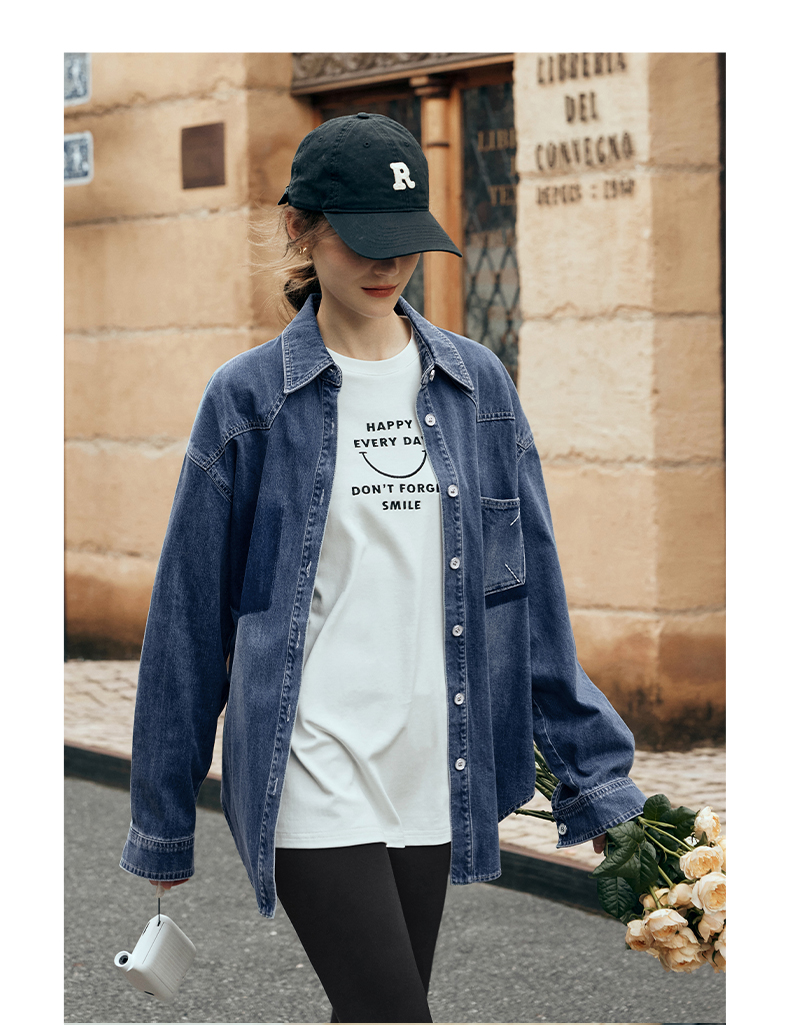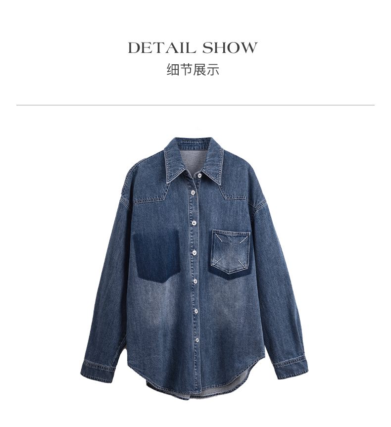 OLrain欧芮儿普鲁士蓝牛仔外套女夏季2023年新款宽松时尚休闲上衣