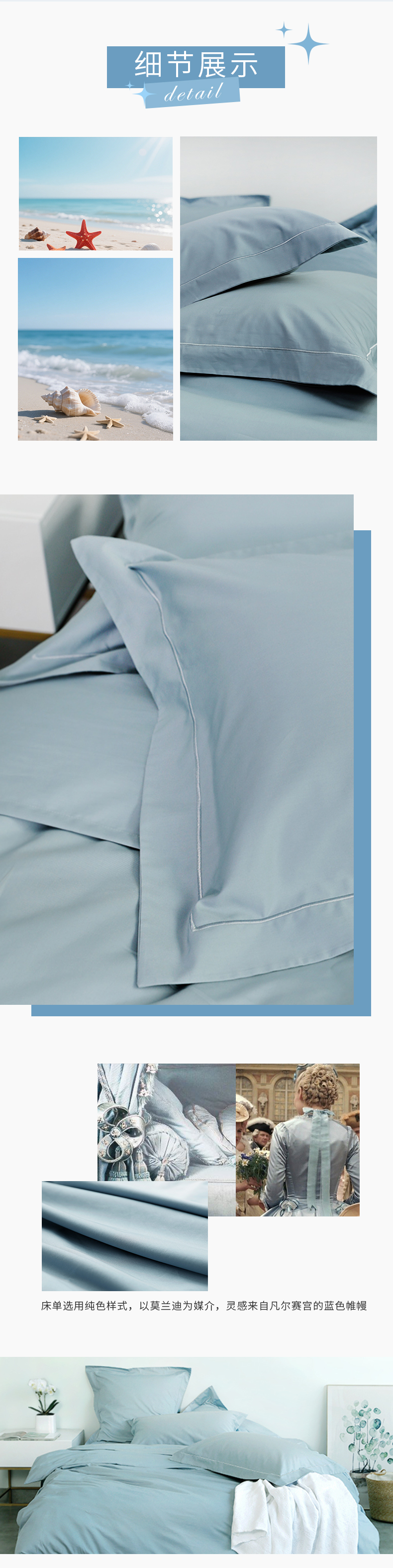 RE·ROYAL BLEUGLACIER皇家纯色水蓝系列·棉贡缎四件套