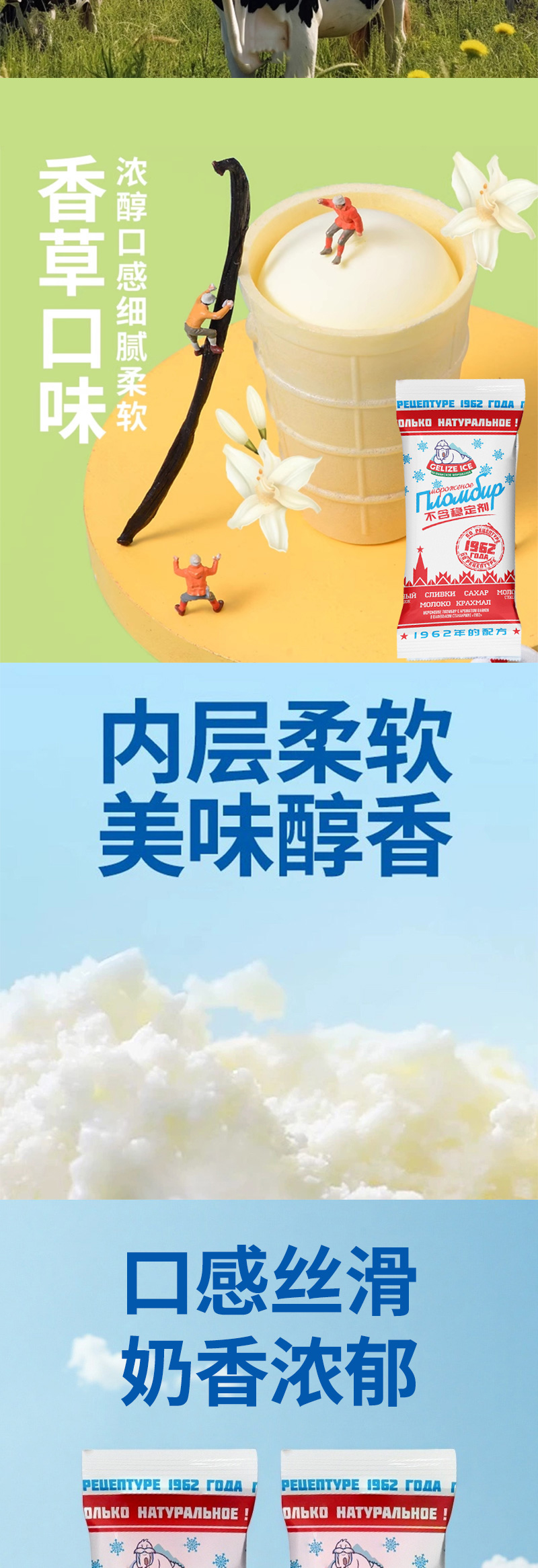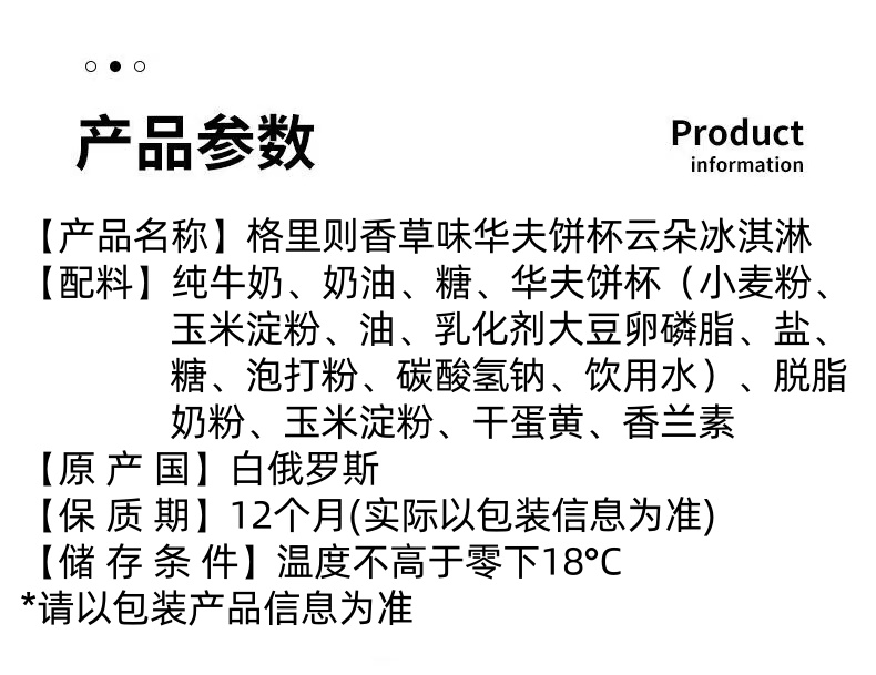 白俄罗斯进口格里则香草味华夫饼杯云朵冰淇淋70g*10支