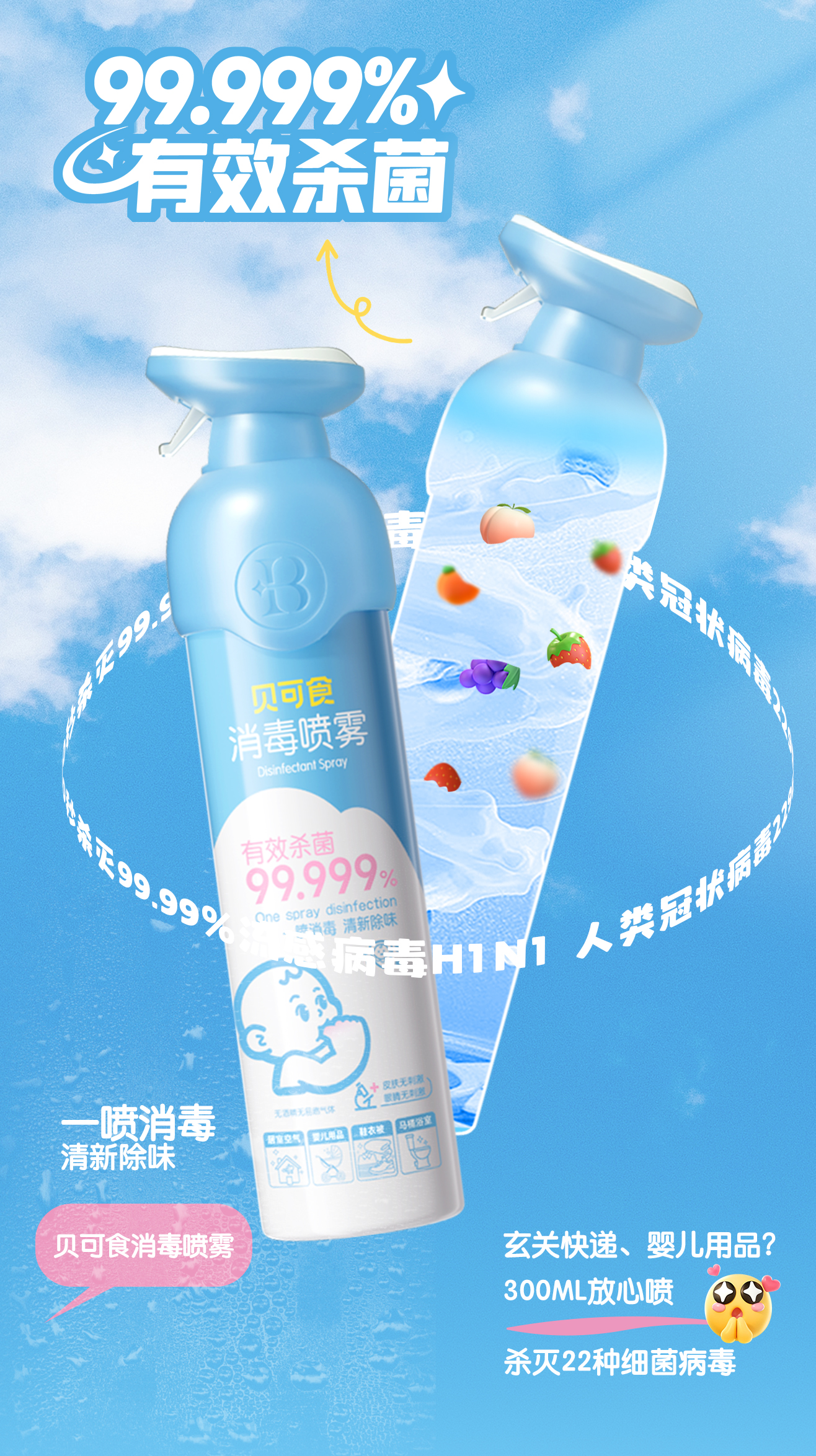 💥H3N2新型甲流来袭!换季必备|杀菌!消毒!除味!防流感!【贝可食消毒喷雾】灭菌率99.999%!经口无毒无刺激!母婴可用!