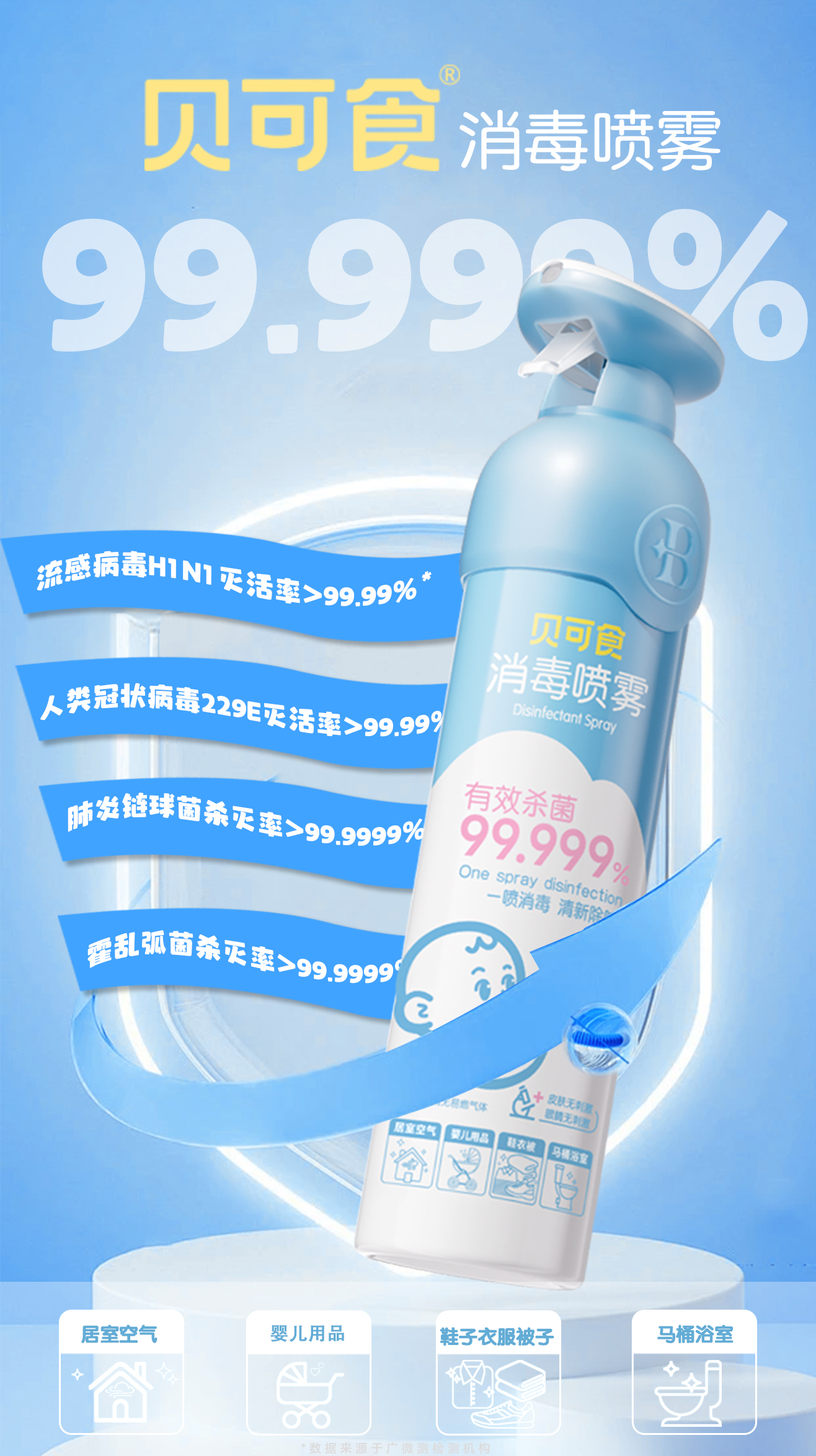 对常见的22种细菌、病.毒灭杀率高达99.999%!