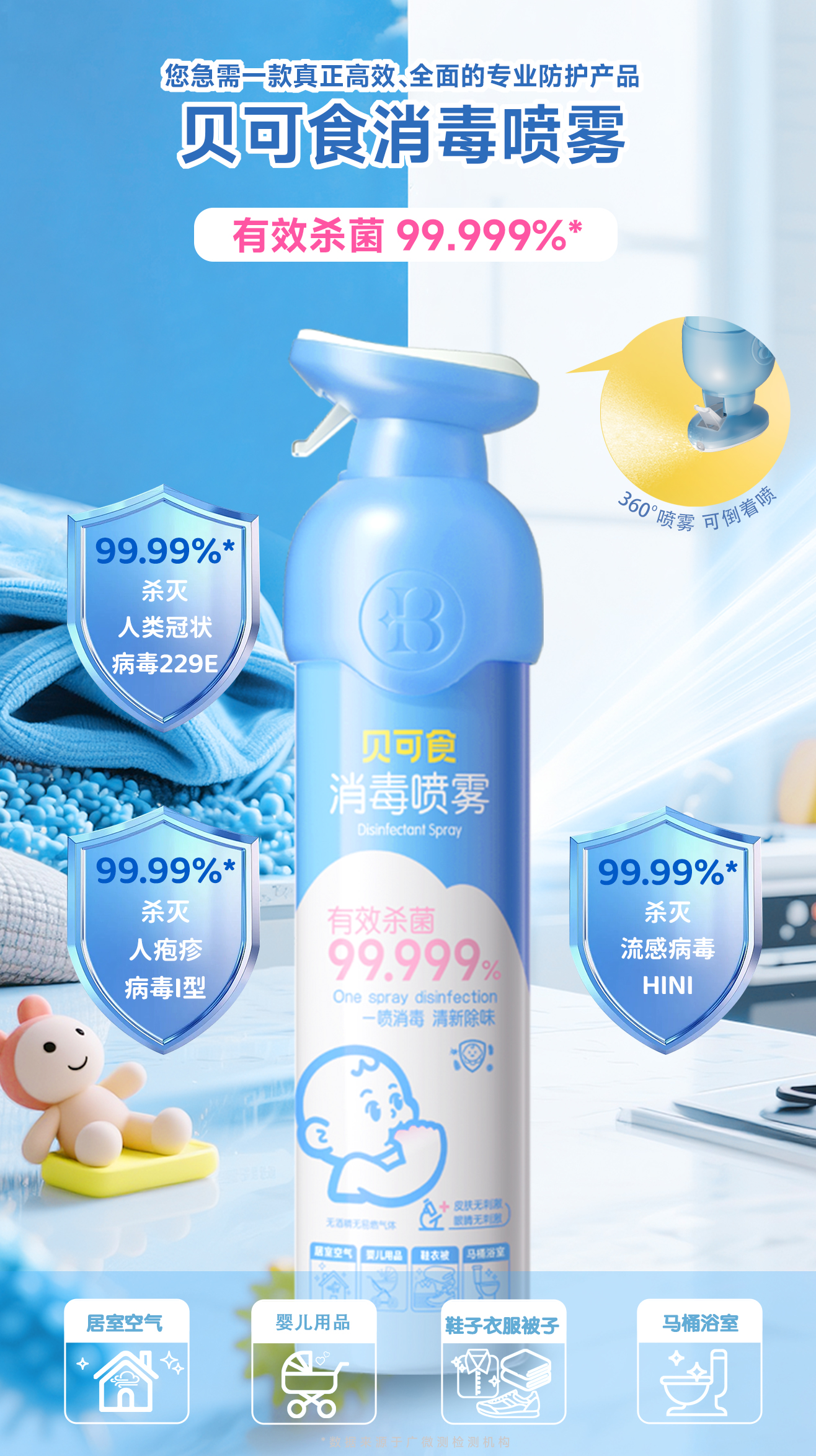 定期给宝贝的床品、桌椅、玩具...喷一喷,守护孩子健康成长