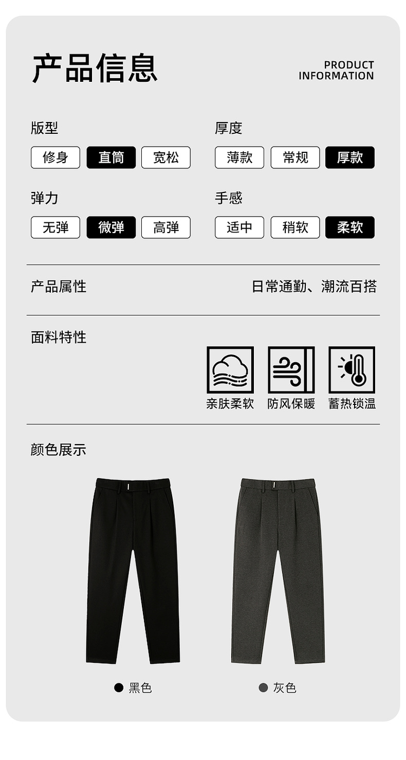 GXG男装秋季简约百搭日常通勤直筒裤商务休闲加厚磨毛男式裤子K&C