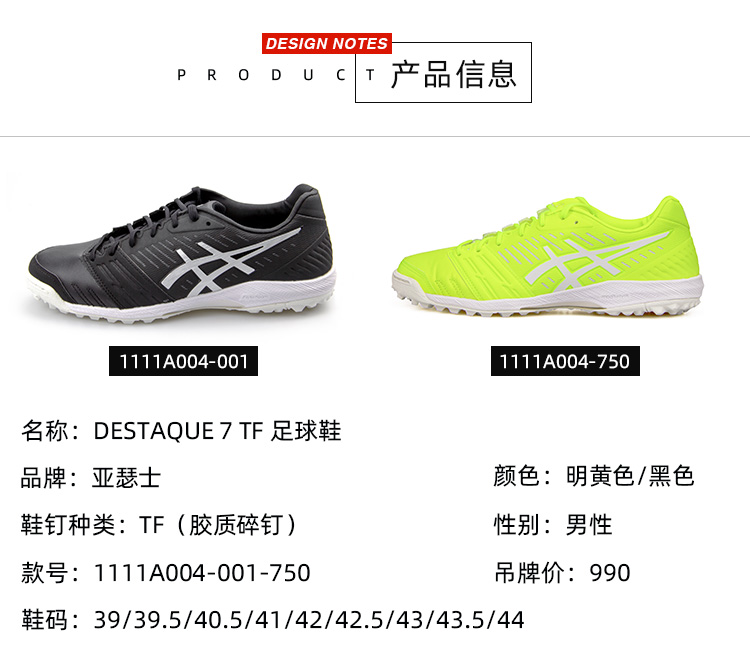 SFS亚瑟士DESTAQUE7男子TF碎钉袋鼠皮人草足球鞋1111A004-750 001