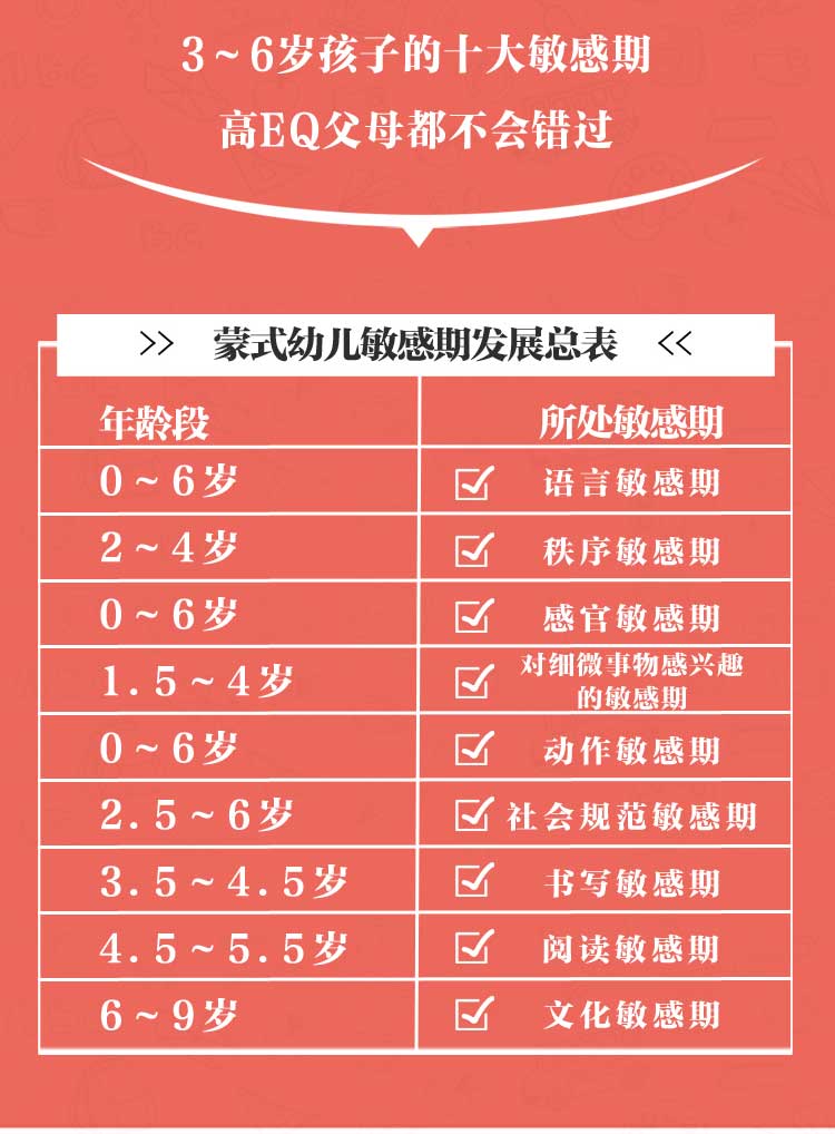 3~6岁,是孩子处于敏感期迸发惊人力量和学习兴趣的阶段。此时孩子接受教育的效果最为明显,可以说敏感期是孩子各项能力发展的黄金时期。在这一阶段,父母教育孩子不应只看表面,要探究孩子行为背后的心理因素,这样才能对症下药,正确引导。可以说,读懂孩子,抓住孩子的成长敏感期,解开孩子行为背后的心理密码,是父母的必修课。