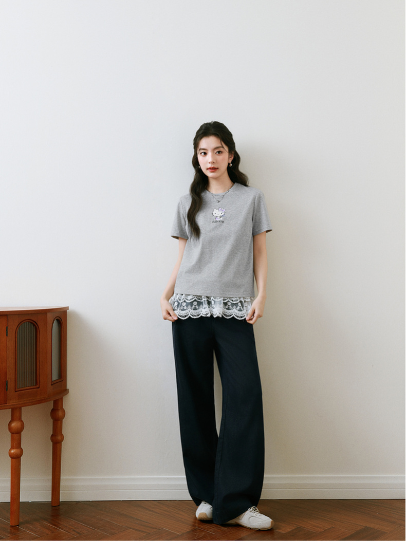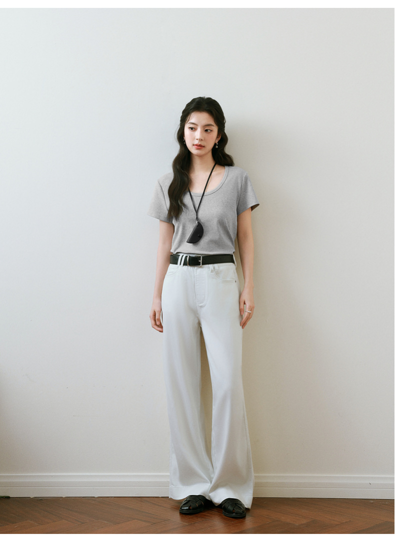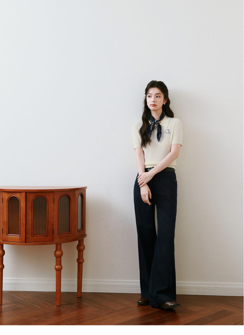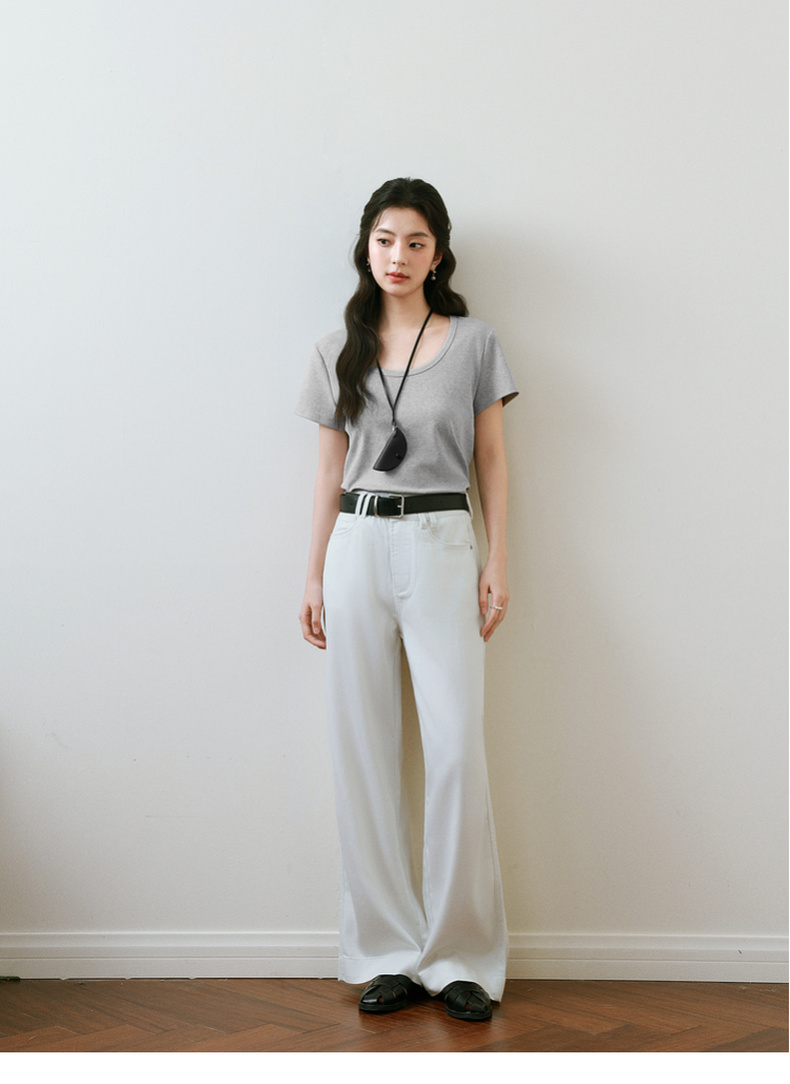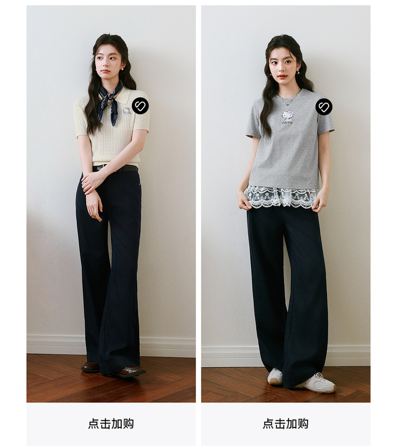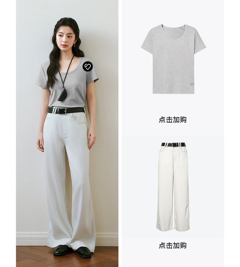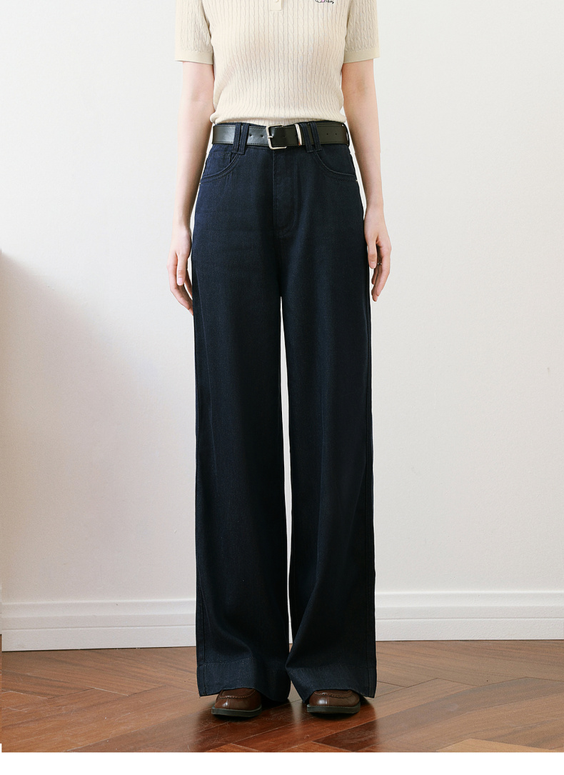 【严选】【解压裤】诗凡黎星光璀璨细闪牛仔裤25夏新款高腰轻薄直筒阔腿裤7G4150231