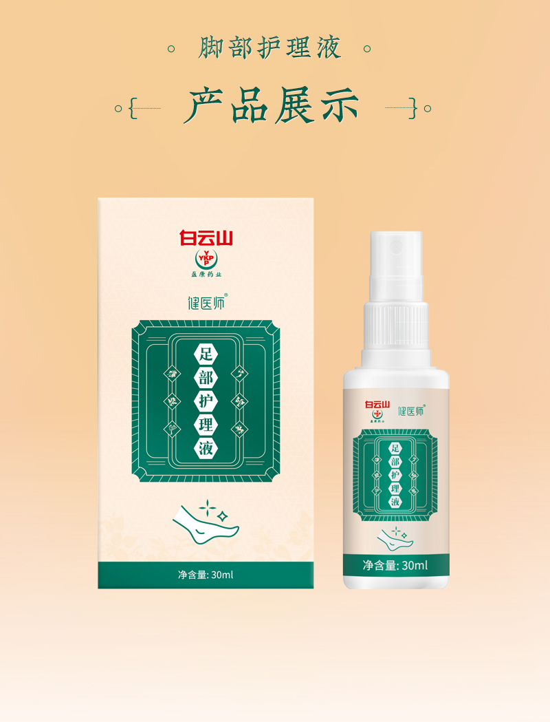 【脚痒脚臭 轻松护理】白云山足部护理液 脚部护理清足除臭 脚干痒脚汗脚裂脚痛 清爽夏日快速止痒 脚臭喷雾30ml/瓶