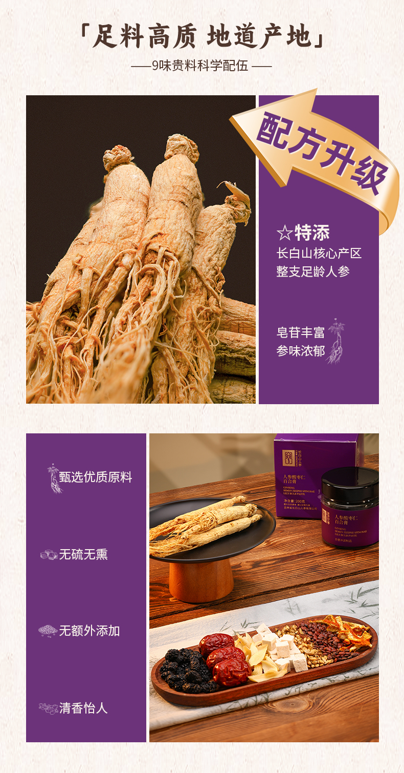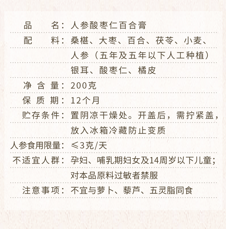 长白山人参 人参酸枣仁百合膏200g 古法熬制 甄选优质原料 无硫无熏 48小时发货