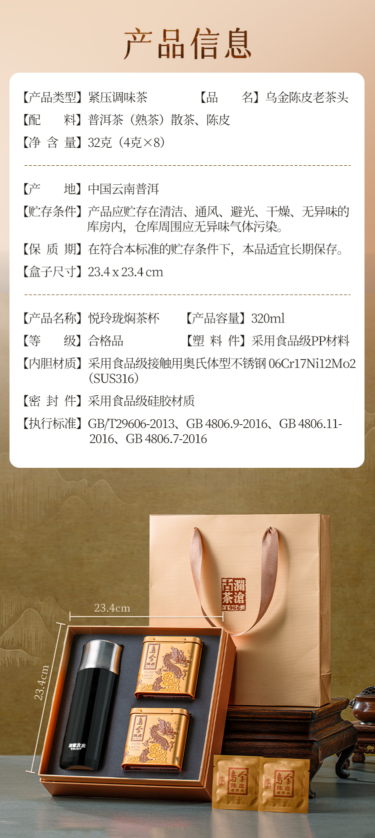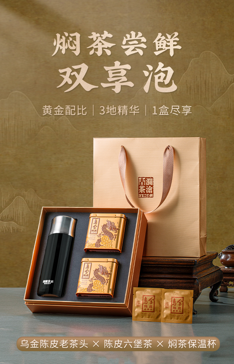 澜沧古茶2024年乌金陈皮老茶头普洱熟茶云南名山古树茶2罐装礼盒套组64g(焖杯颜色随机发)