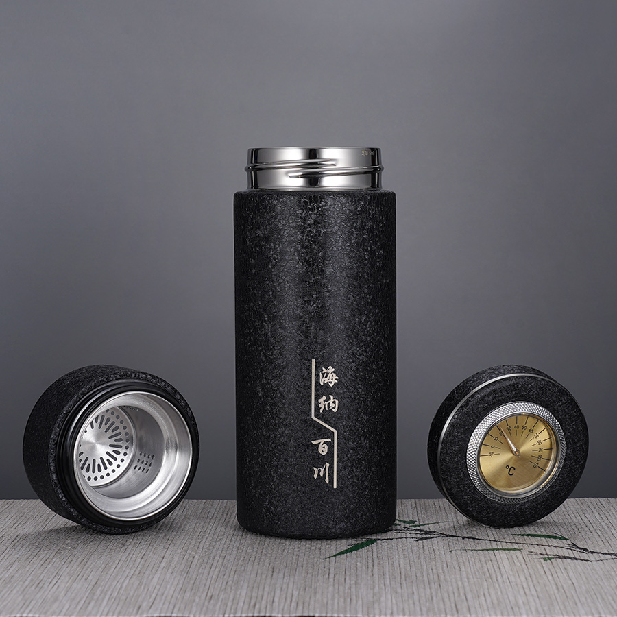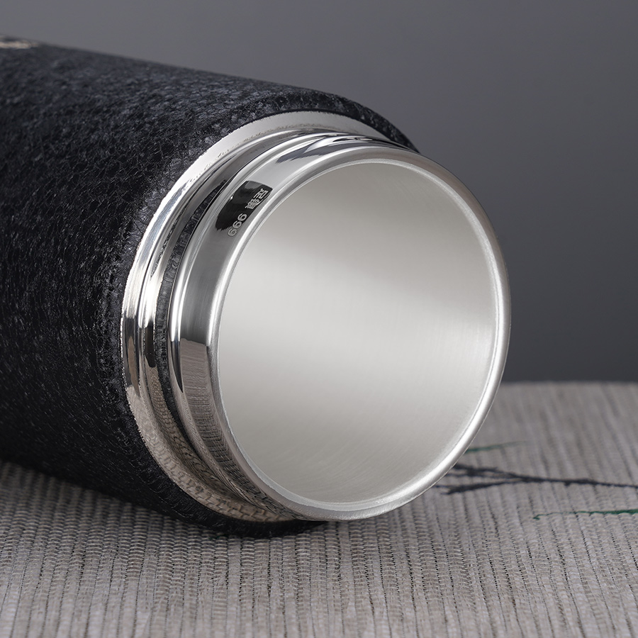 【寓意】:外壳采用冰花烤漆工艺,呈现出古朴的格调,低调内敛中尽显贵气。内胆以999足银打造,搭配温度计杯盖,可实时监测杯内水温,实用又贴心。