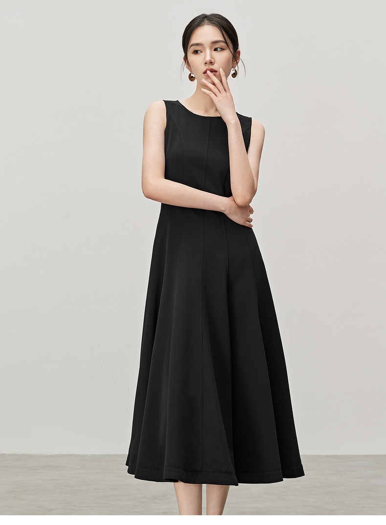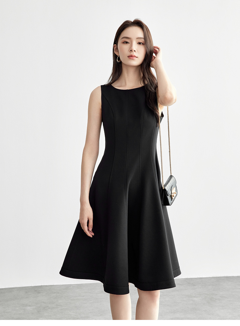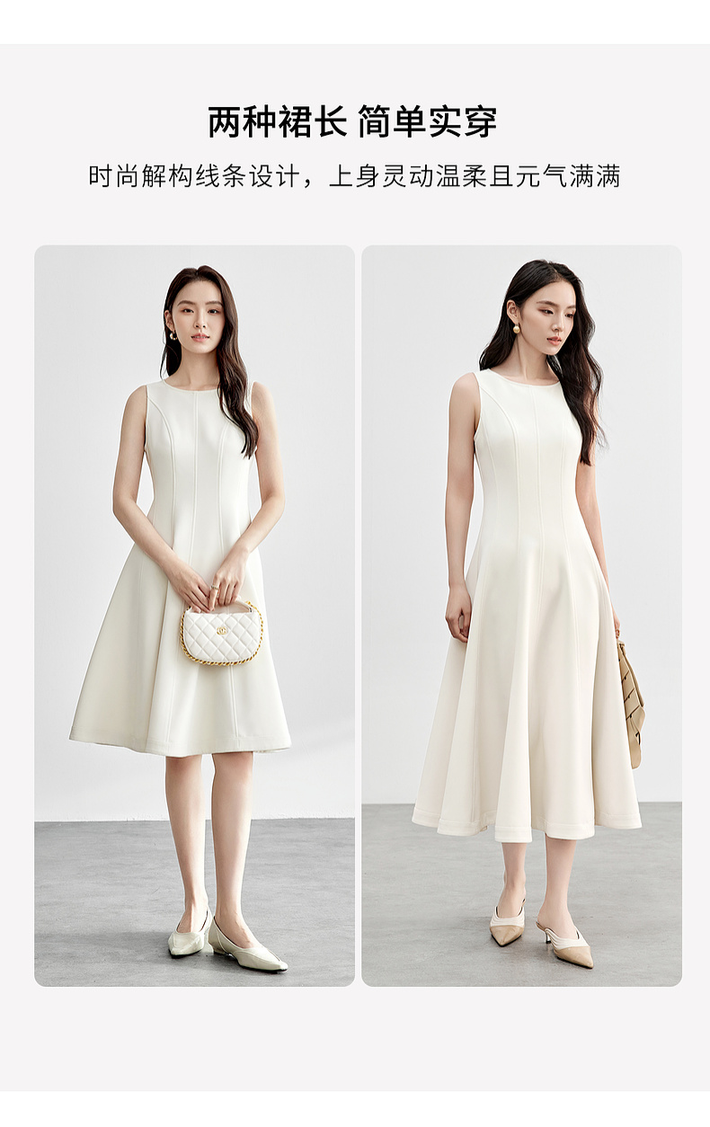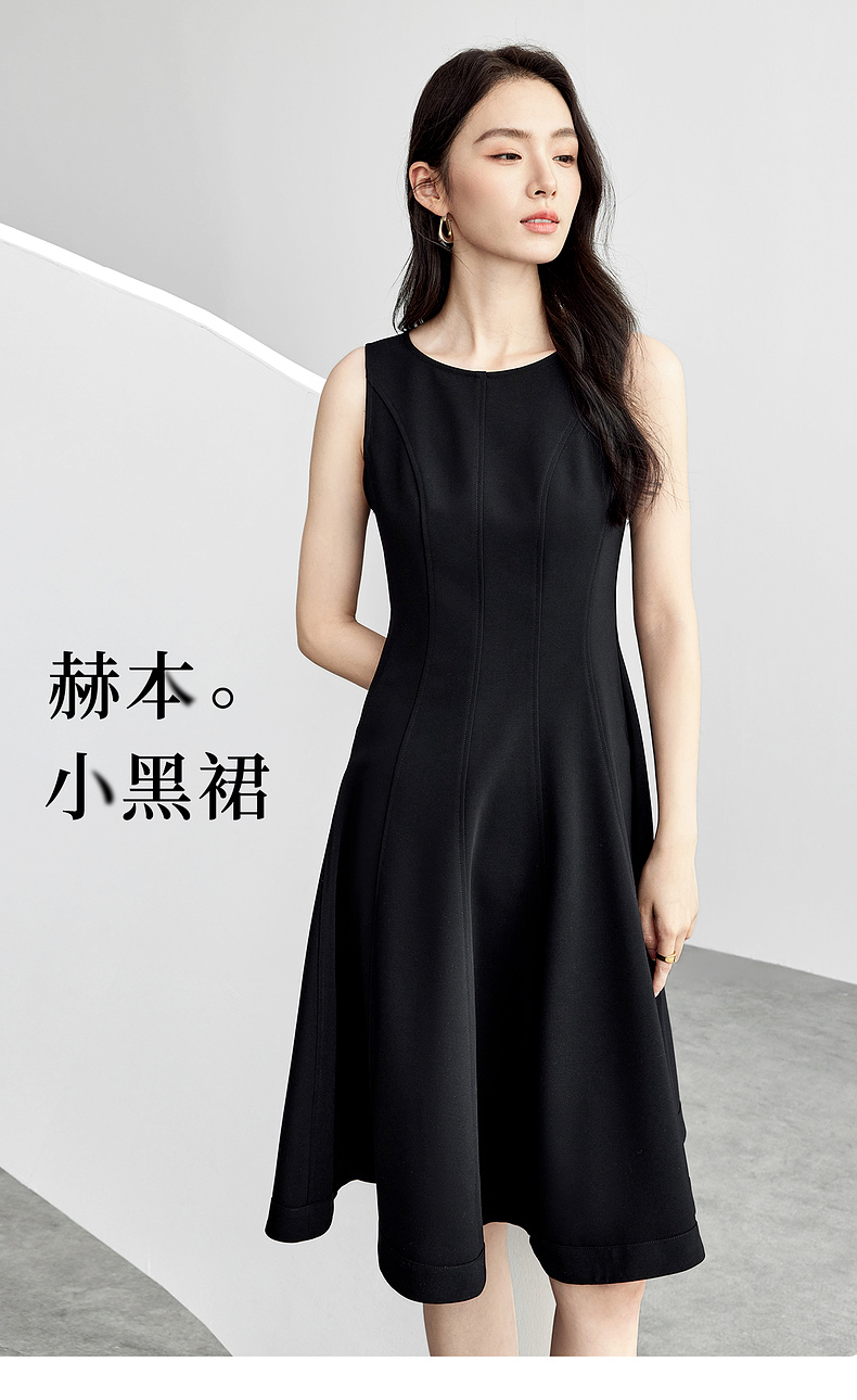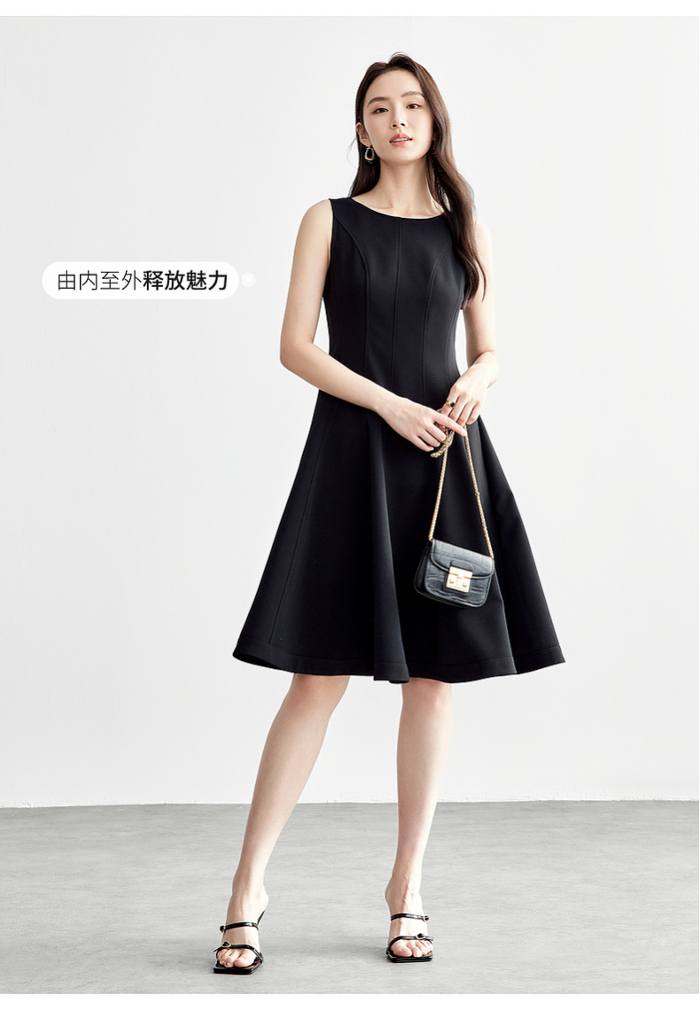 【内购】尚都比拉气质通勤设计解构线条收腰显瘦圆领连衣裙-151L58400