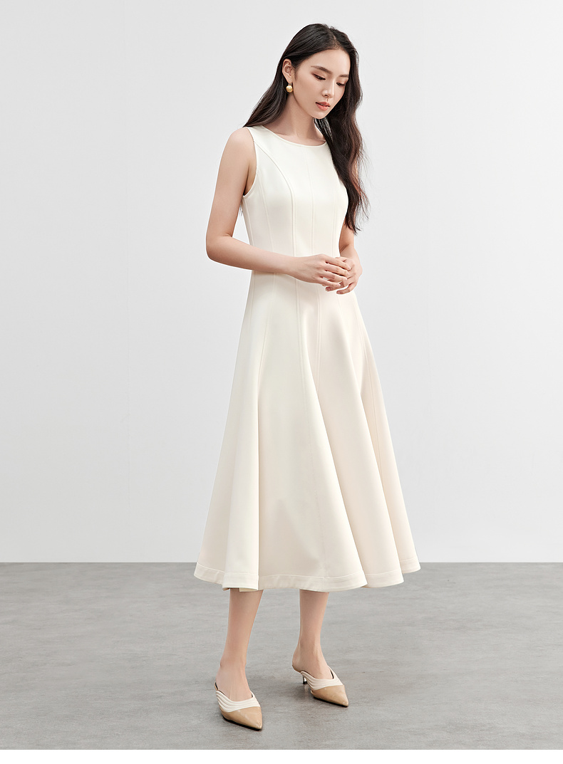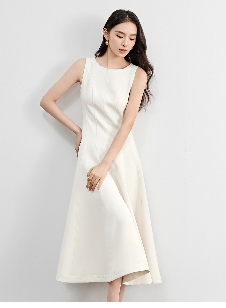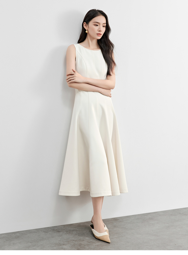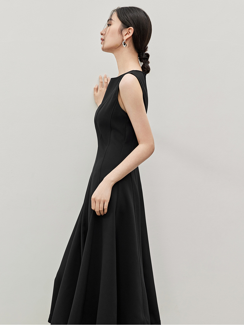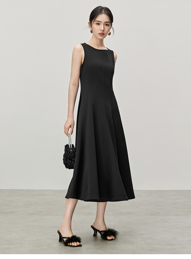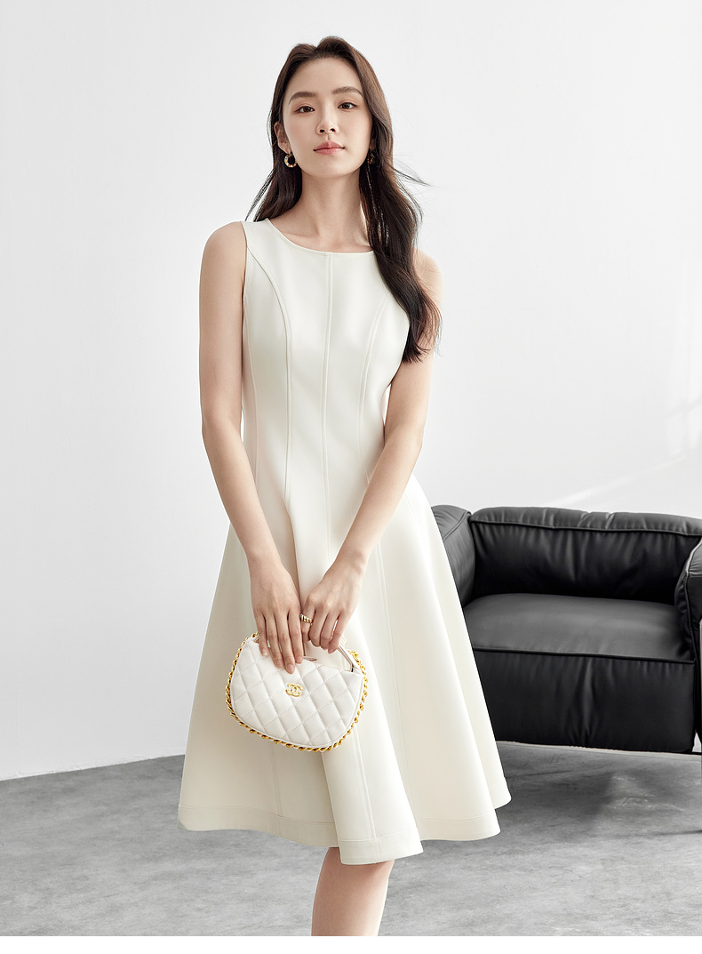 【内购】尚都比拉气质通勤设计解构线条收腰显瘦圆领连衣裙-151L58400