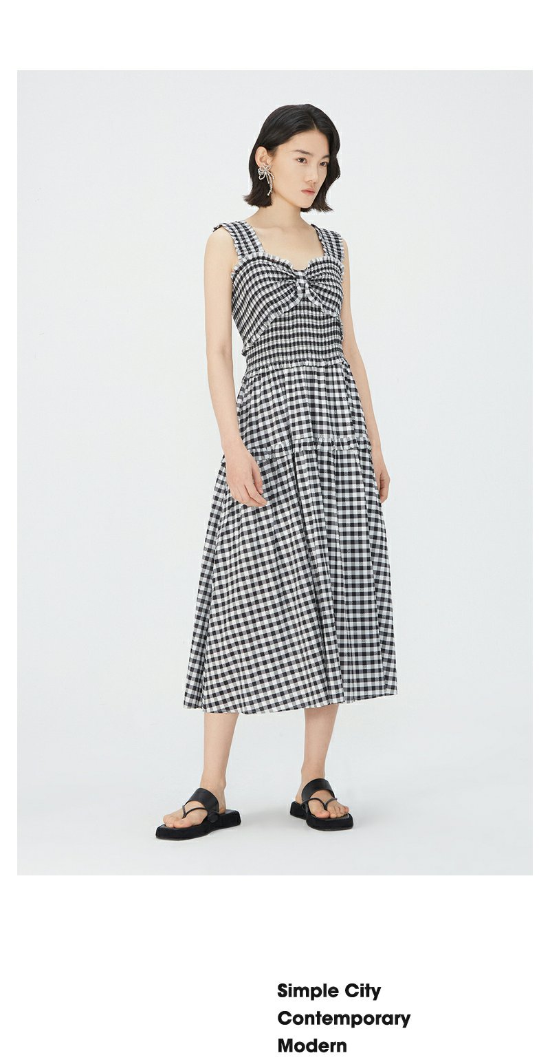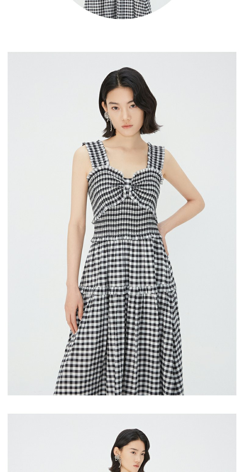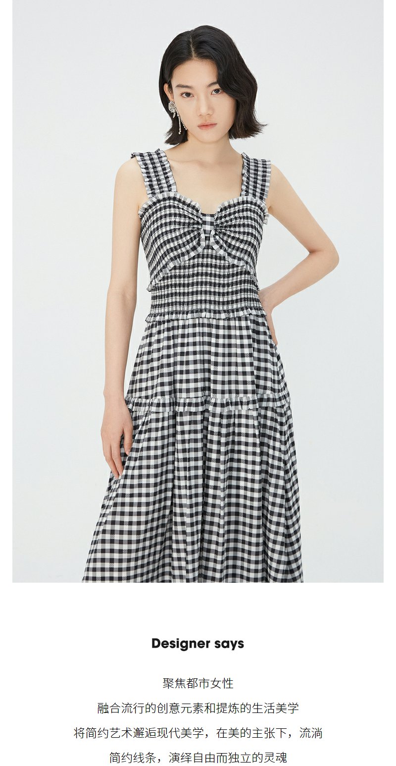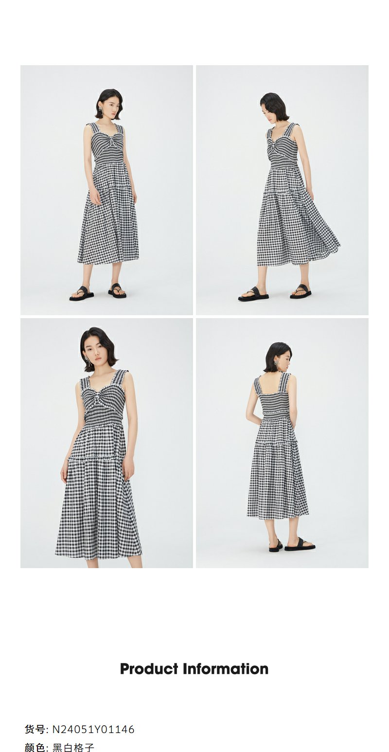 NEELLY纳俪商场同款黑白格吊带连衣裙女莱赛尔收腰显瘦度假风裙子N24051Y01146