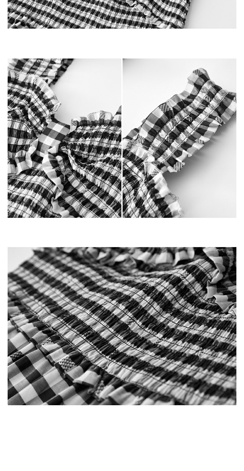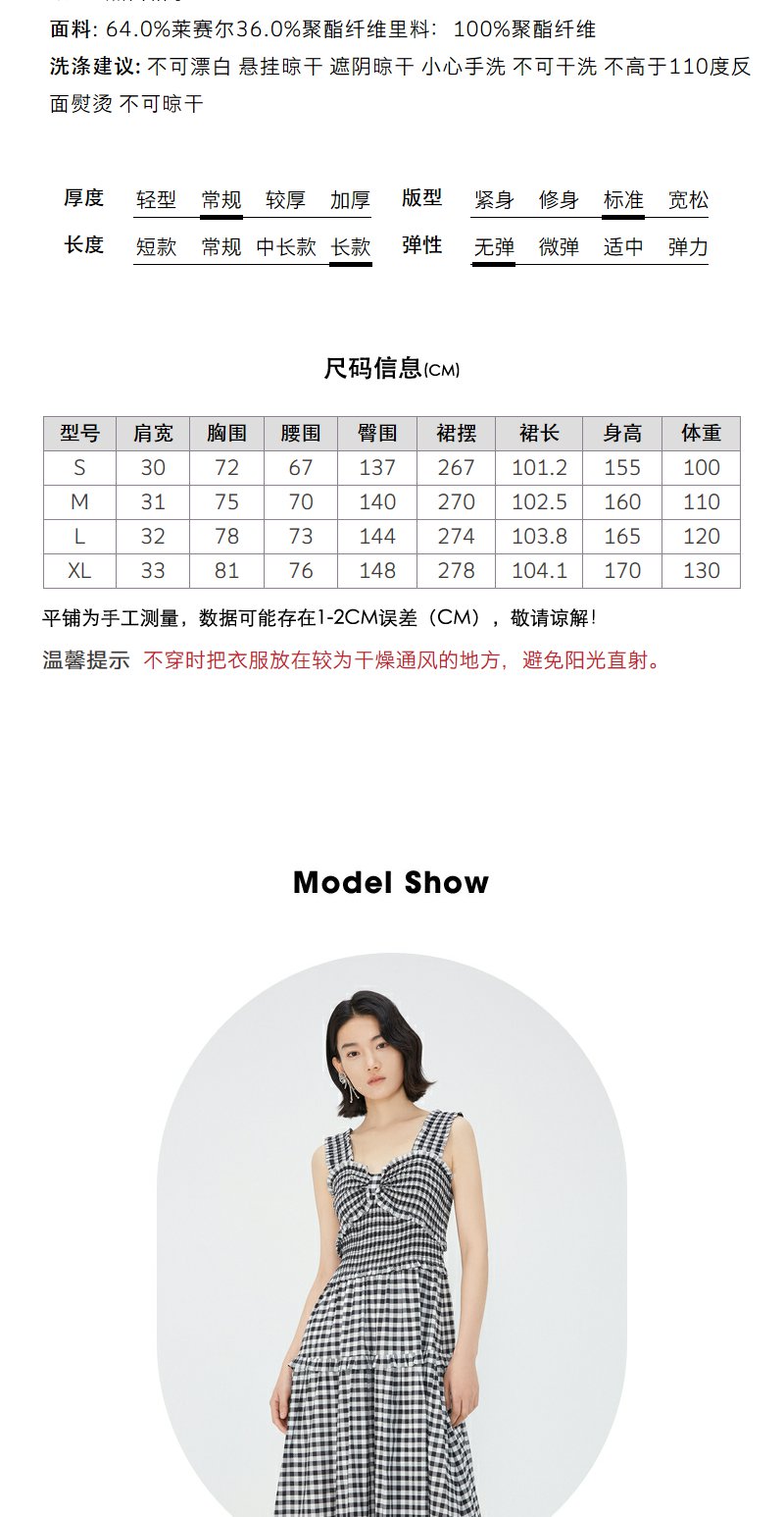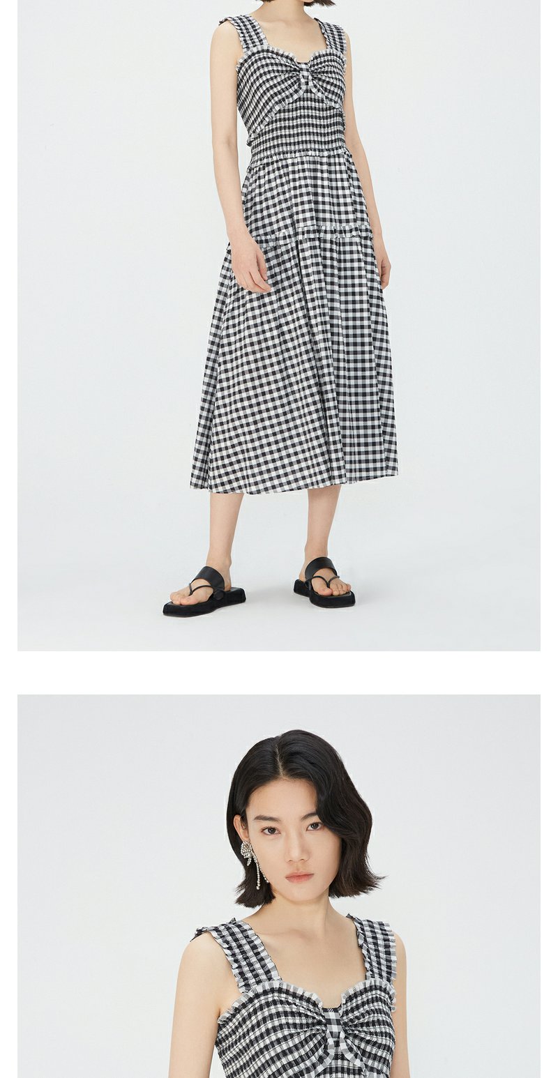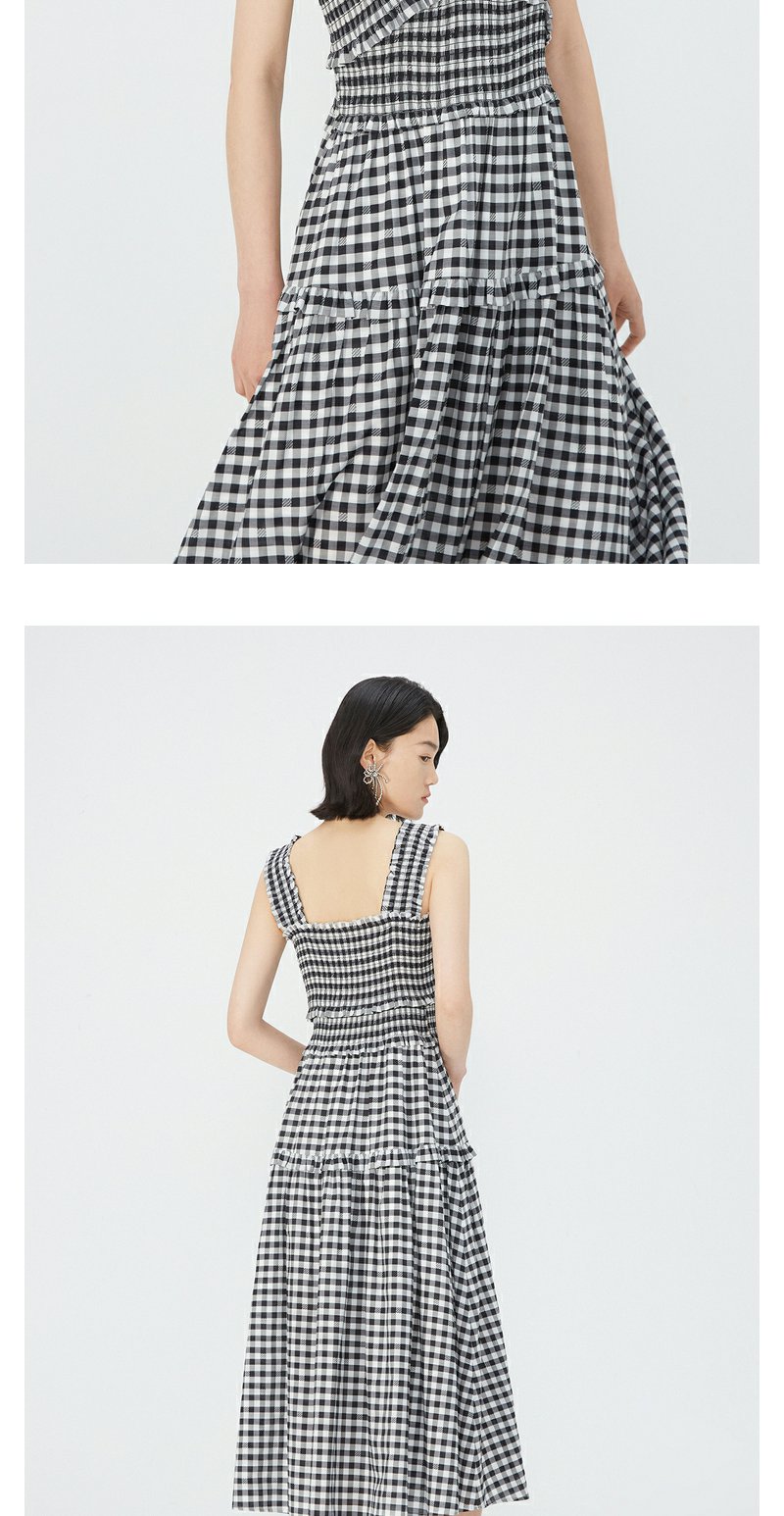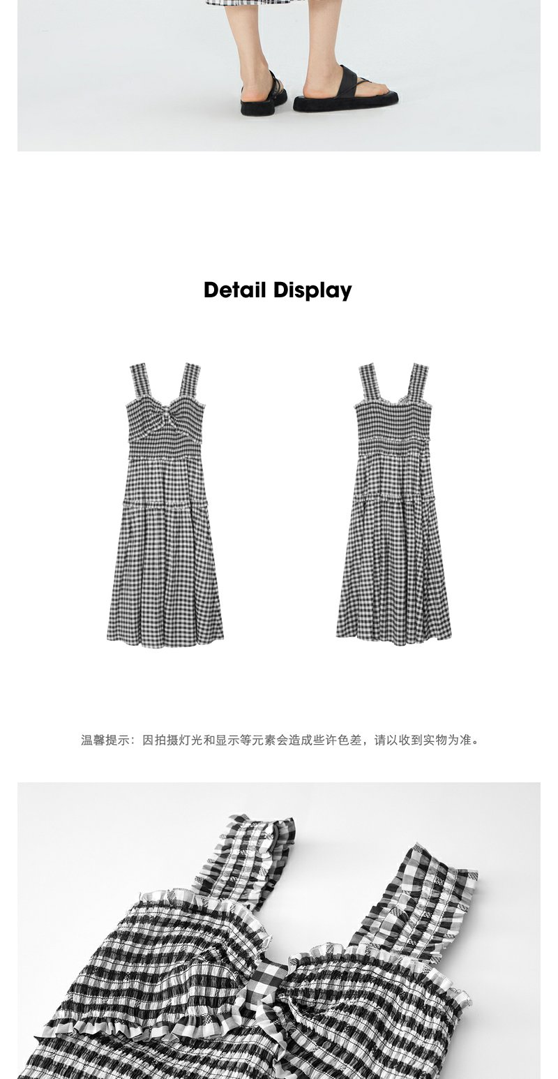 NEELLY纳俪商场同款黑白格吊带连衣裙女莱赛尔收腰显瘦度假风裙子N24051Y01146