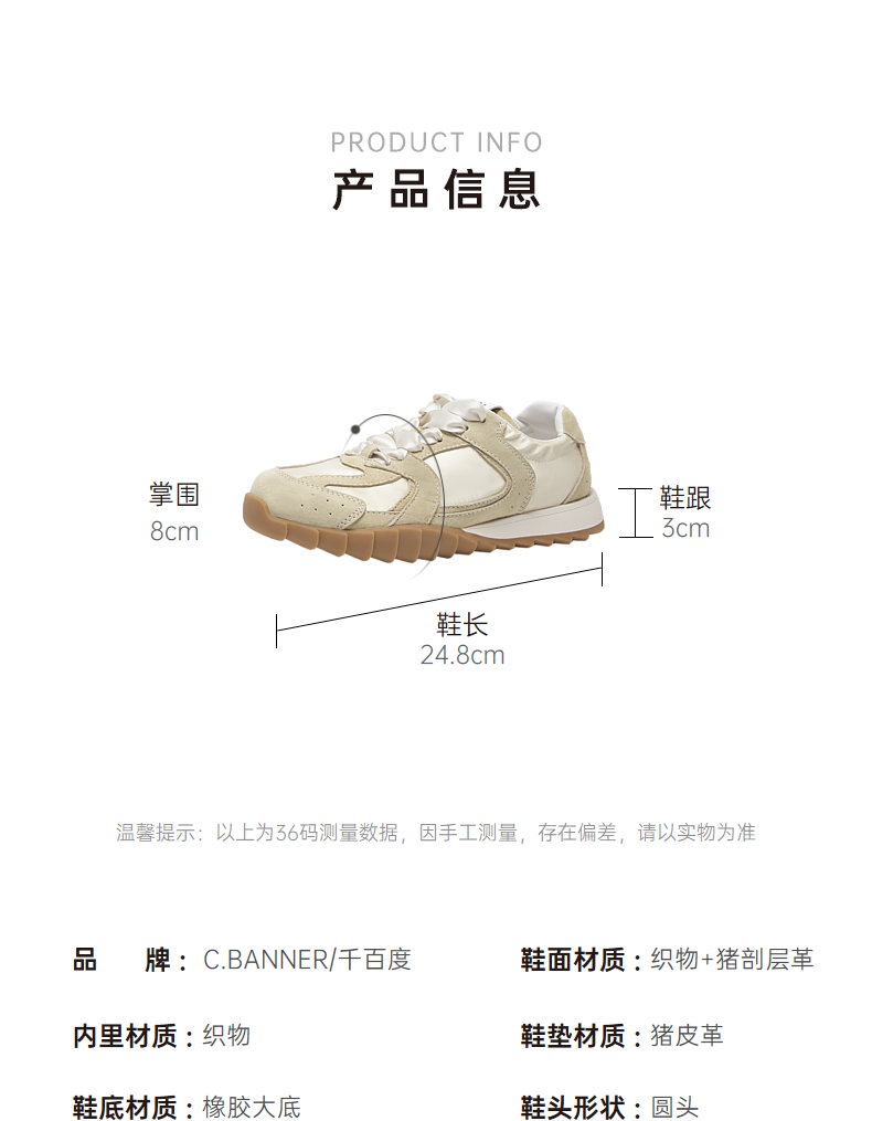 千百度经典厚底时尚休闲鞋女款秋季复古阿甘鞋饼干运动鞋A24415303