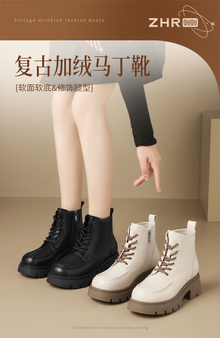 ZHR则则加绒保暖马丁靴2024新款气质百搭甜酷小短靴洋气女靴复古
