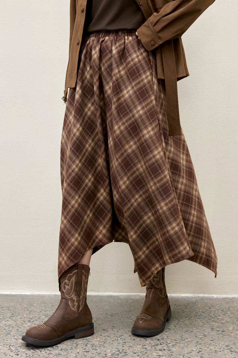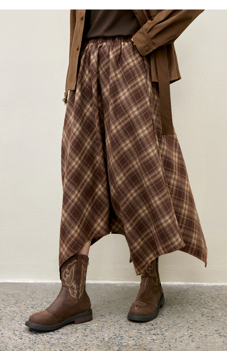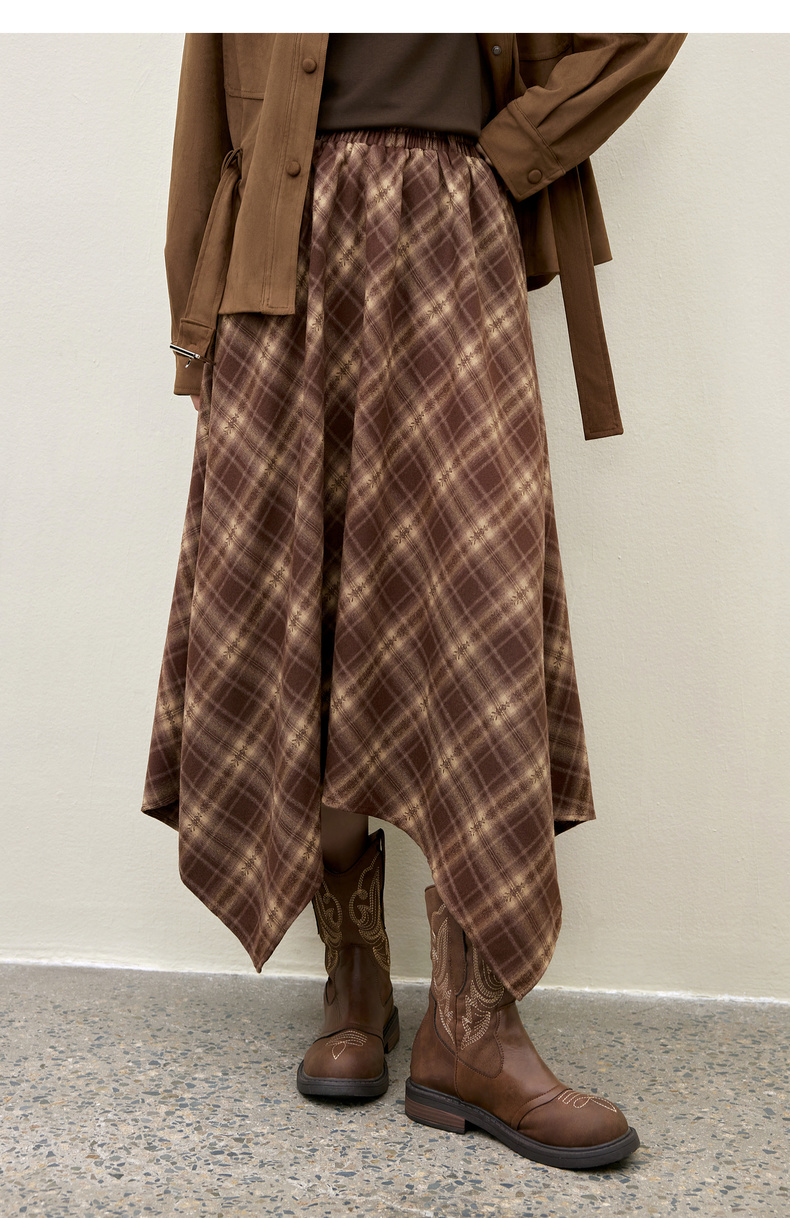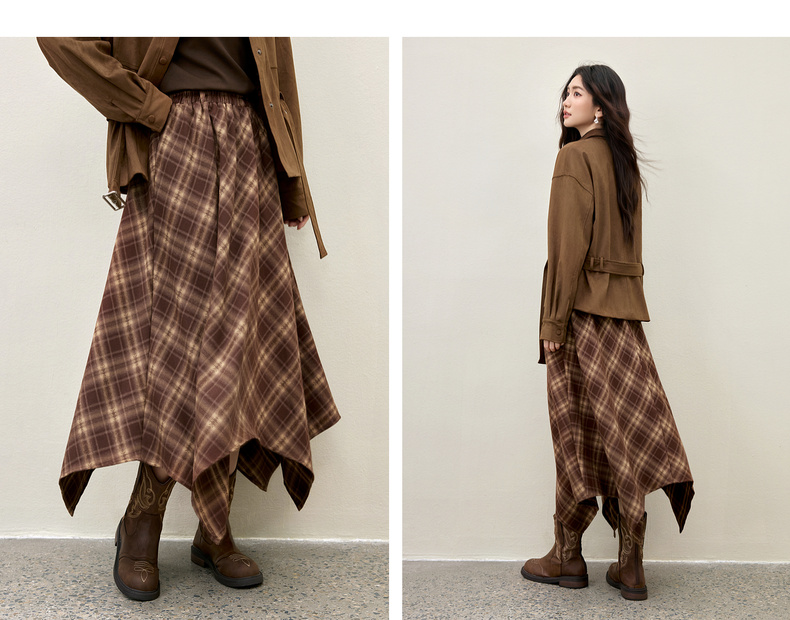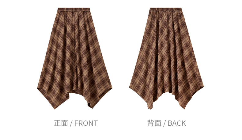【内购】【格纹美学】英伦学院风复古洋气松紧高腰遮肉显瘦不规则A字裙-154QE4887