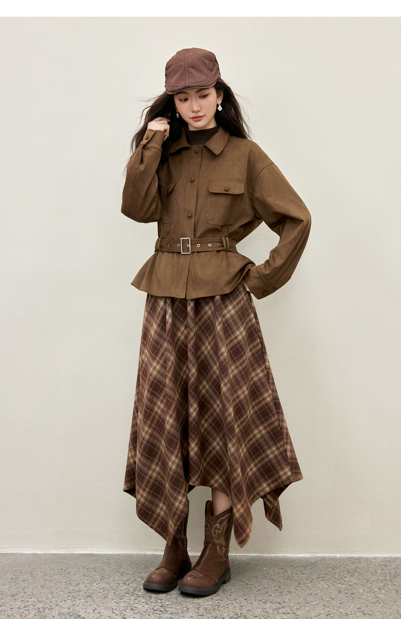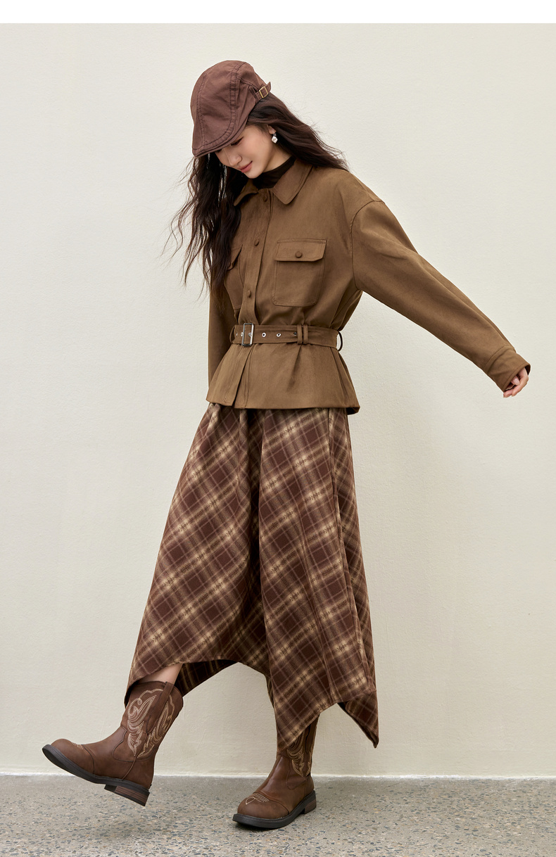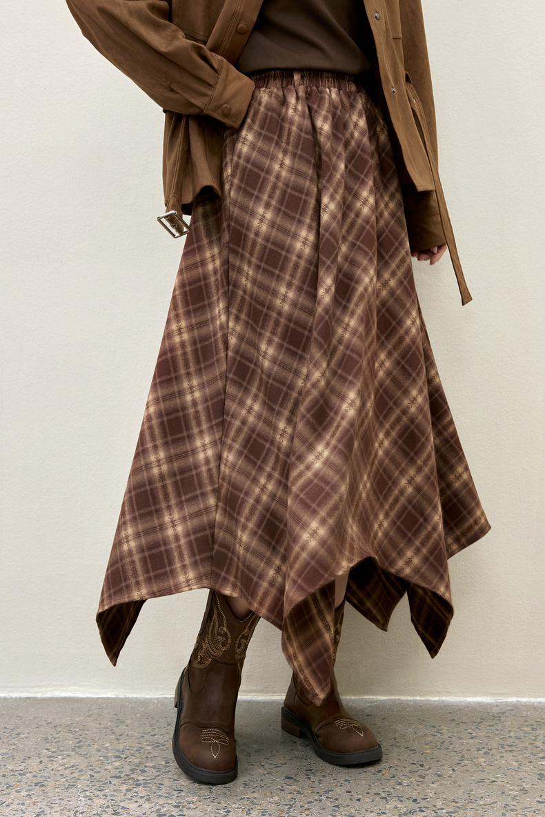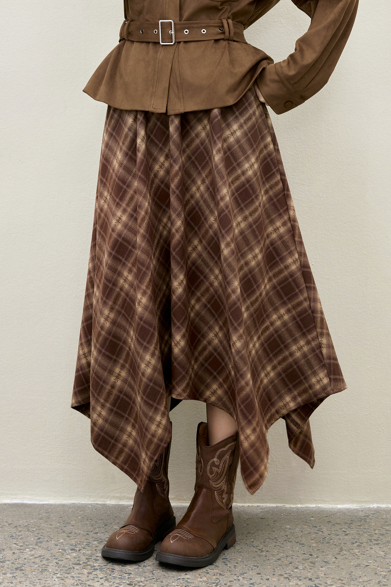 【内购】【格纹美学】英伦学院风复古洋气松紧高腰遮肉显瘦不规则A字裙-154QE4887