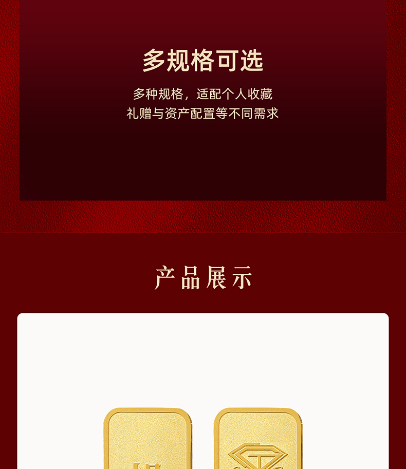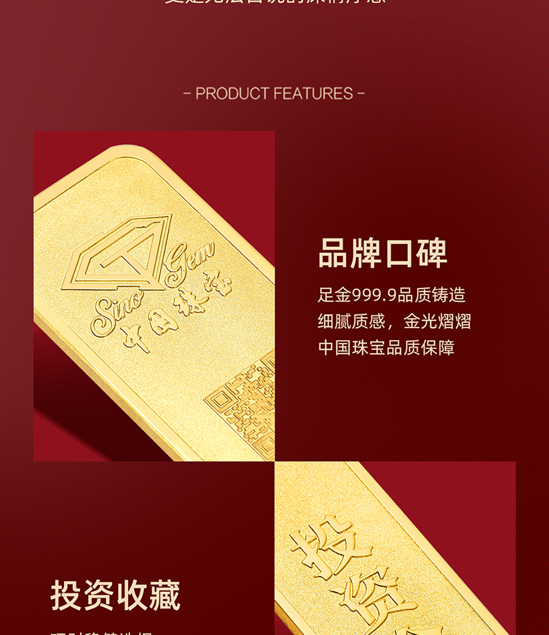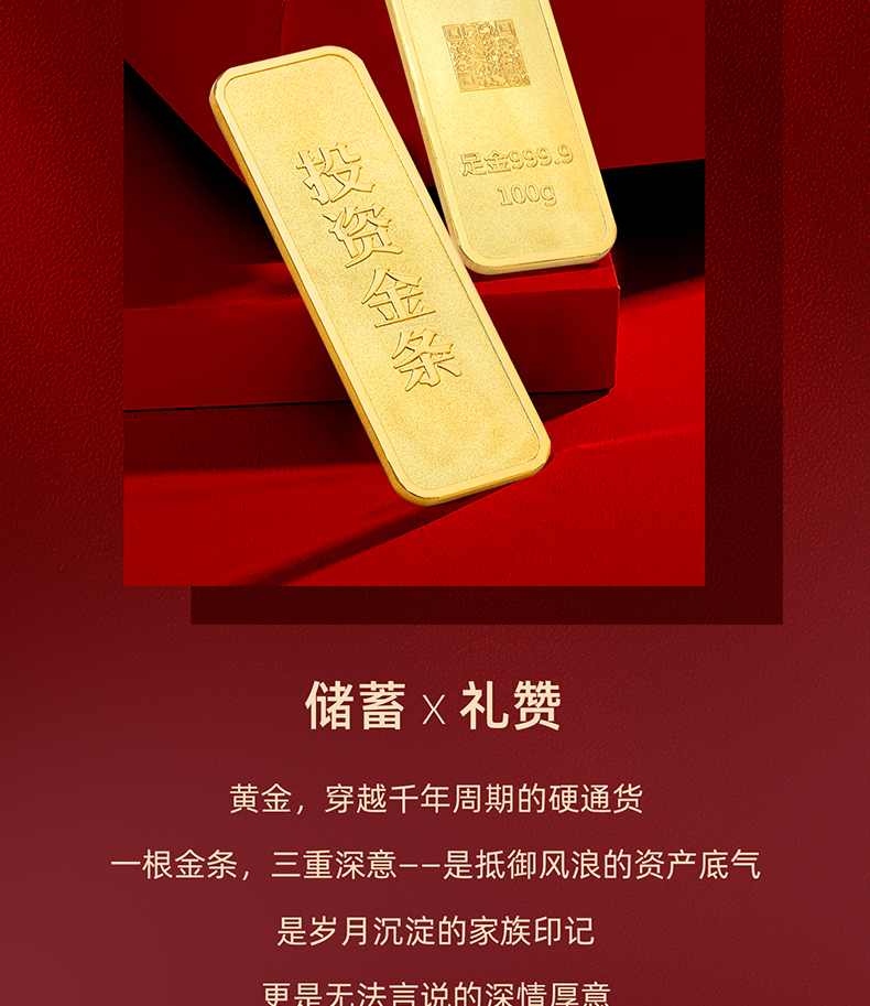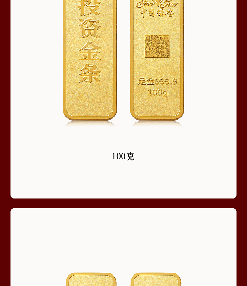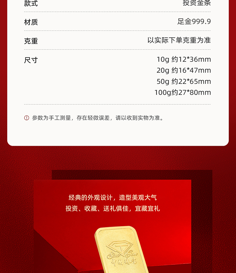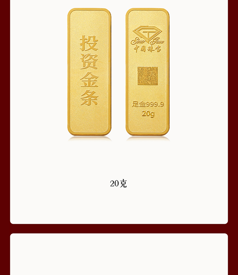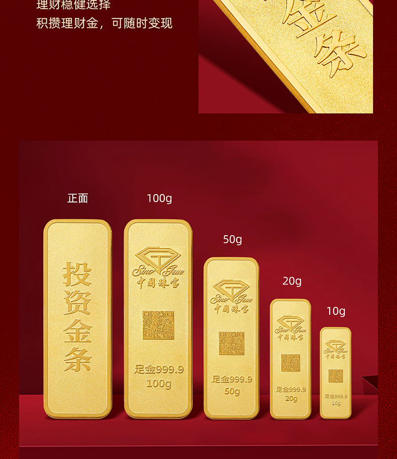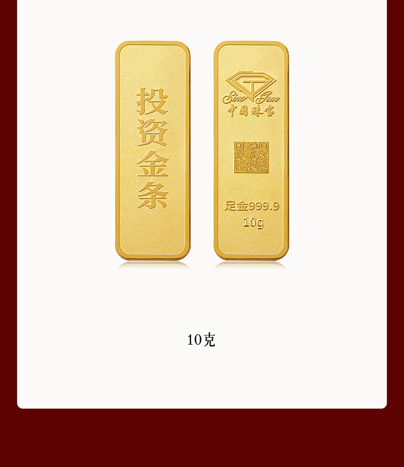 中国珠宝 投资金条10g20g50g100g黄金金条投资收藏送礼