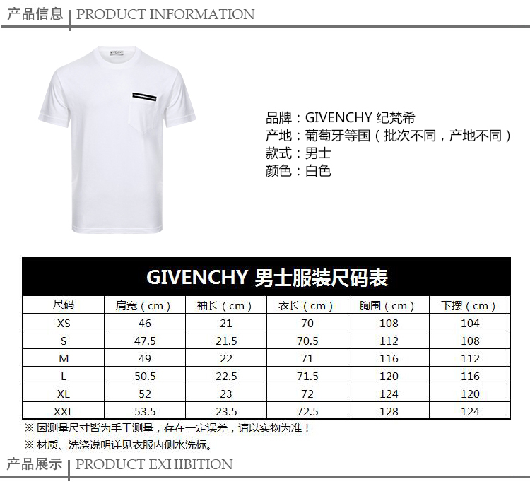 Givenchy/纪梵希 男士短袖T恤 男士棉质圆领短袖T恤 BM70VA3002
