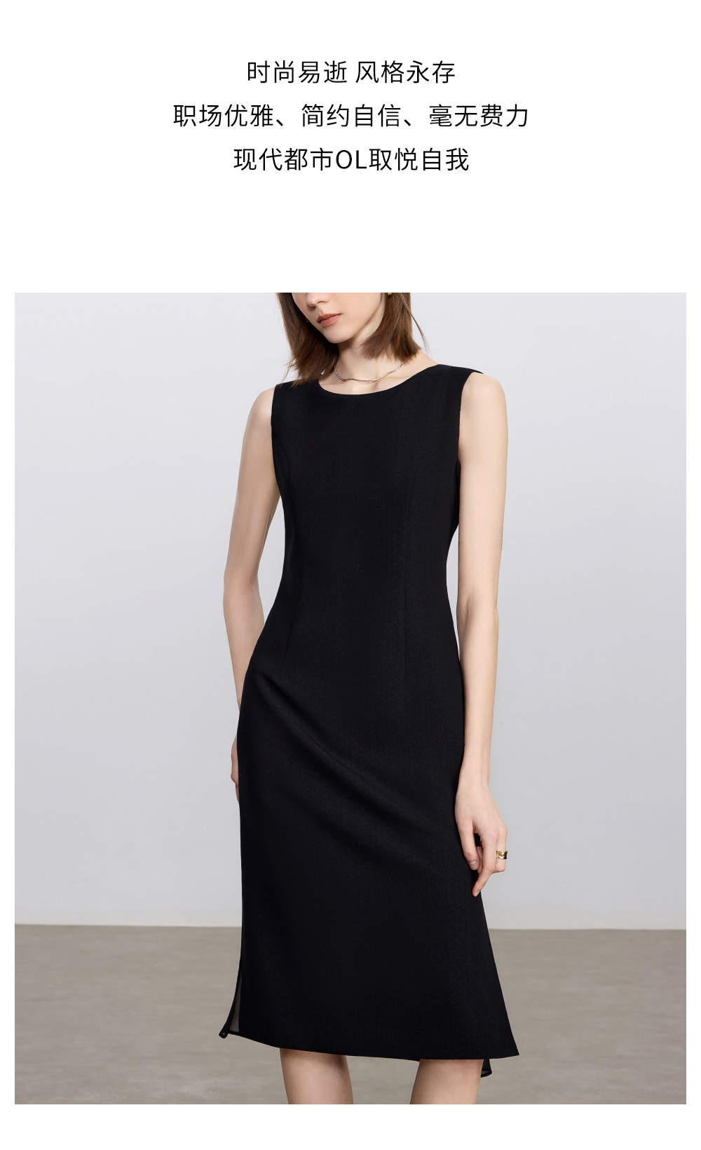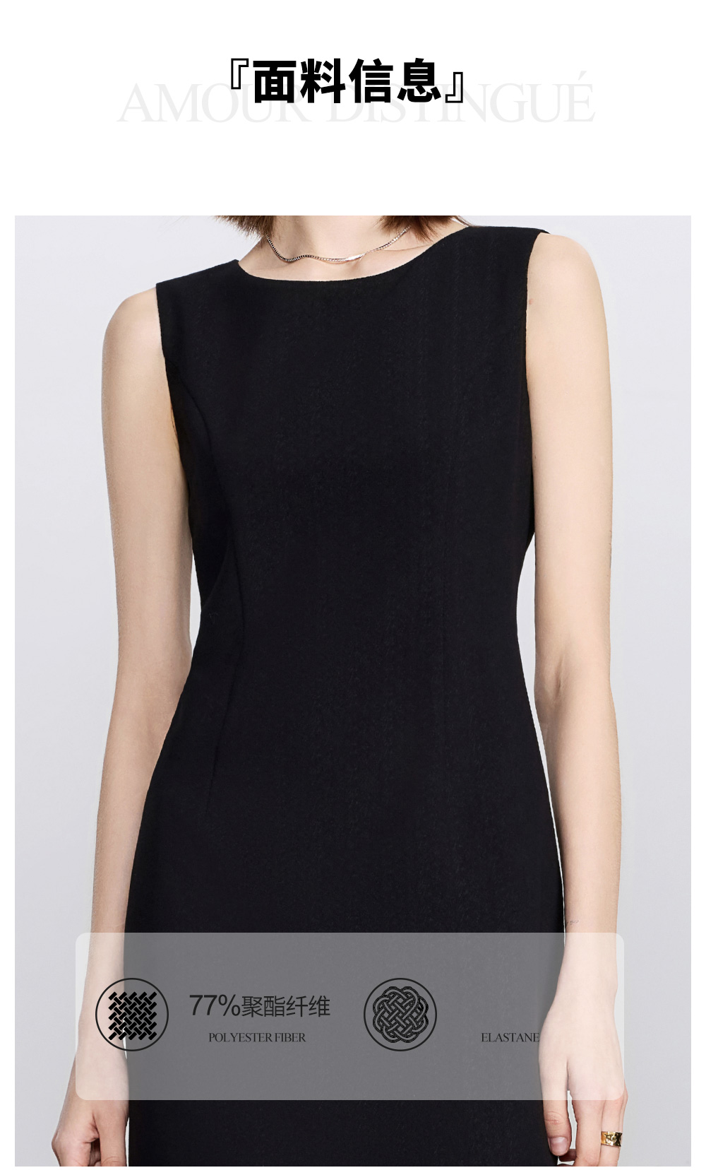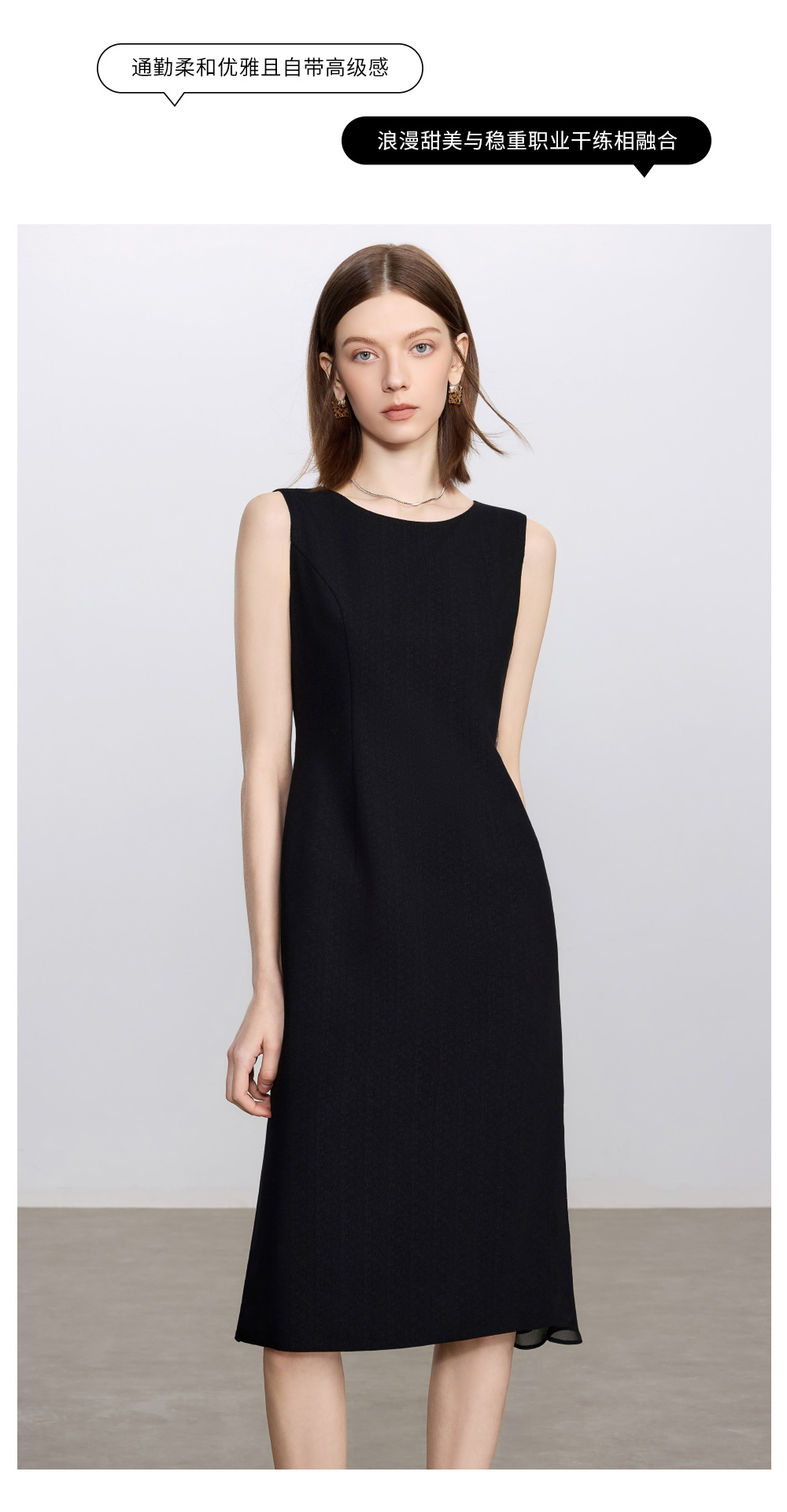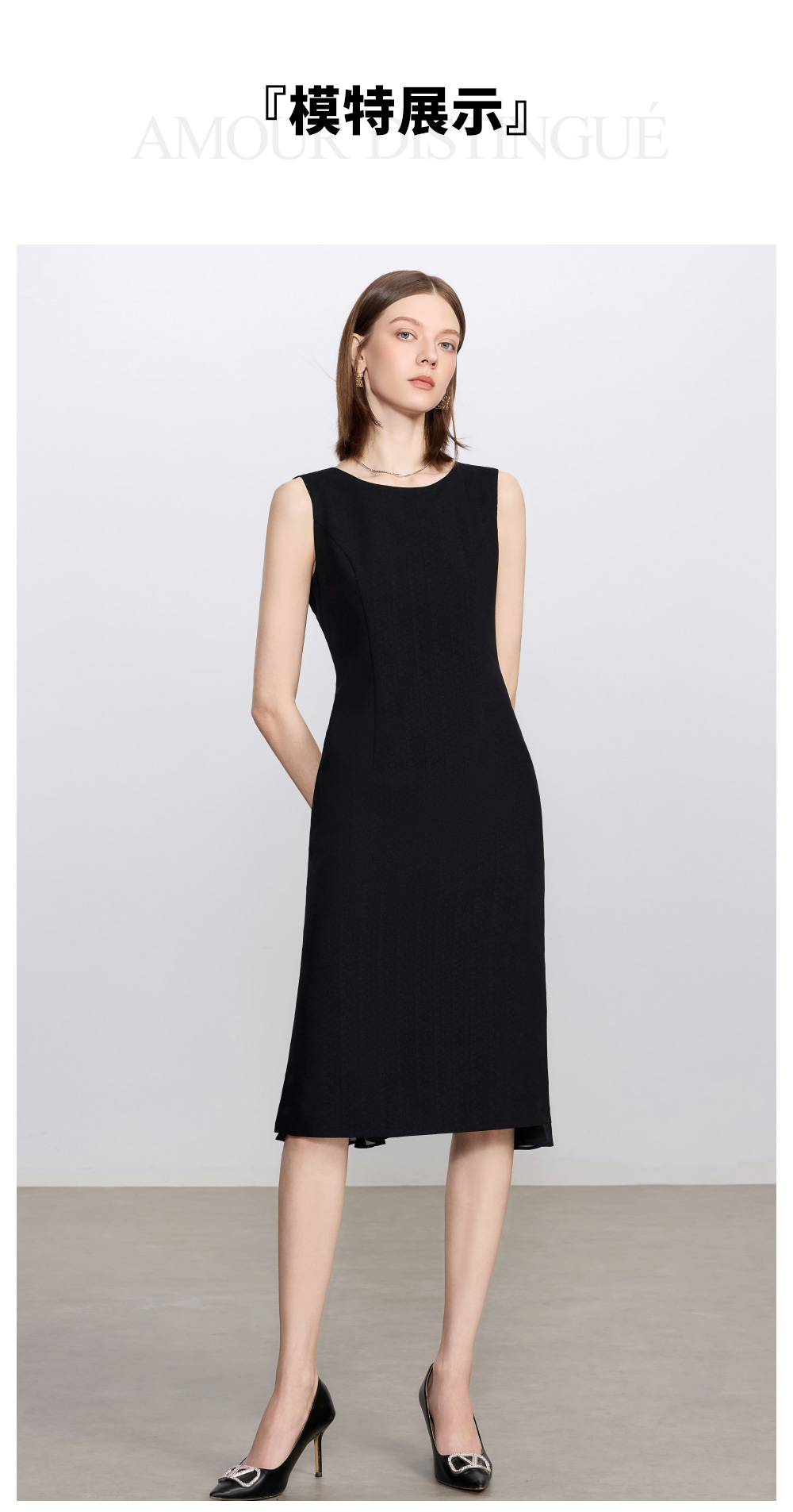 IWY/黑色无袖连衣裙女气质收腰干练职场正装通勤圆领长裙工作服Q1435