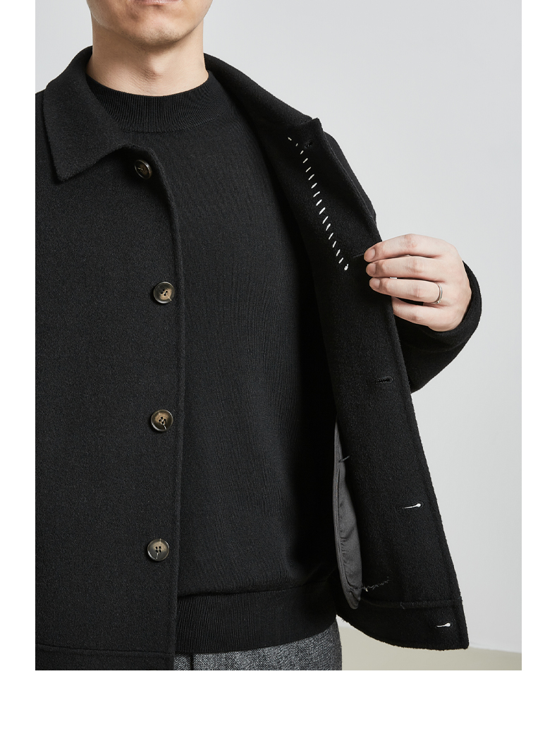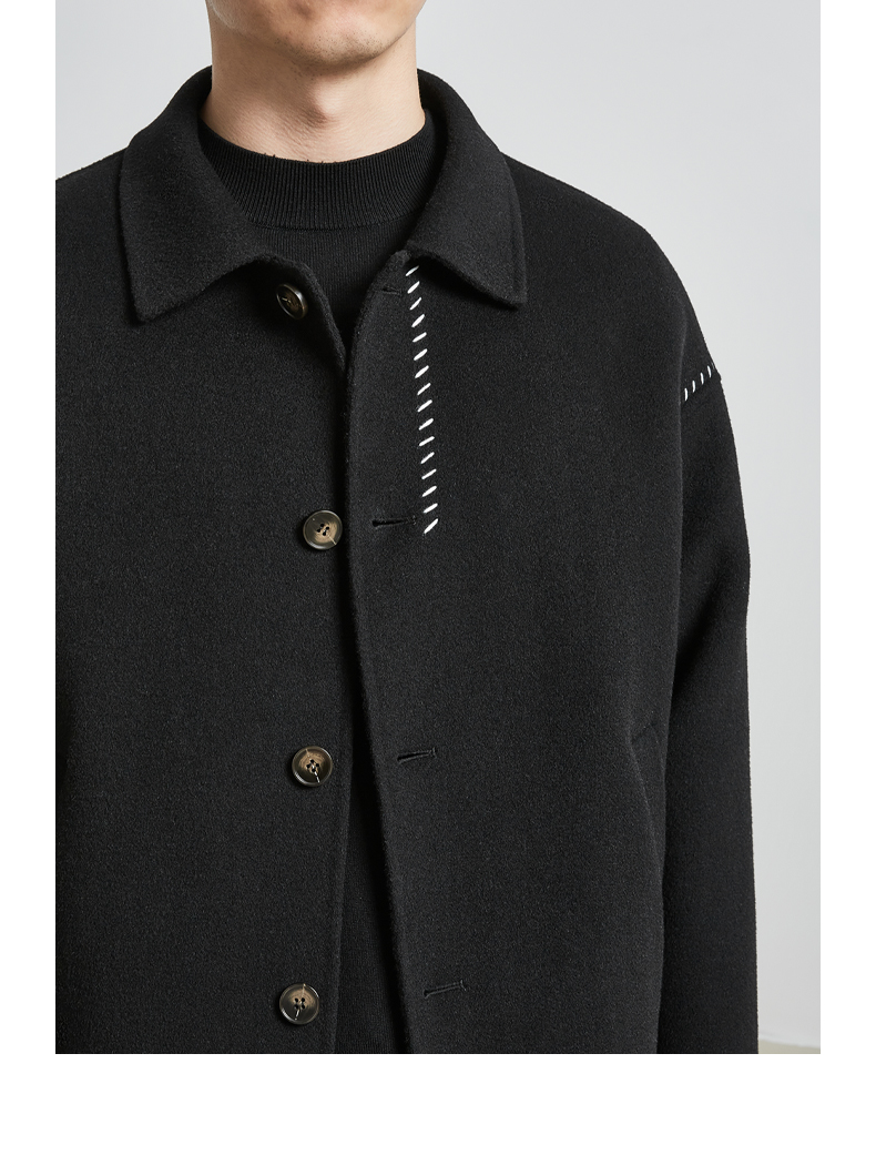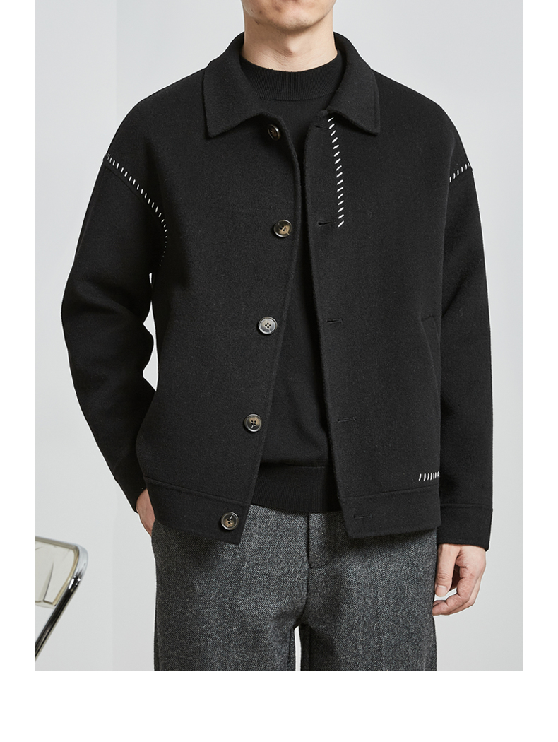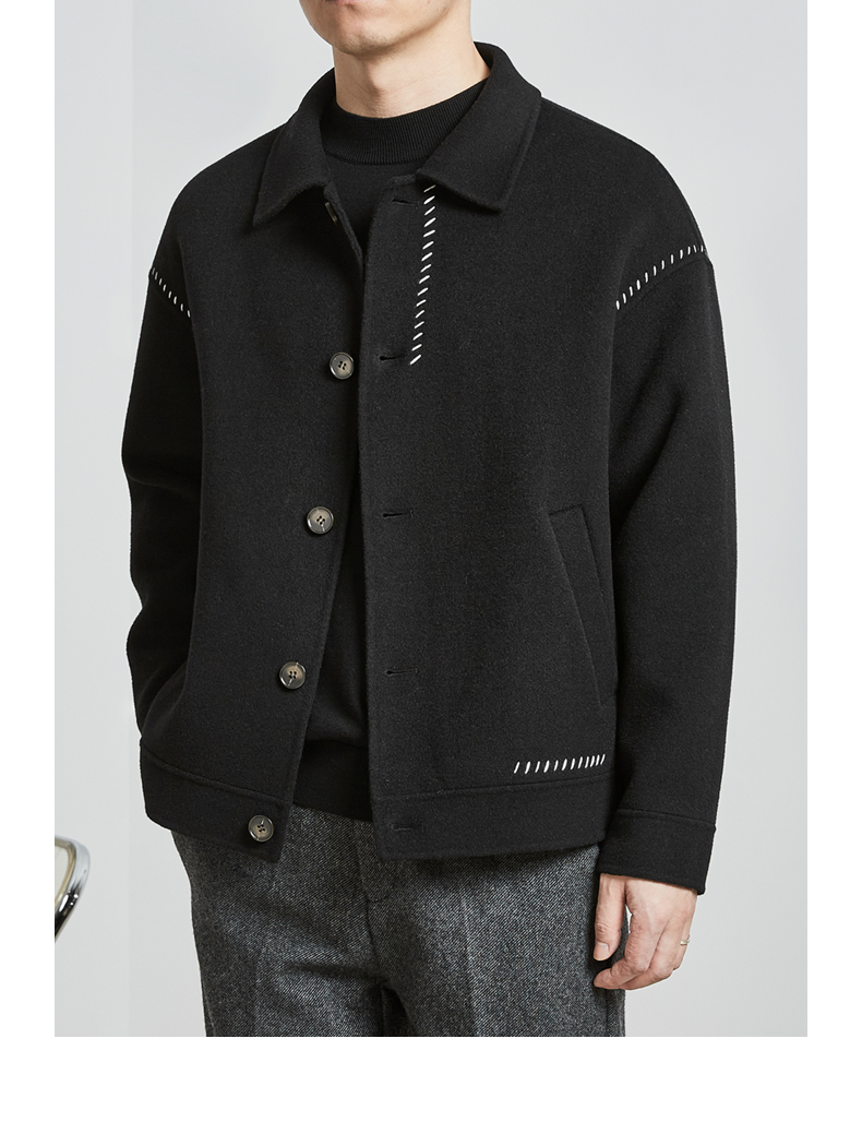 轻奢99%绵羊毛 翻领 手工明线装饰 宽松微阔 男士潮流毛呢夹克80183