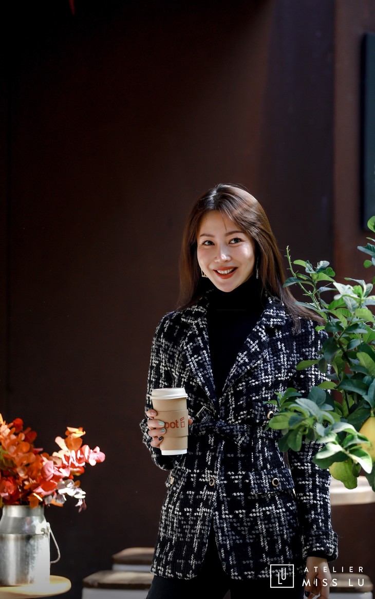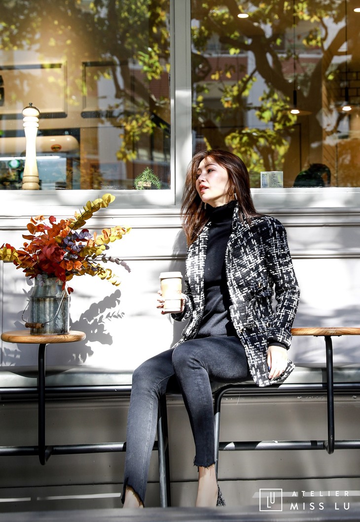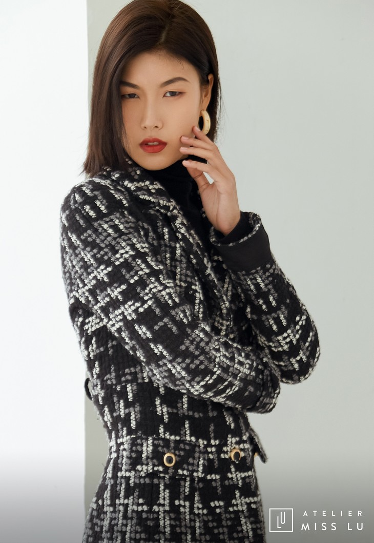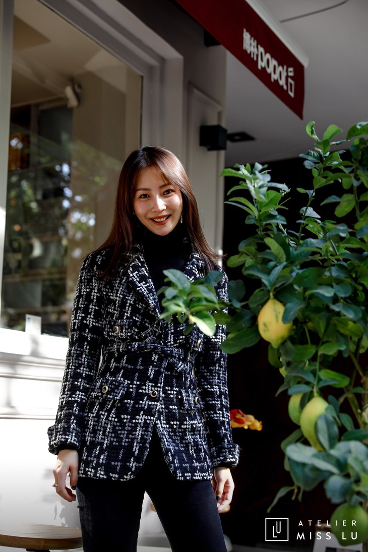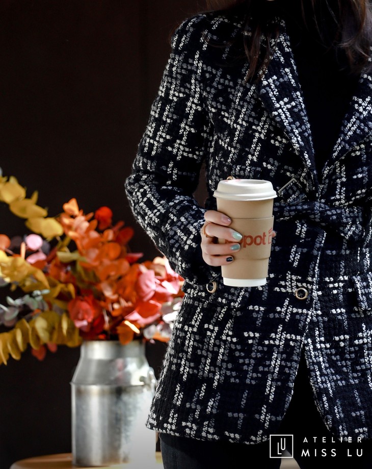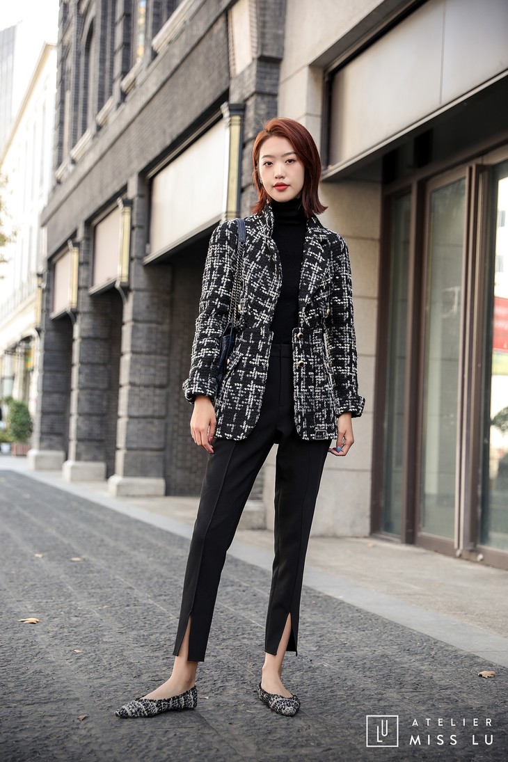 AtelierMissLu / Maisei-黑白粗呢格收腰翻领外套