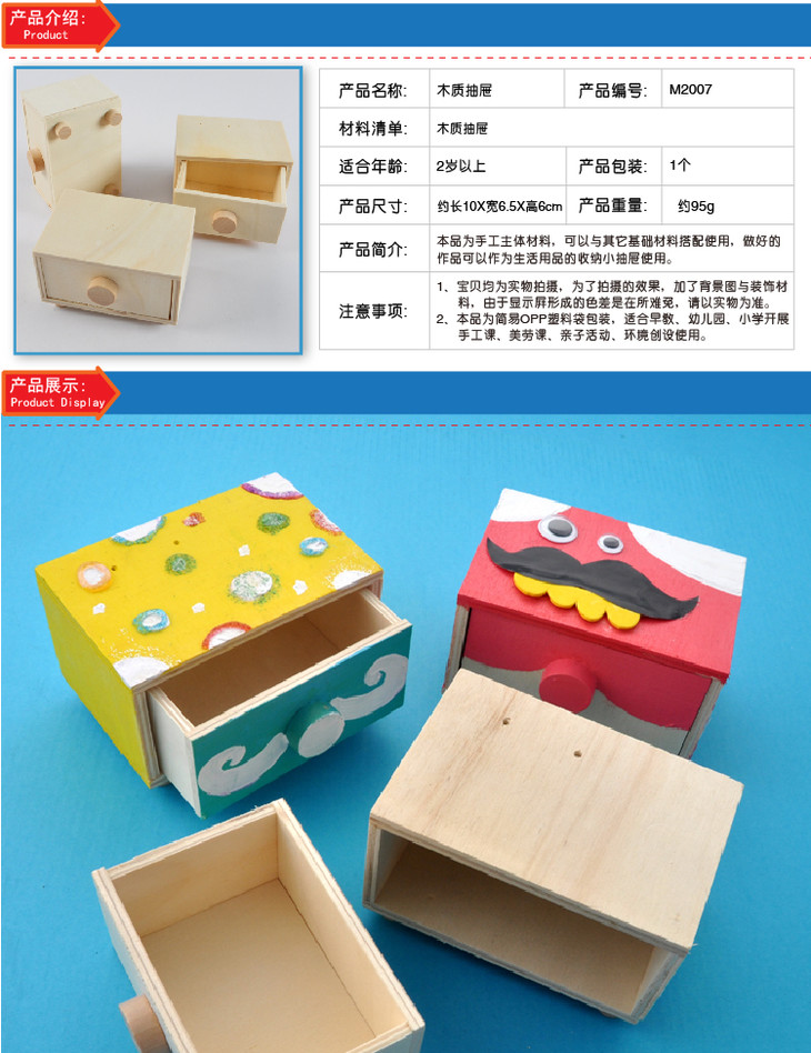幼儿园课堂手工DIY白胚木质抽屉材料包