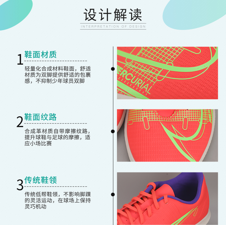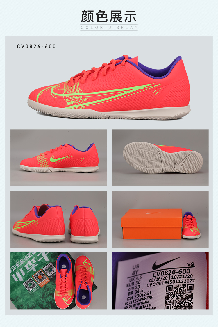 小李子:专柜正品NIKE/耐克刺客14低帮 IC 青少年足球鞋CV0826-600